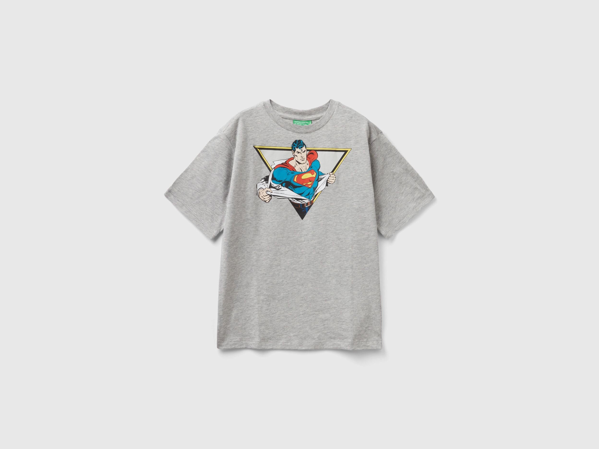 Short sleeve t-shirt in pure cotton with a loose fit. Superman ©&» DC Comics front print. Superman logo print and embroidered Benetton logo under back neckline. For superhero lovers.