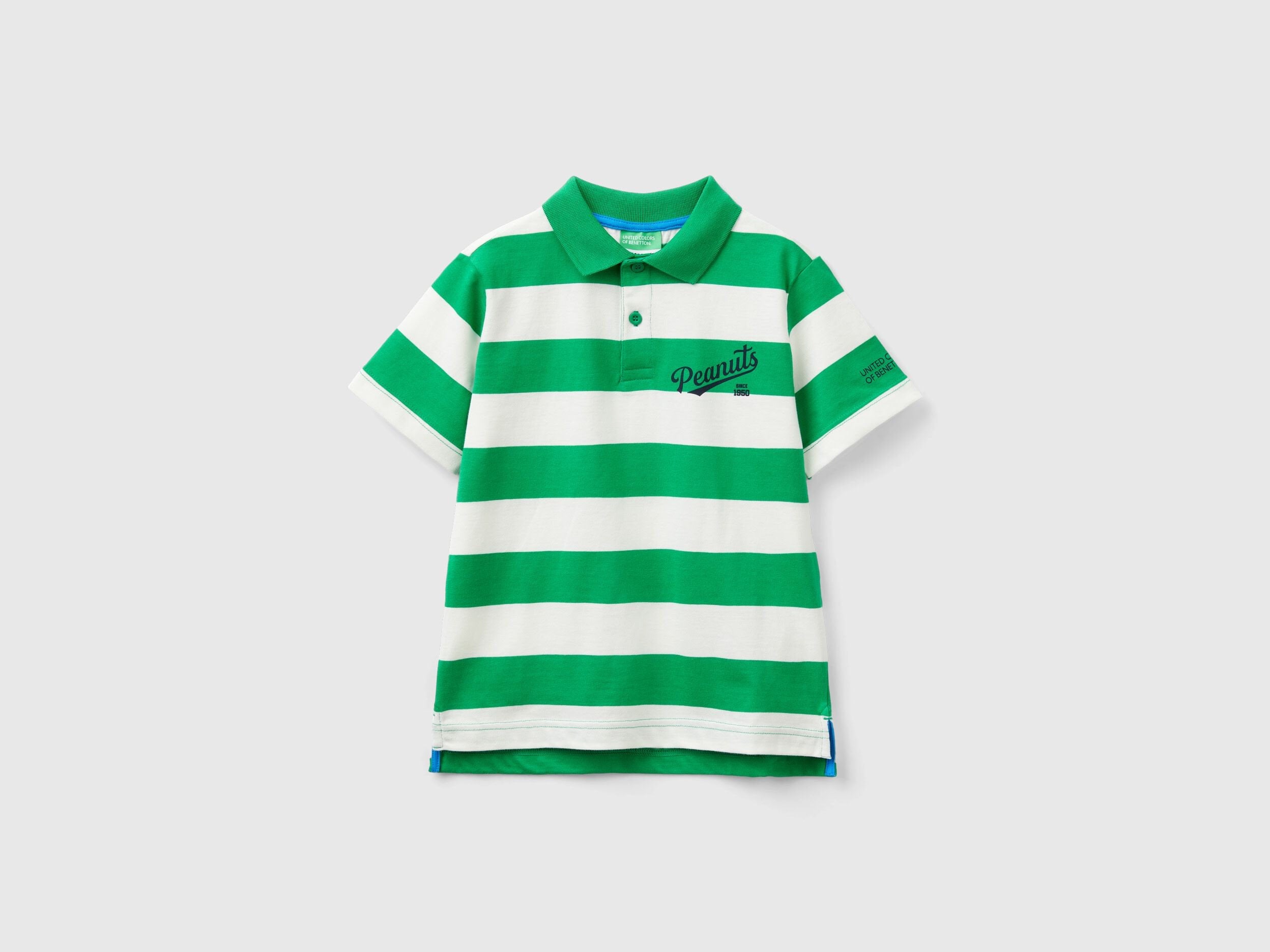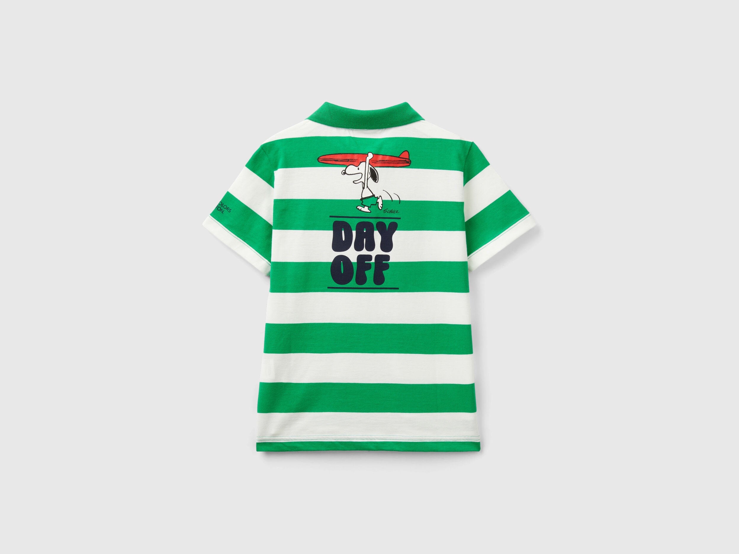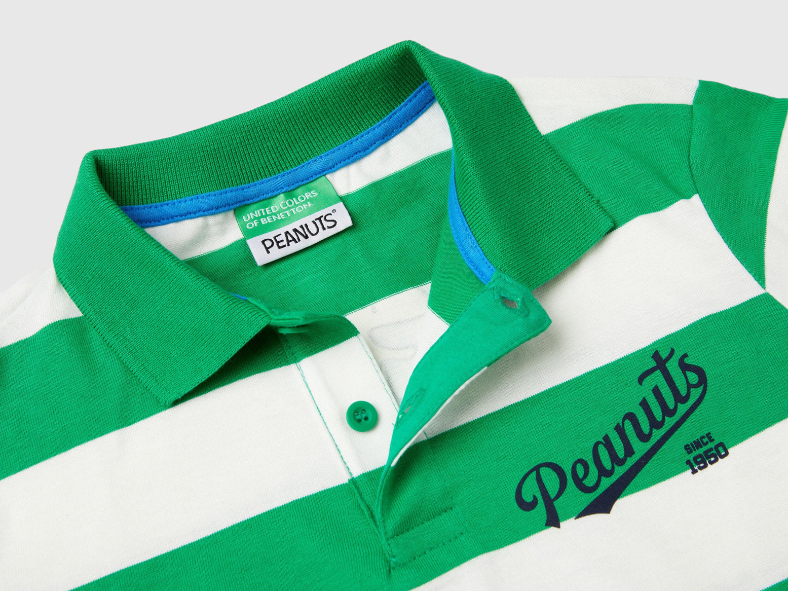Short sleeve polo in pure cotton with yarn dyed stripes. Shirt collar, partial button opening on the front and side slits. Regular fit and ©Peanuts Snoopy print. For fun and comfortable looks.