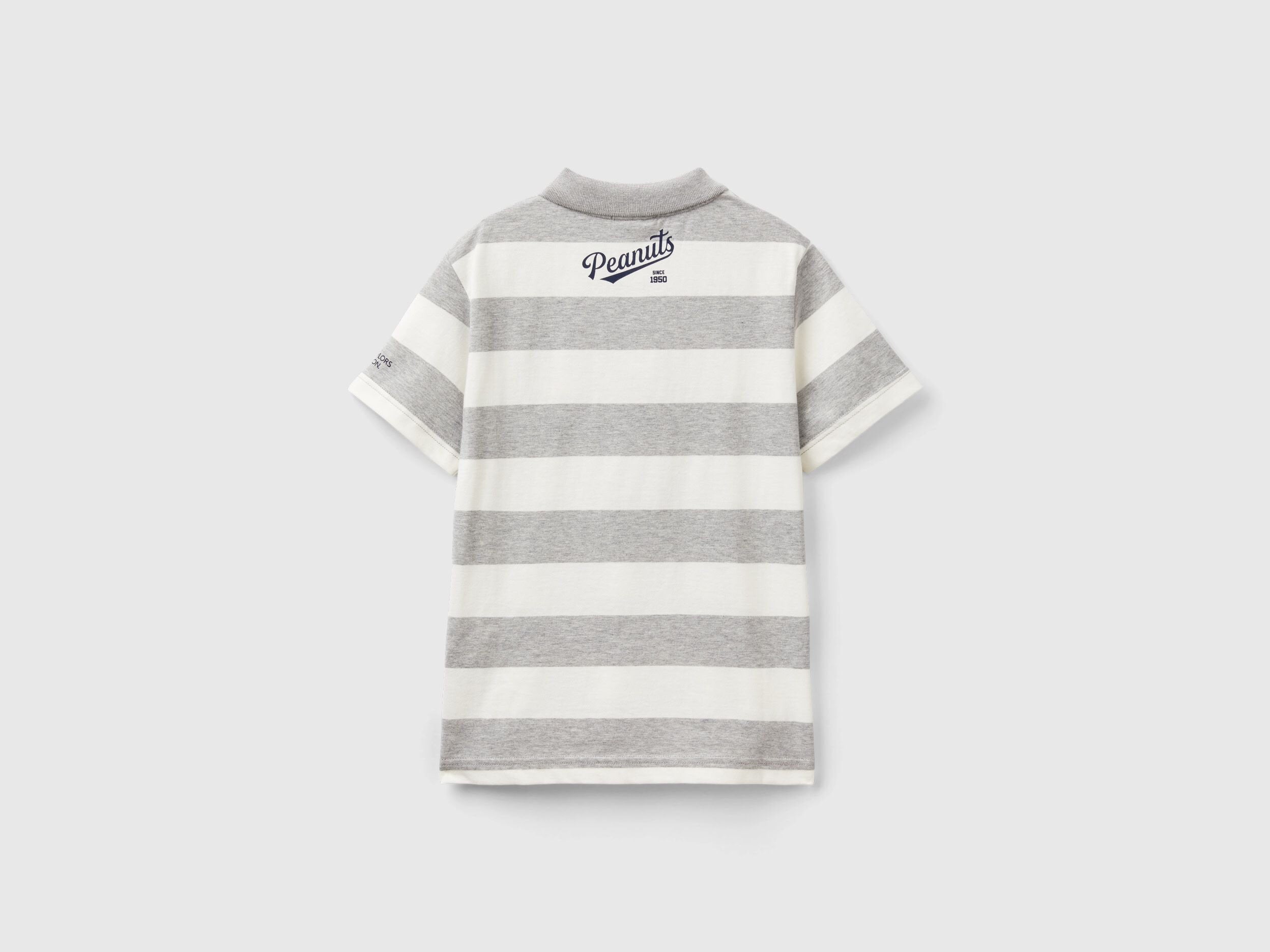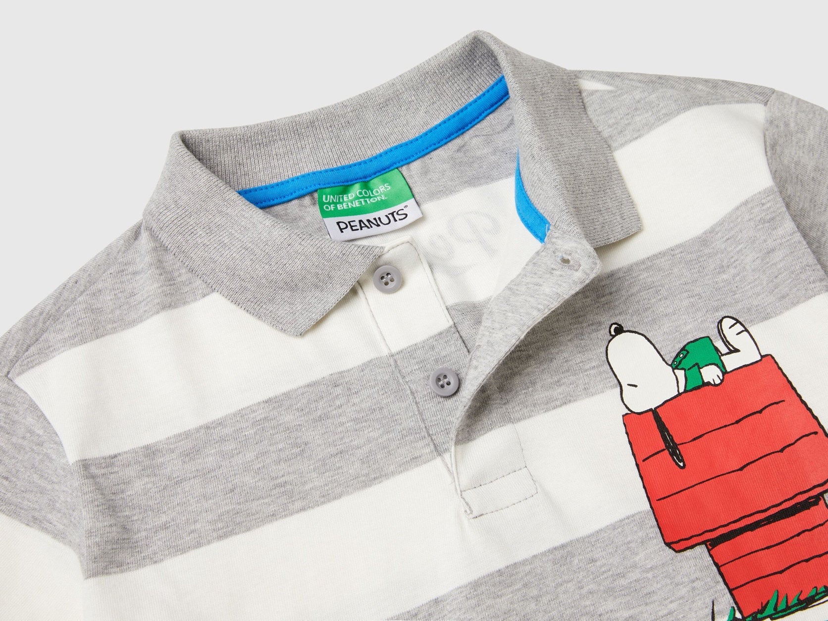 Short sleeve polo in pure cotton with yarn dyed stripes. Shirt collar, partial button opening on the front and side slits. Regular fit and ©Peanuts Snoopy print. For fun and comfortable looks.