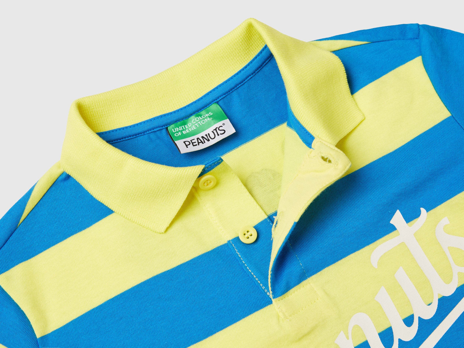 Short sleeve polo in pure cotton with yarn dyed stripes. Shirt collar, partial button opening on the front and side slits. Regular fit and ©Peanuts Snoopy print. For fun and comfortable looks.