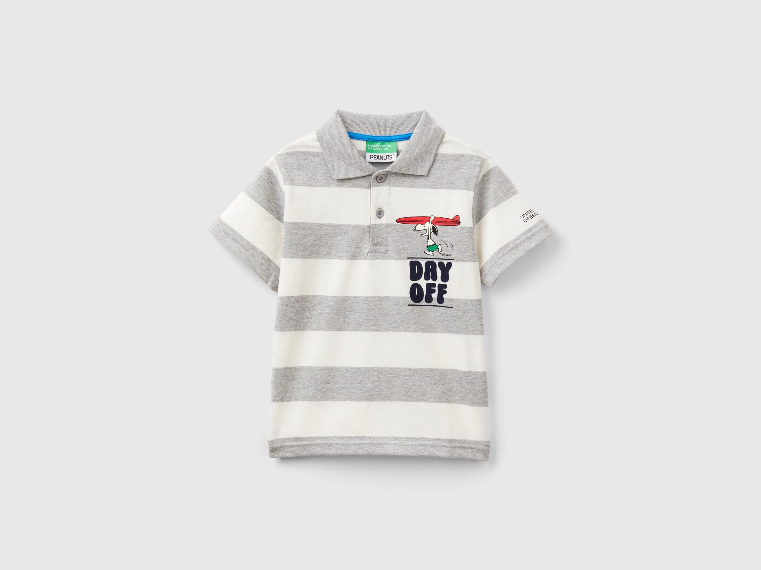Short sleeve polo in pure cotton with yarn dyed stripes. Shirt collar, partial button opening on the front and side slits. Regular fit and print with ©Peanuts characters. For fun and comfortable looks.