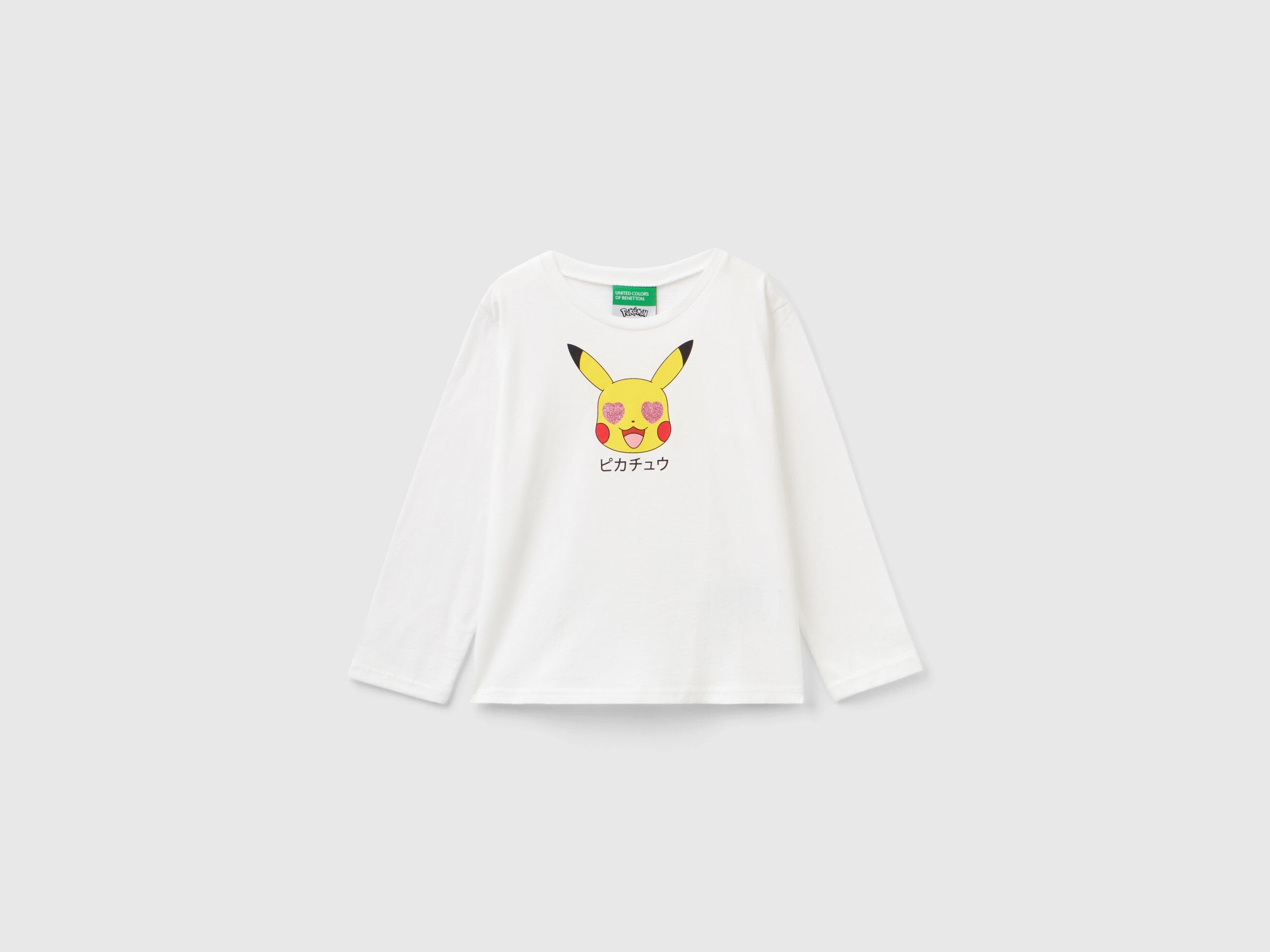 Long sleeve crew neck t-shirt in warm pure cotton. Relaxed fit, regular length and Pikachu print with slogan and glittery details. Fun and sparkling, for Pokémon fans.