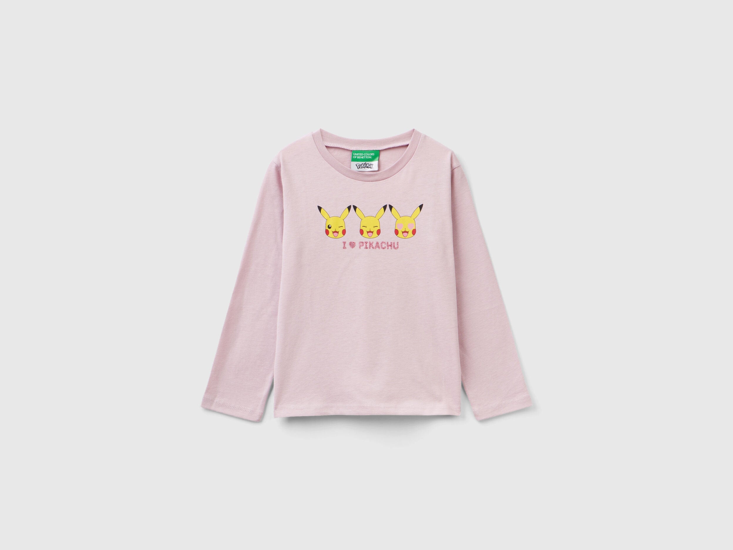 Long sleeve crew neck t-shirt in warm pure cotton. Relaxed fit, regular length and Pikachu print with slogan and glittery details. Fun and sparkling, for Pokémon fans.
