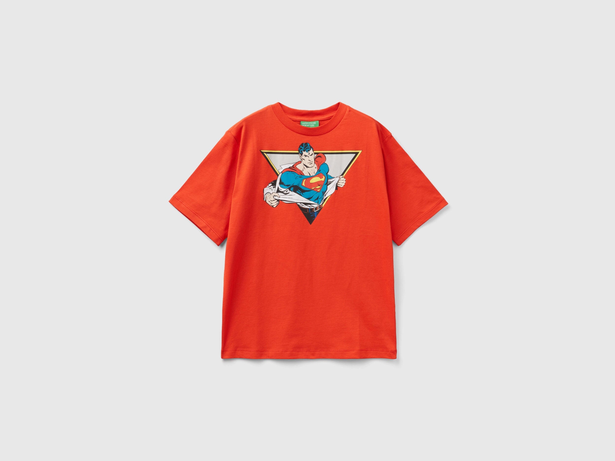 Short sleeve t-shirt in pure cotton with a loose fit. Superman ©&» DC Comics front print. Superman logo print and embroidered Benetton logo under back neckline. For superhero lovers.