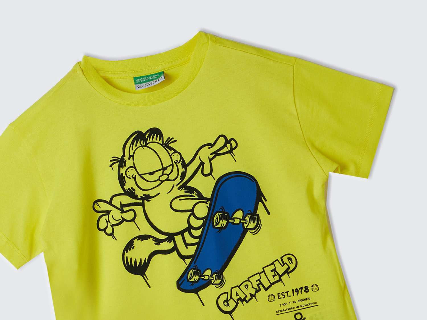 Short sleeve crew neck t-shirt in pure cotton. Loose fit and print ©2024 by Paws, Inc. Garfield on the front. For a look inspired by the '70s comics.