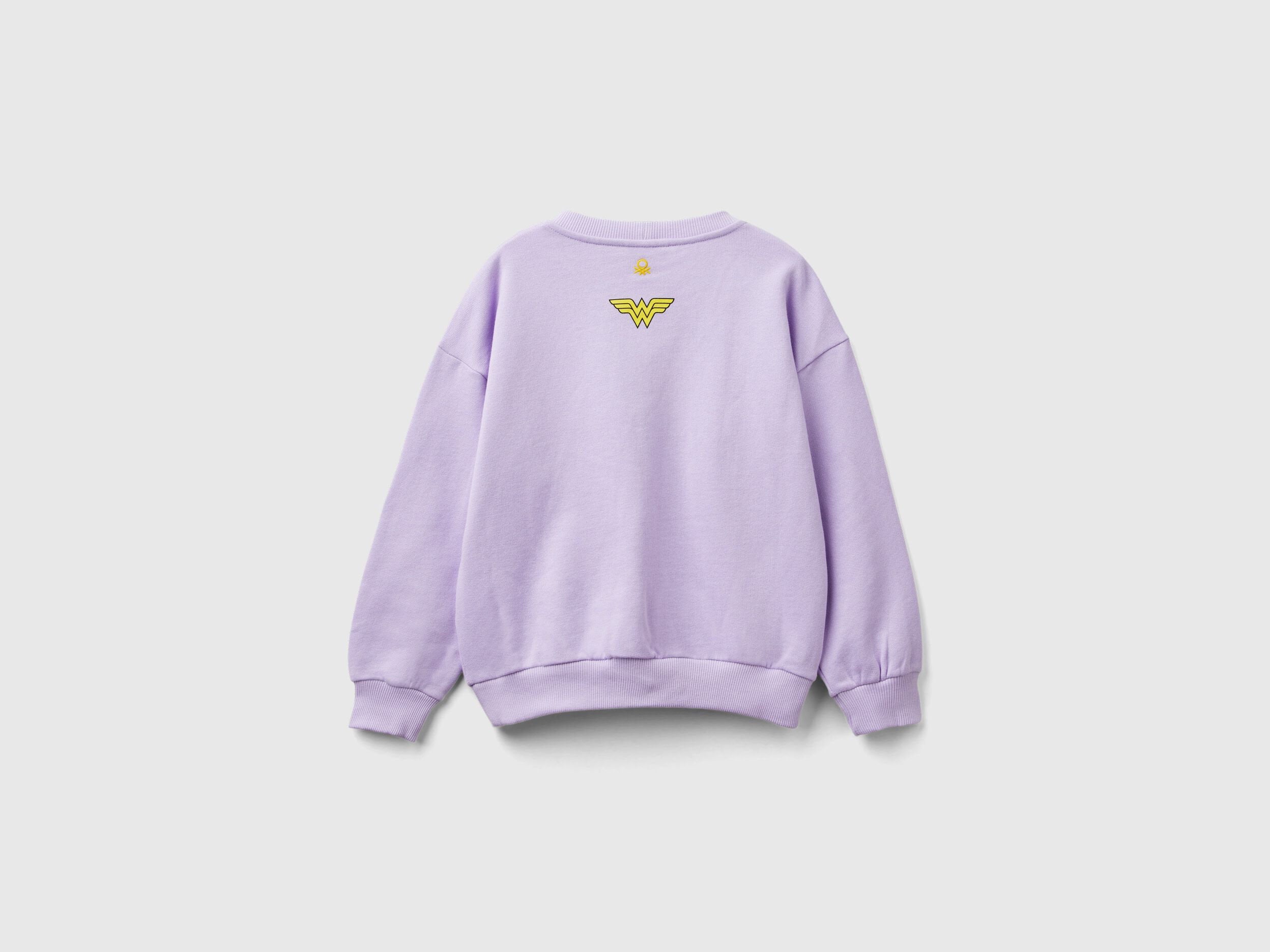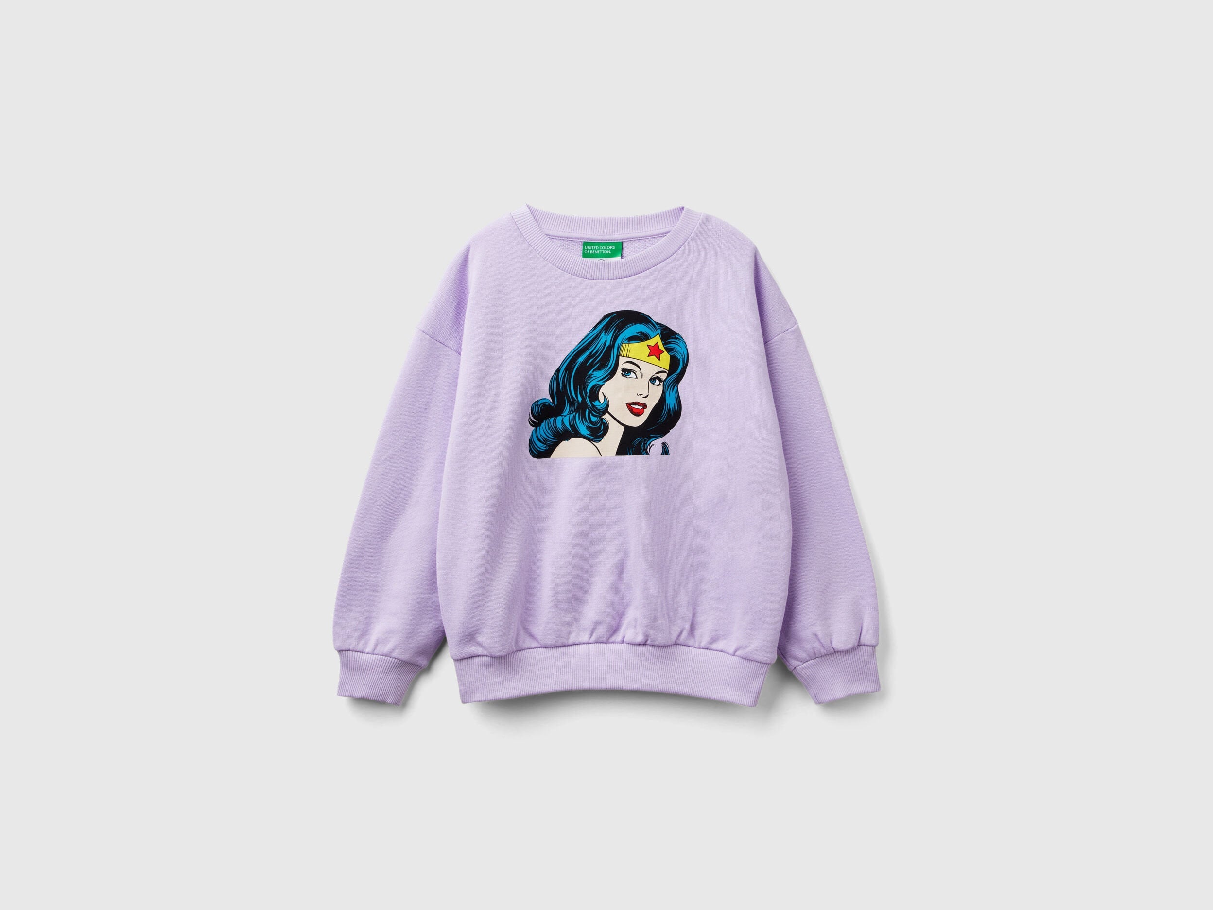 Pullover sweatshirt in pure cotton with light yet consistent feel. Relaxed fit, long sleeves and dropped shoulder. Multicolor Wonder Woman ©&» DC Comics print on front. Wonder Woman logo print and embroidered Benetton logo under back neckline. Perfect for big little heroines.