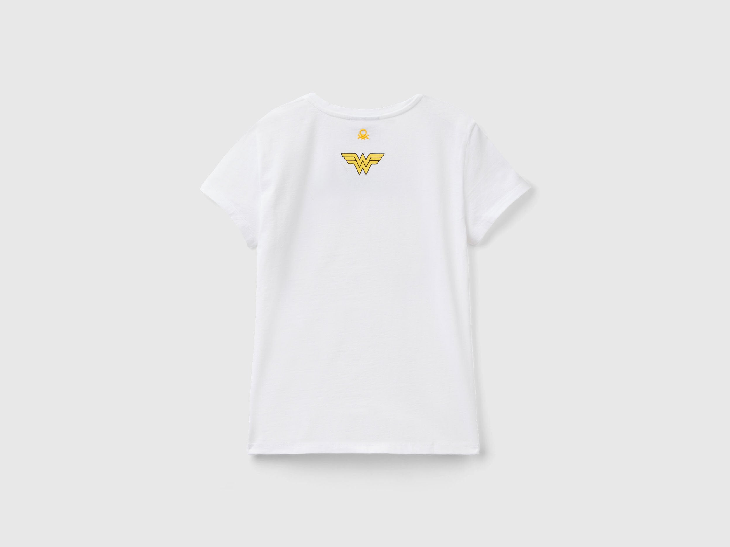 Short sleeve t-shirt in pure cotton with a regular fit. Multicolor Wonder Woman ©&» DC Comics print on front. Wonder Woman logo print and embroidered Benetton logo under back neckline. Perfect for big little heroines.