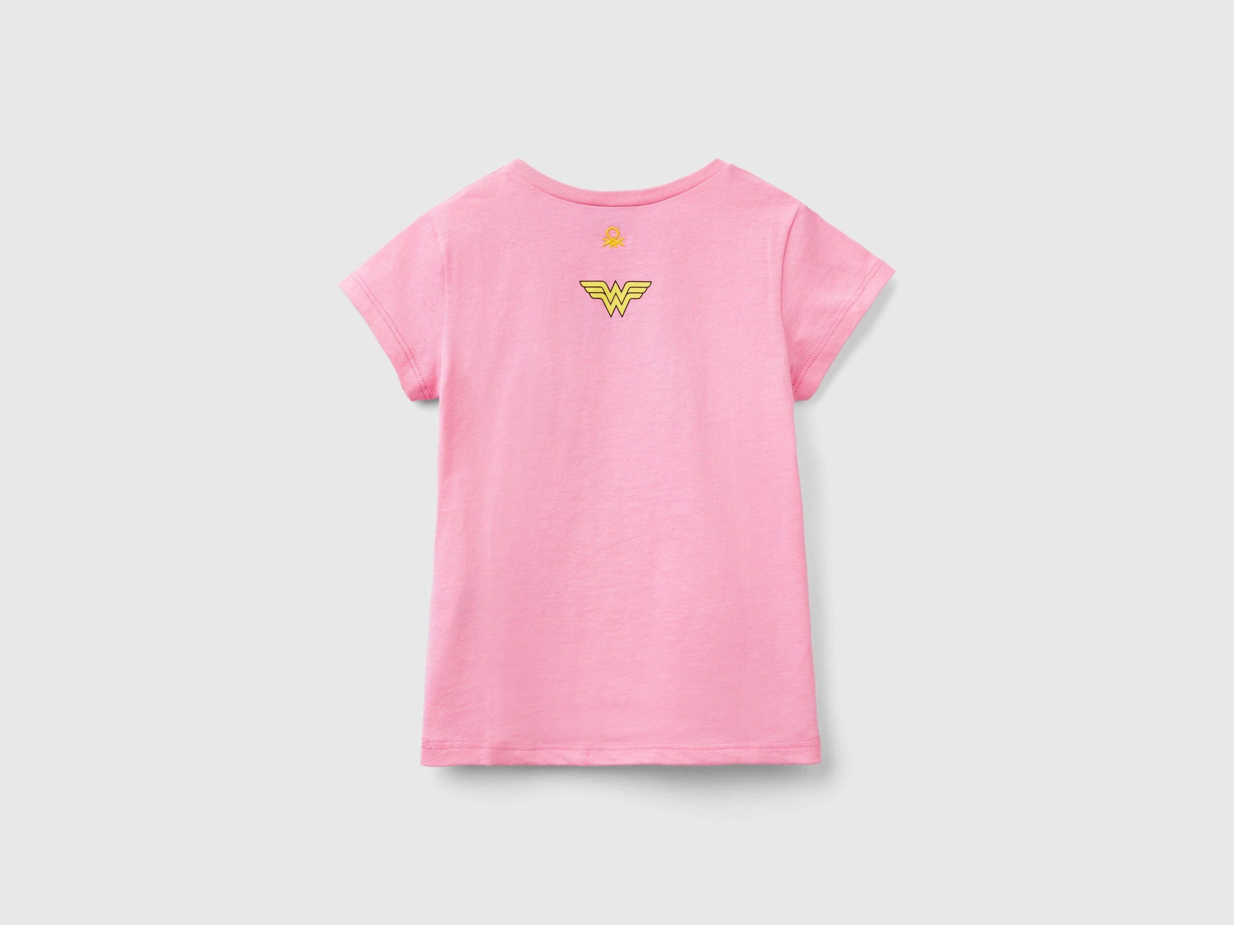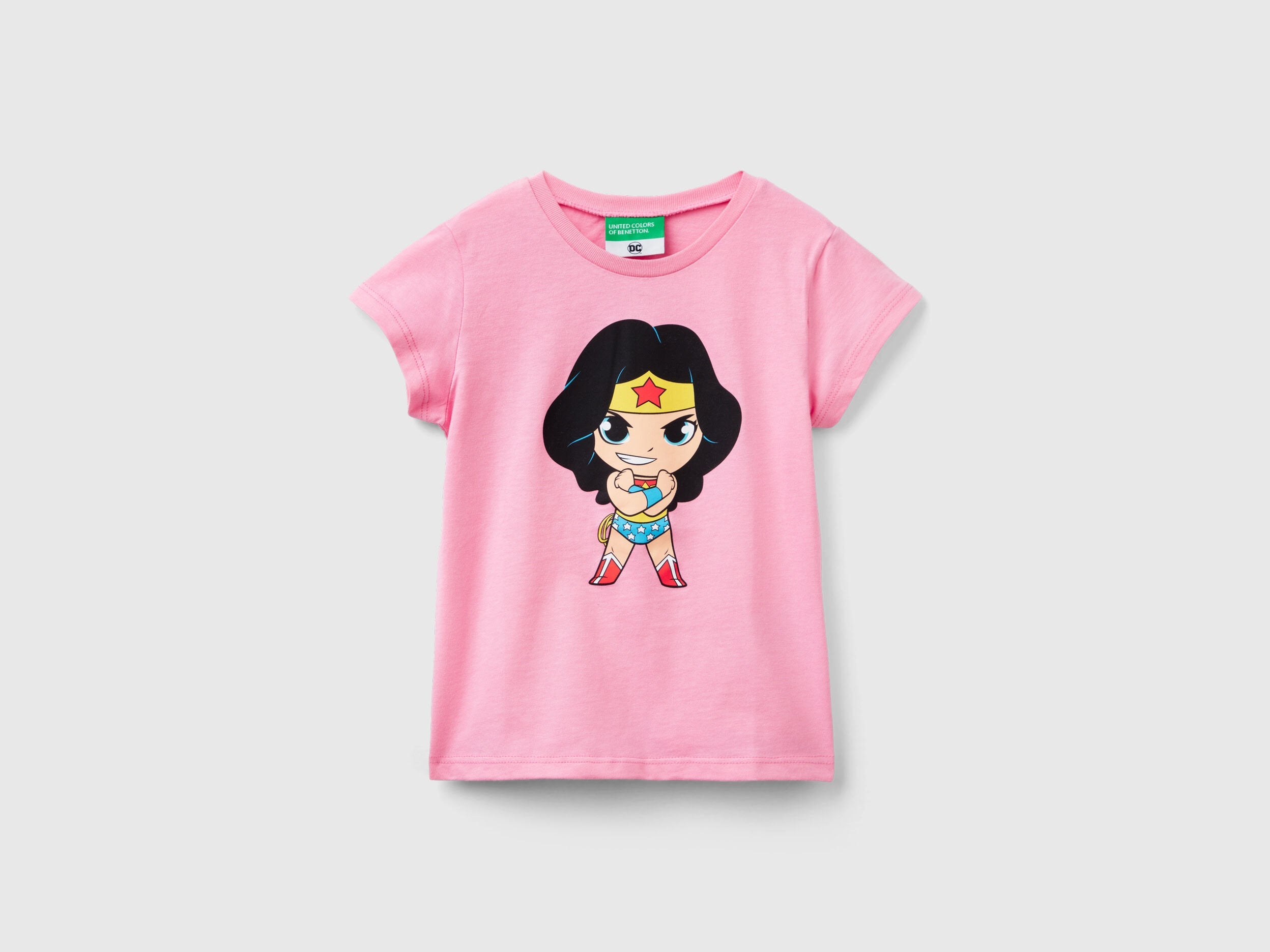 Regular fit short sleeve t-shirt in pure cotton. Multicolor Wonder Woman ©&» DC Comics print on front. Wonder Woman logo print and embroidered Benetton logo under back neckline. Perfect for big little heroines.