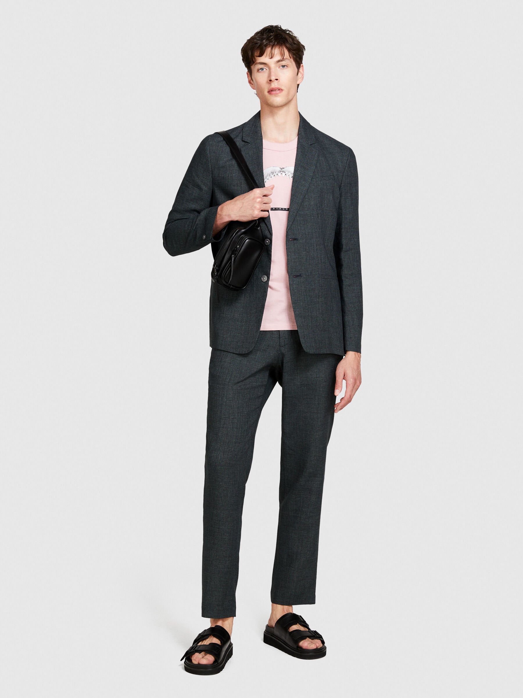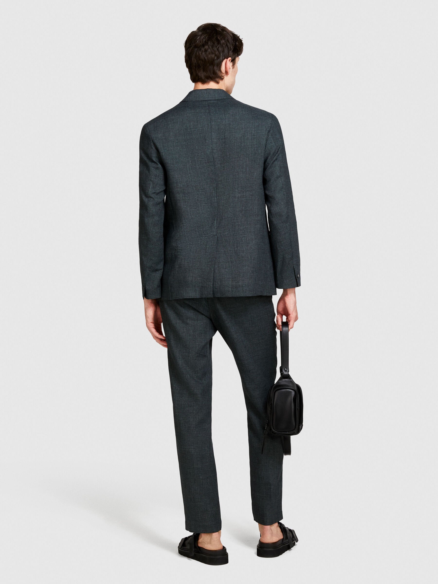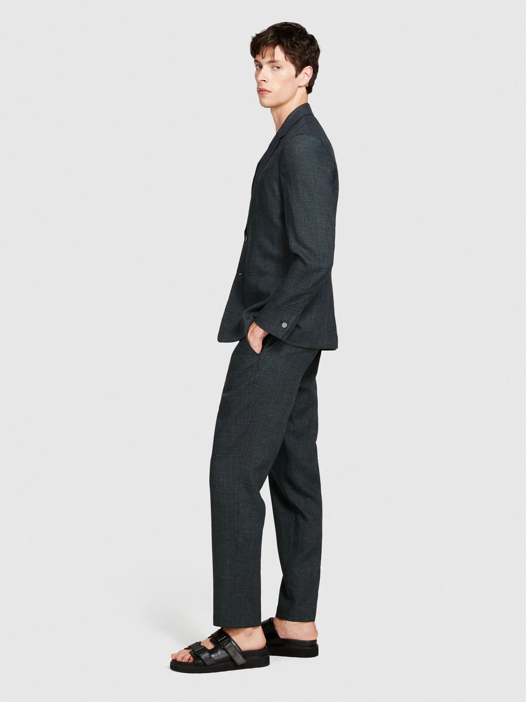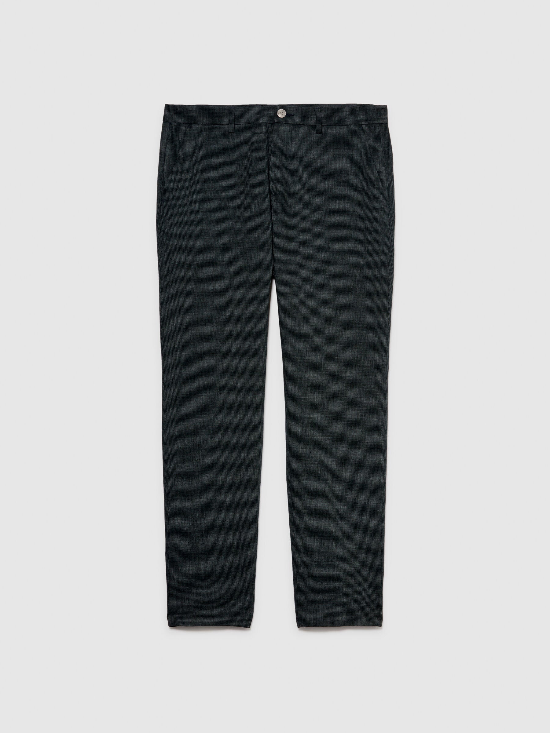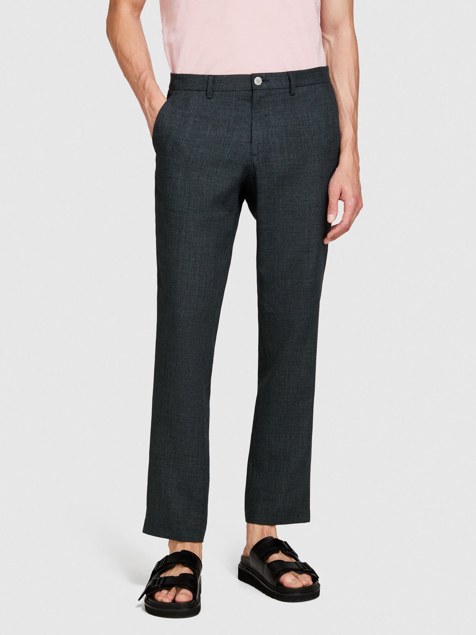 Slim comfort fit trousers in linen blend, with belt loops at the waist, zip and button closure, two front slant pockets and two flap pockets at the back.