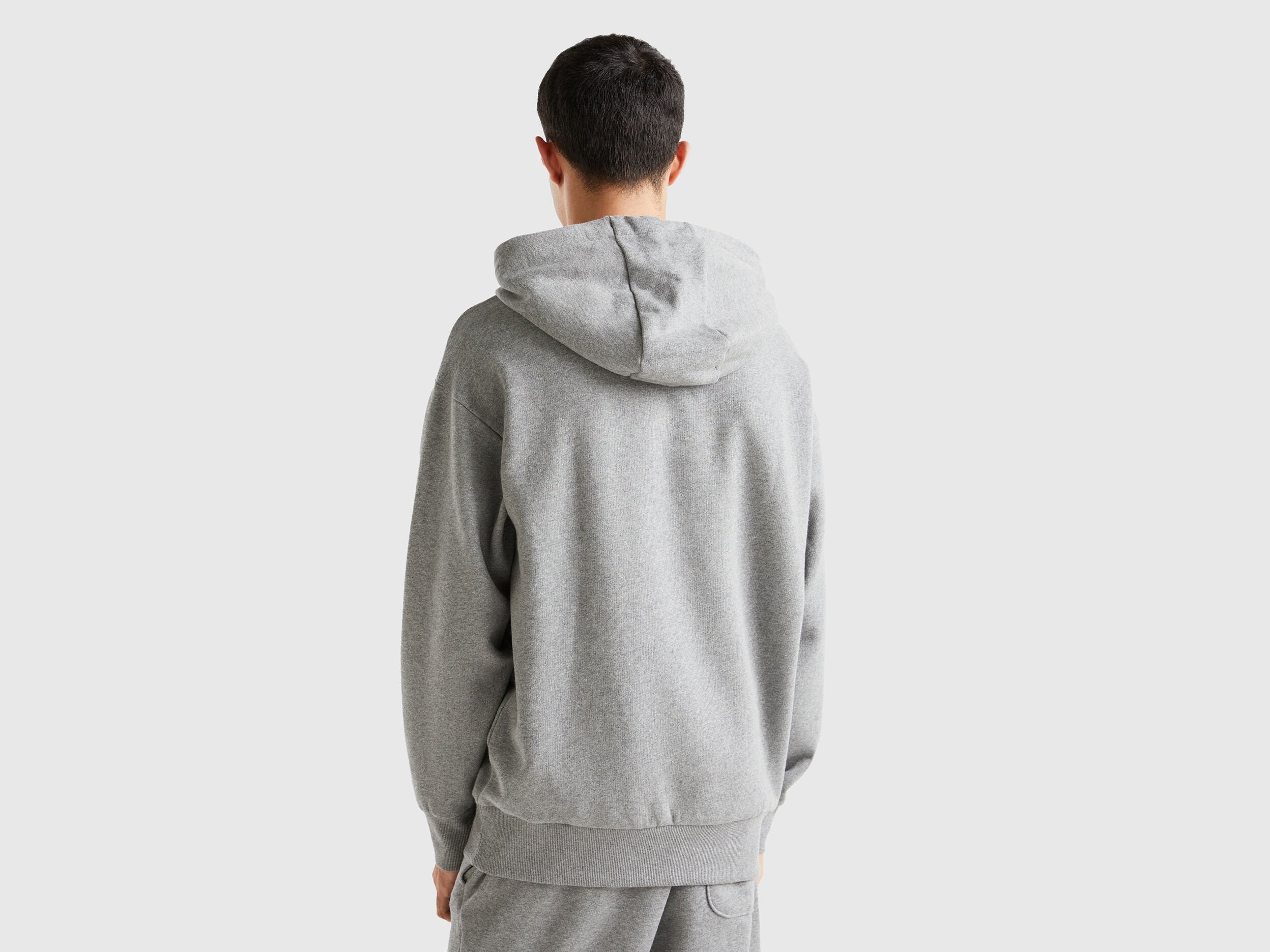 Long sleeve hoodie in warm cotton blend. Large hood with drawstring and kangaroo pocket on the front. Relaxed fit and tone-on-tone embroidered logo at left breast. Comfortable and sporty style, perfect for free time.