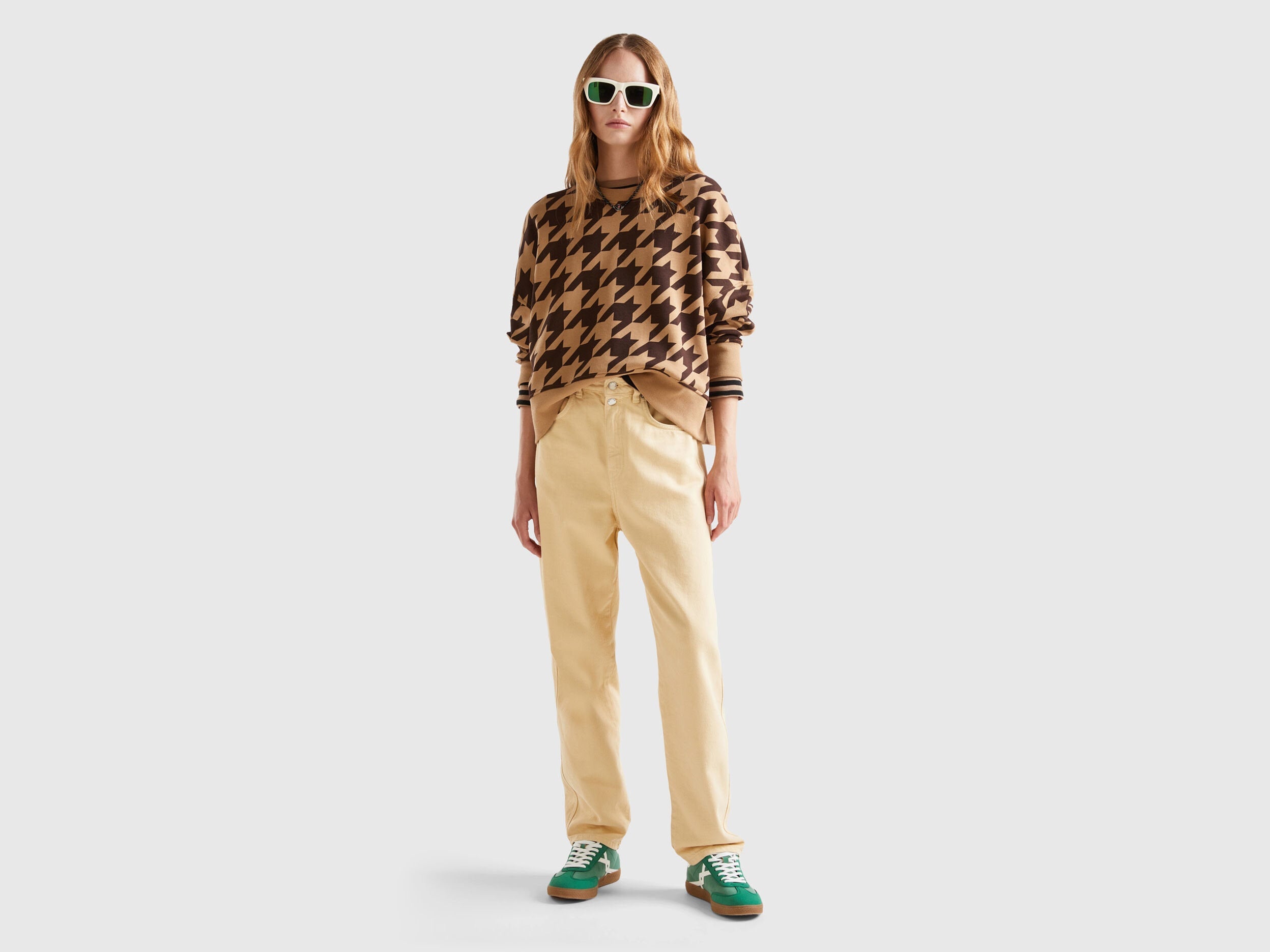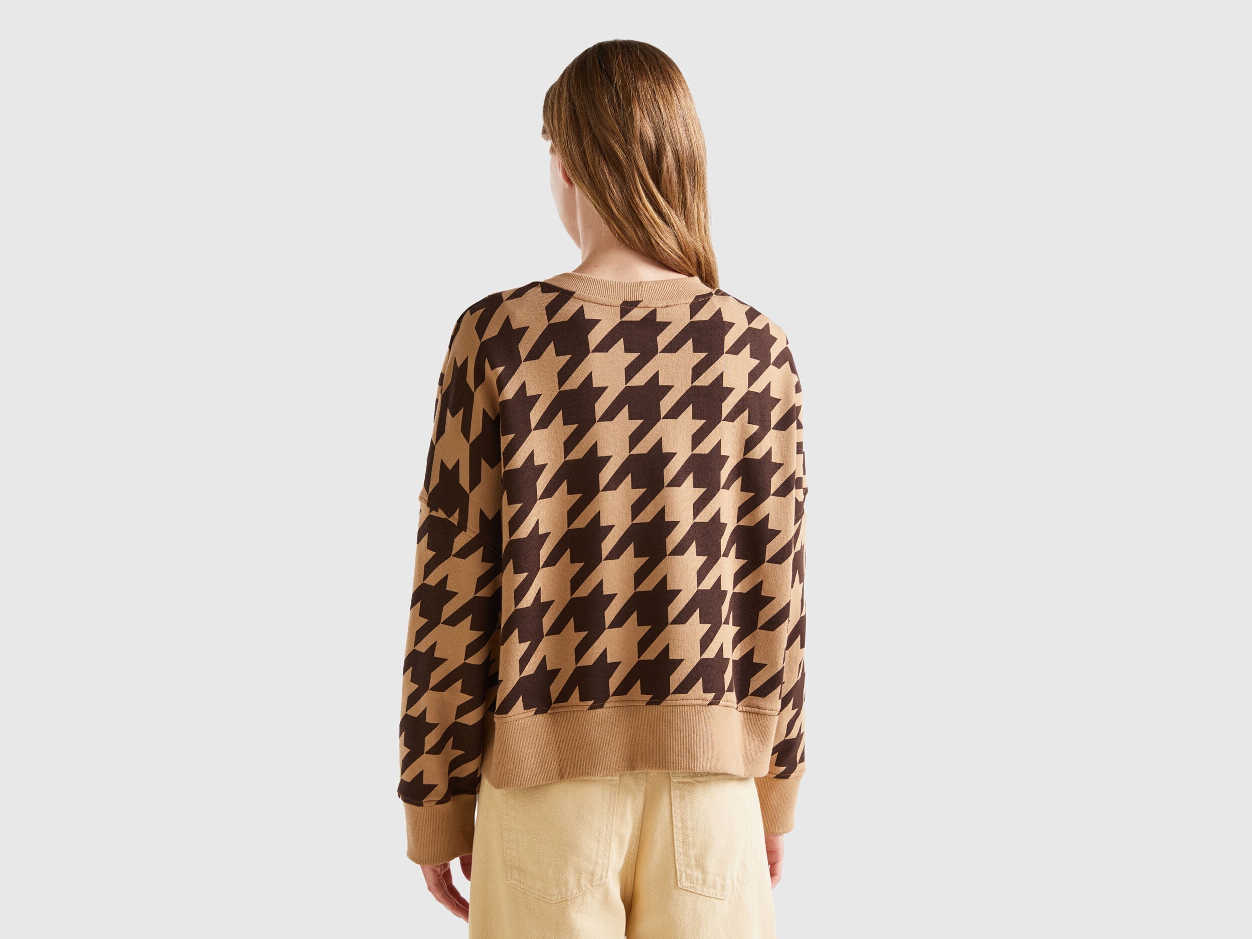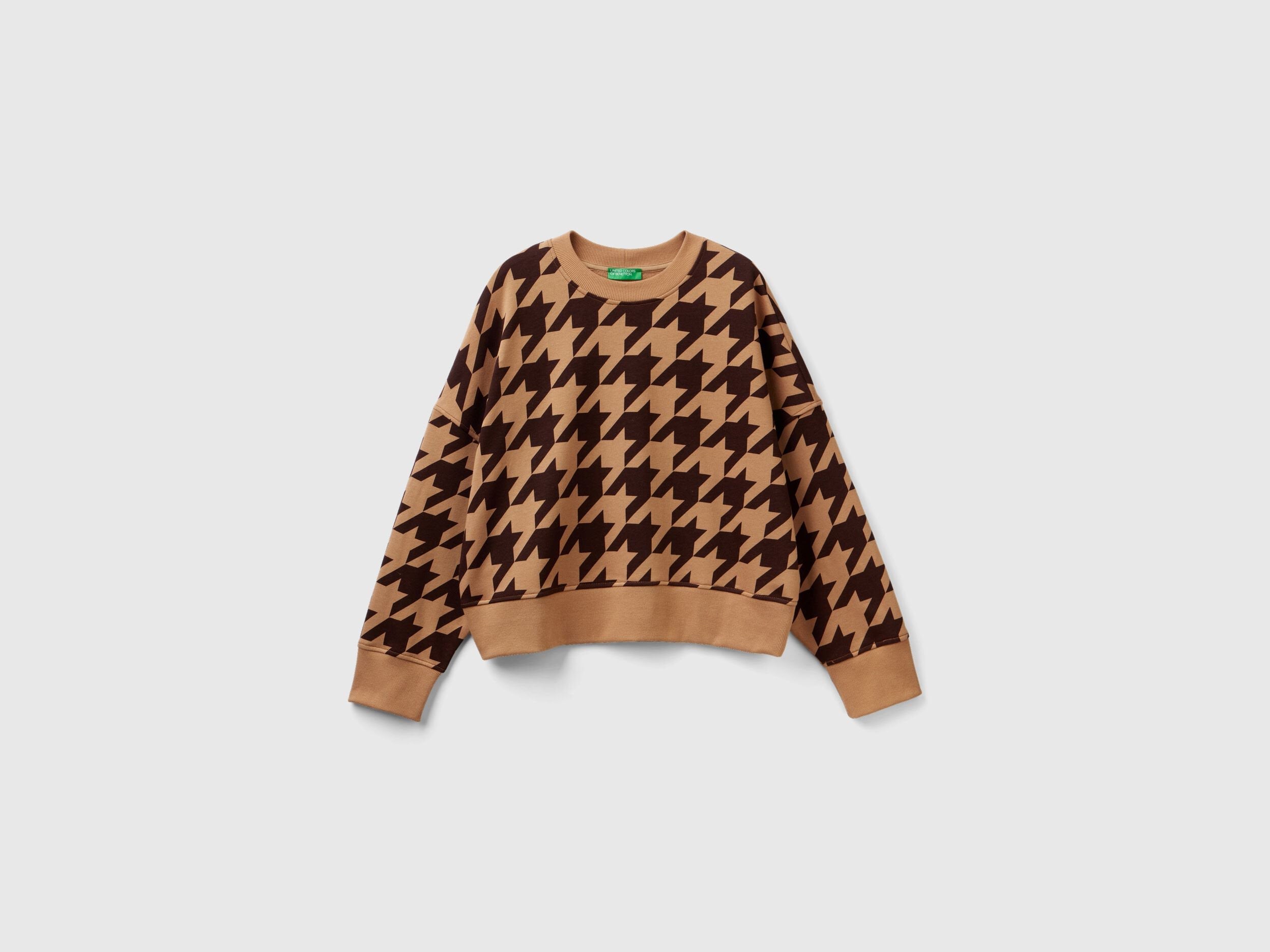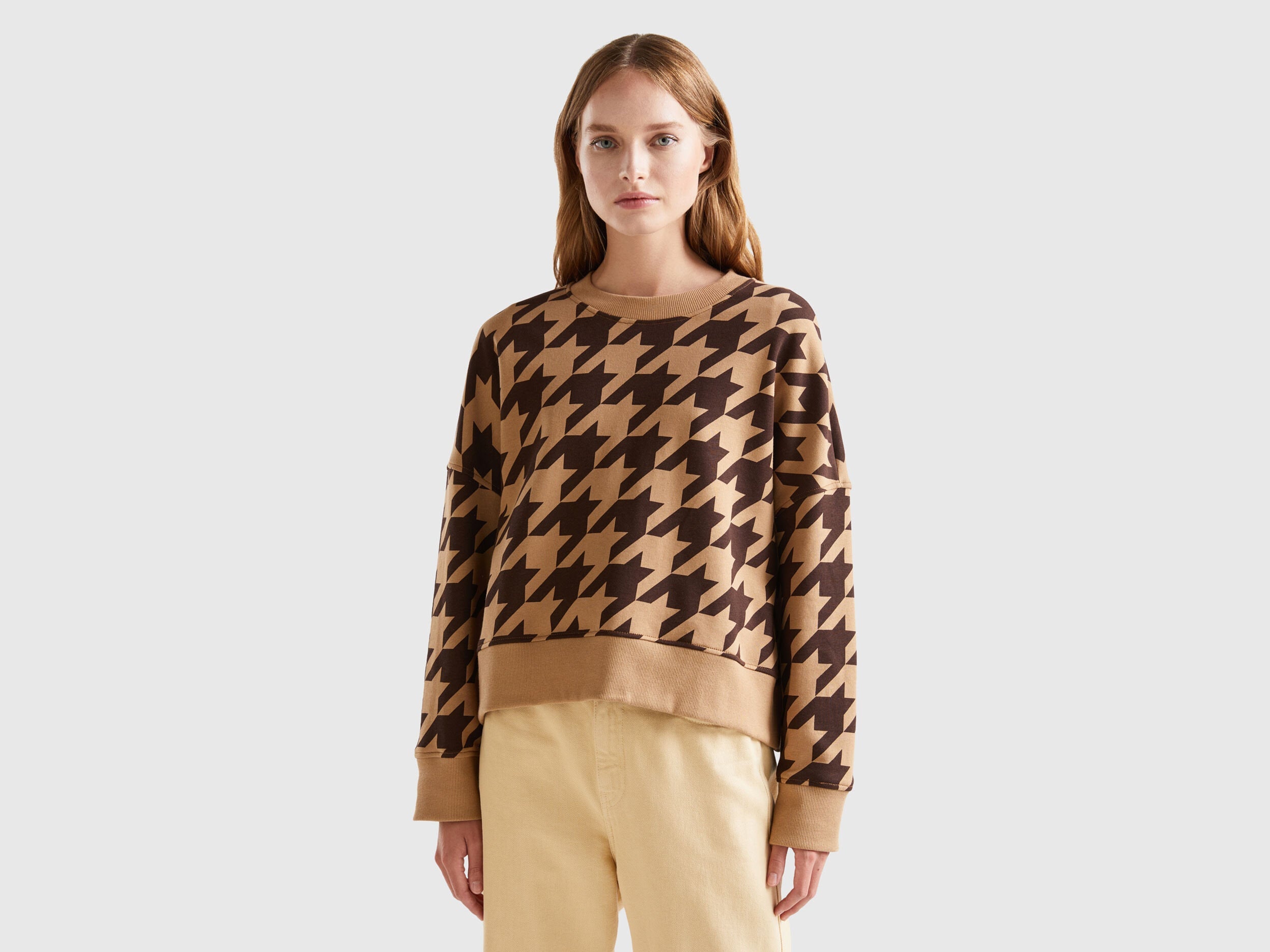 Soft crew neck sweatshirt in pure cotton with boxy fit. Long sleeve, Houndstooth print all over. For trendy looks, without giving up on comfort.