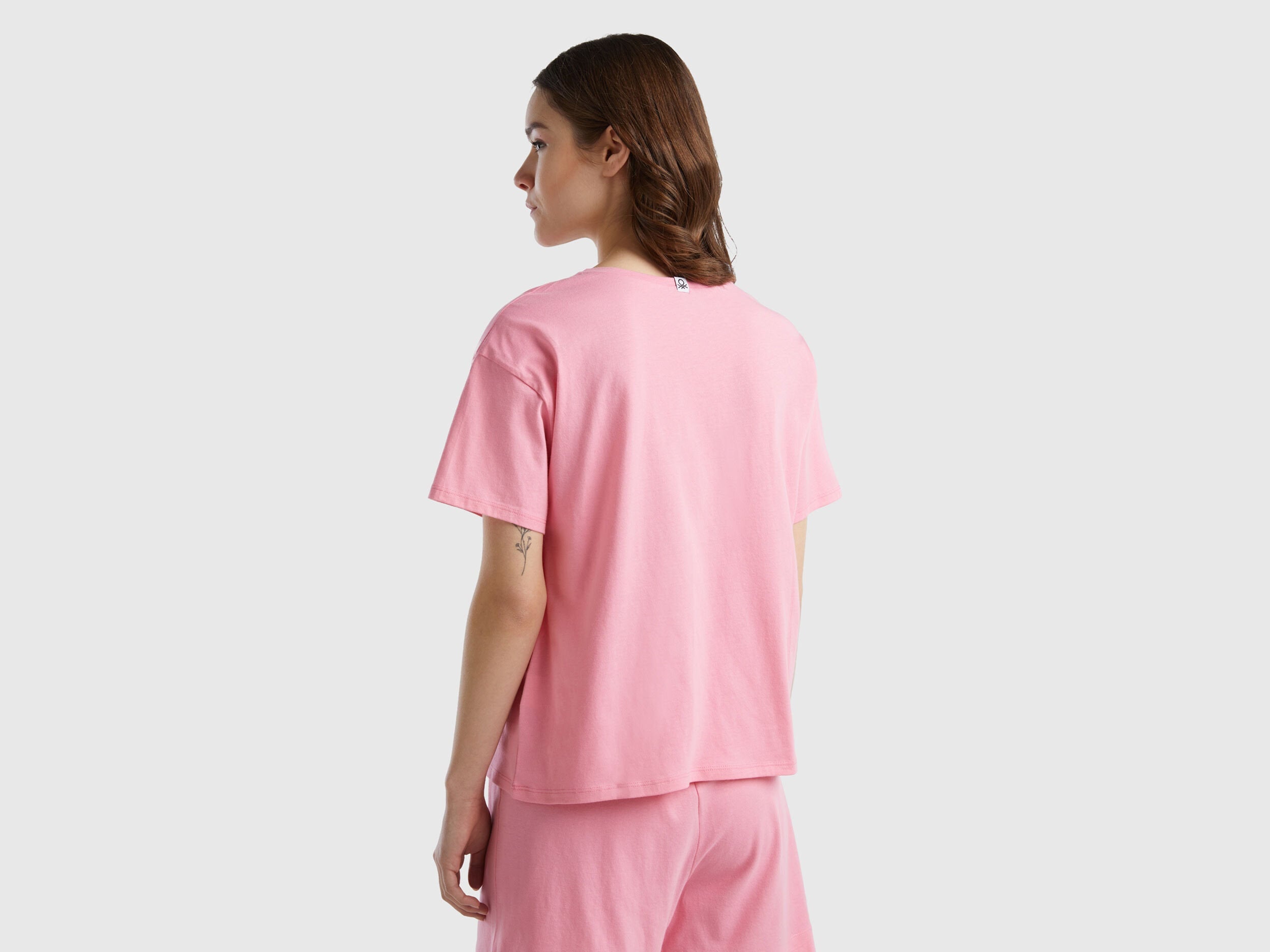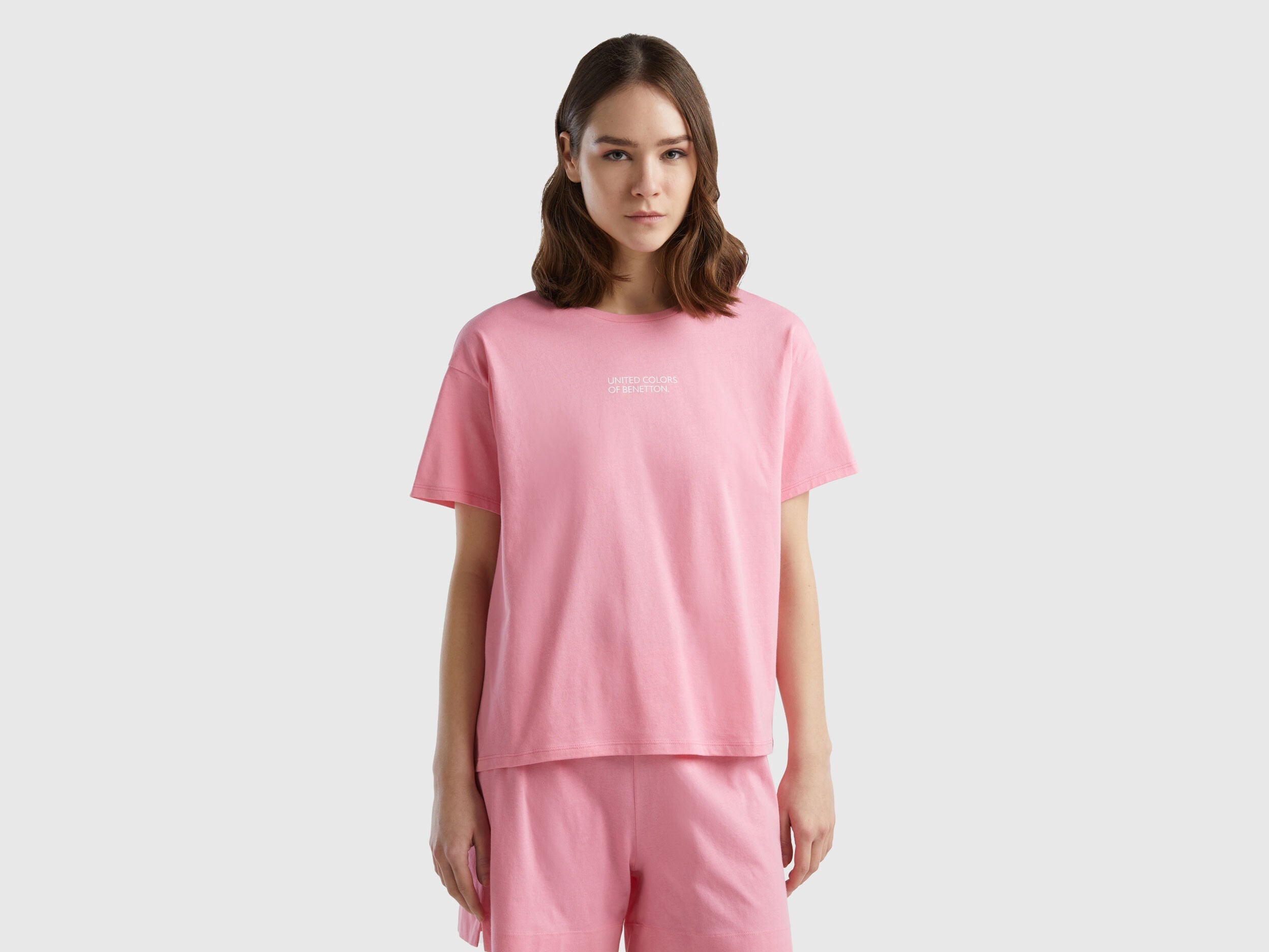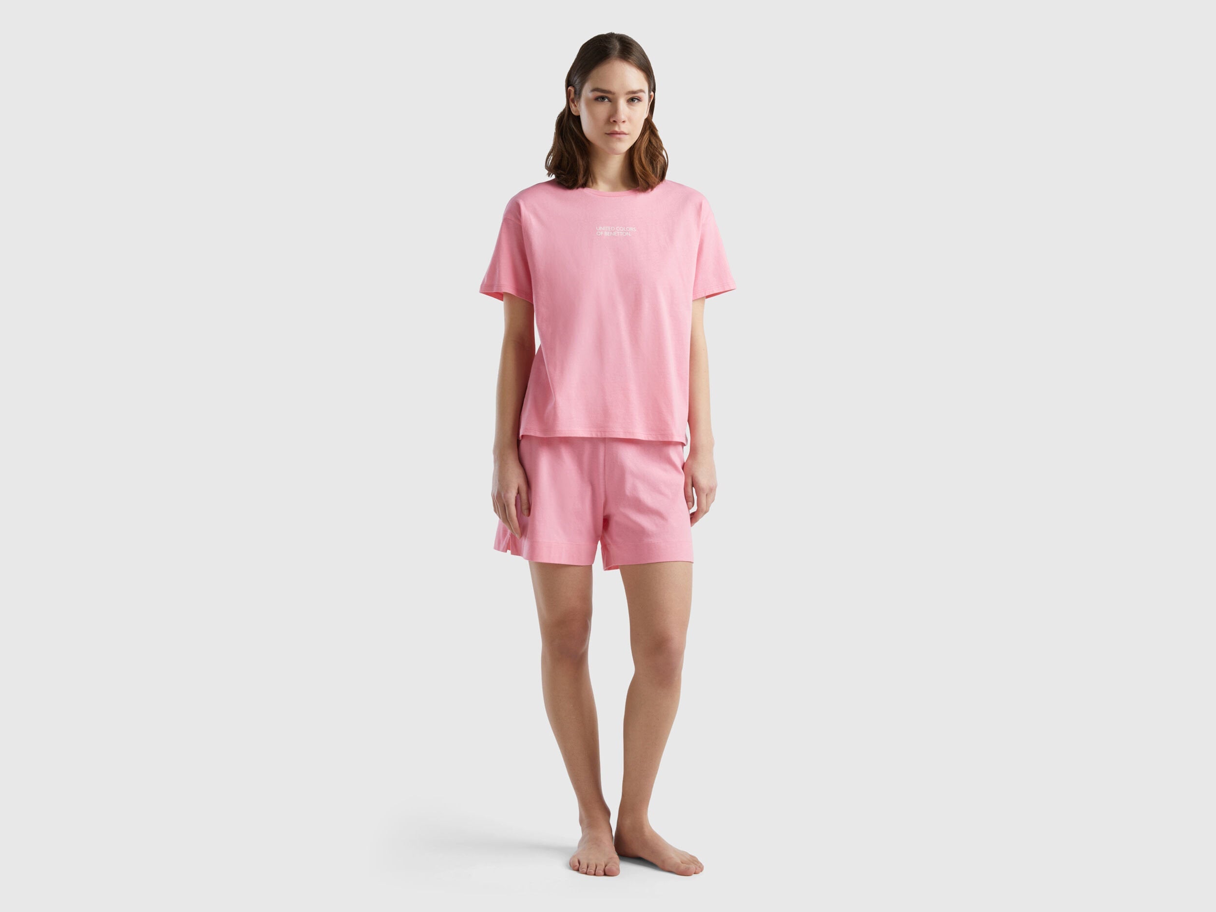 Crew neck pyjama top in pure cotton. Short sleeve and logo print with Benetton text on the front.