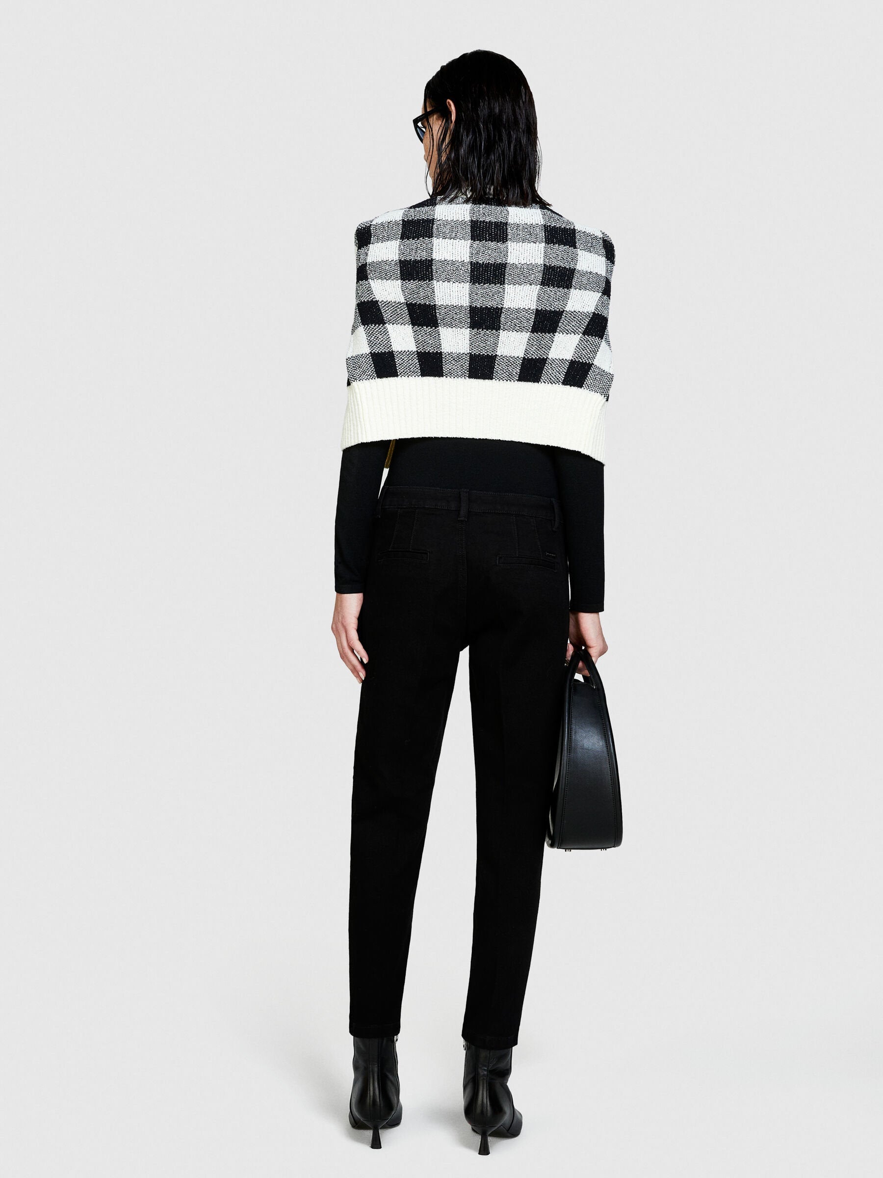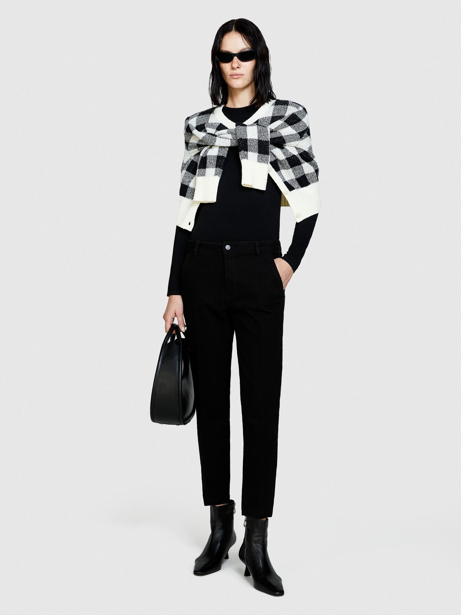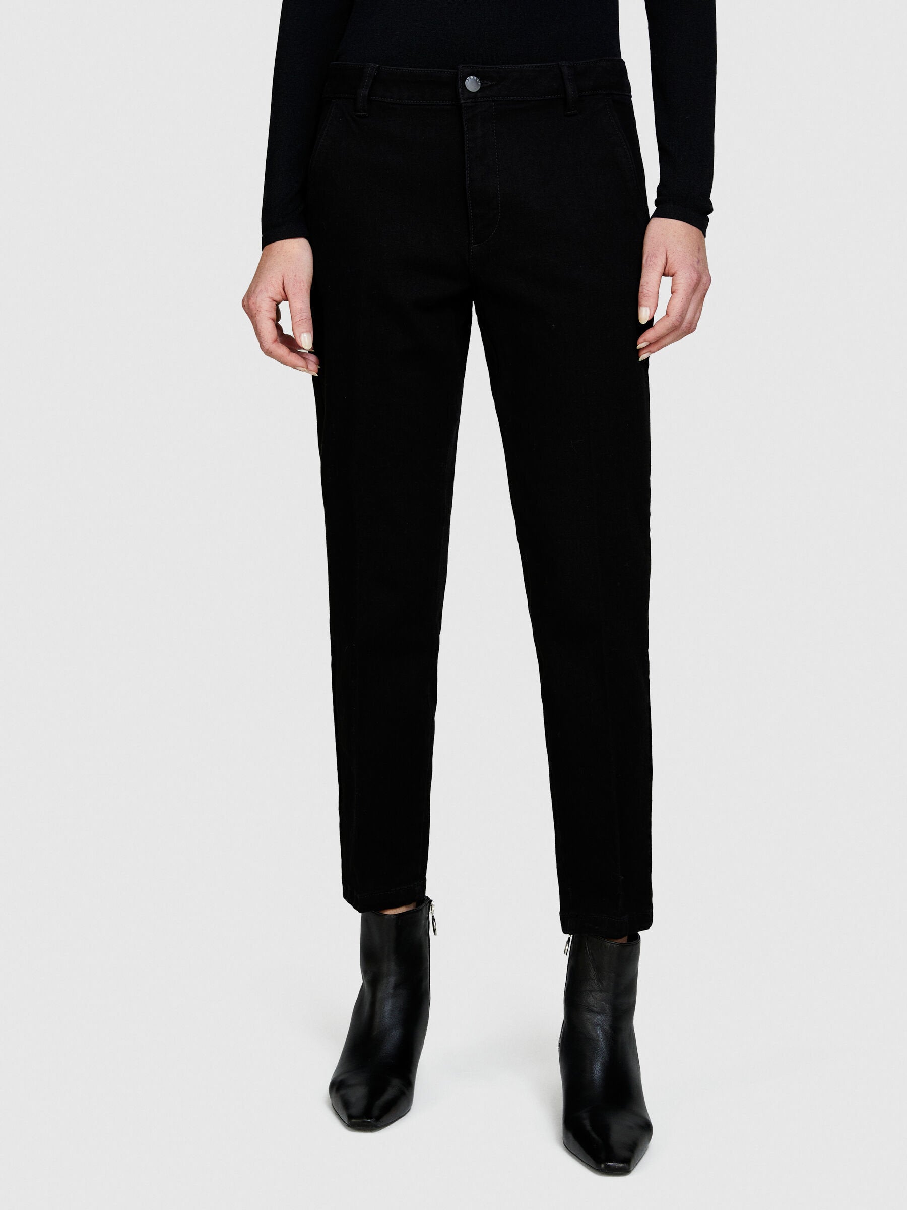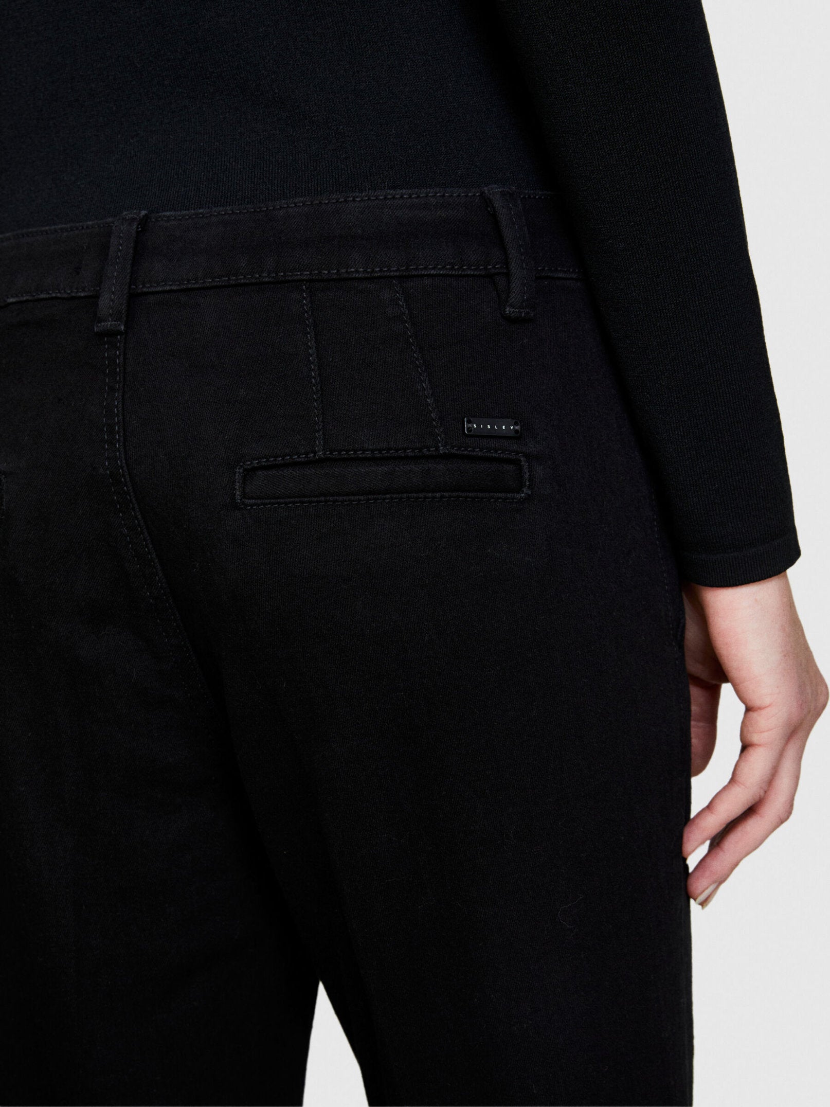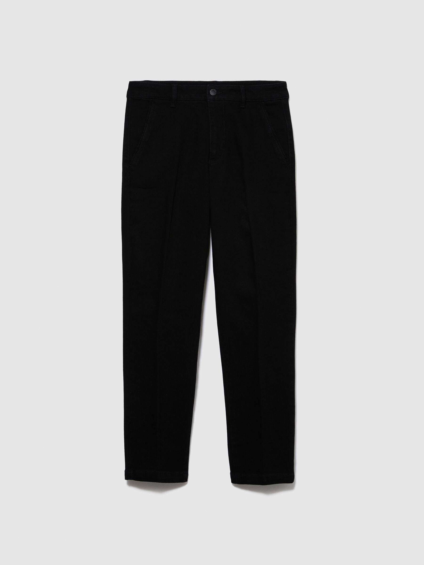 Slim fit jeans in stretch cotton denim, with rinse wash. Ironed crease along the leg, two slash pockets on the front and two welt pockets on the back.