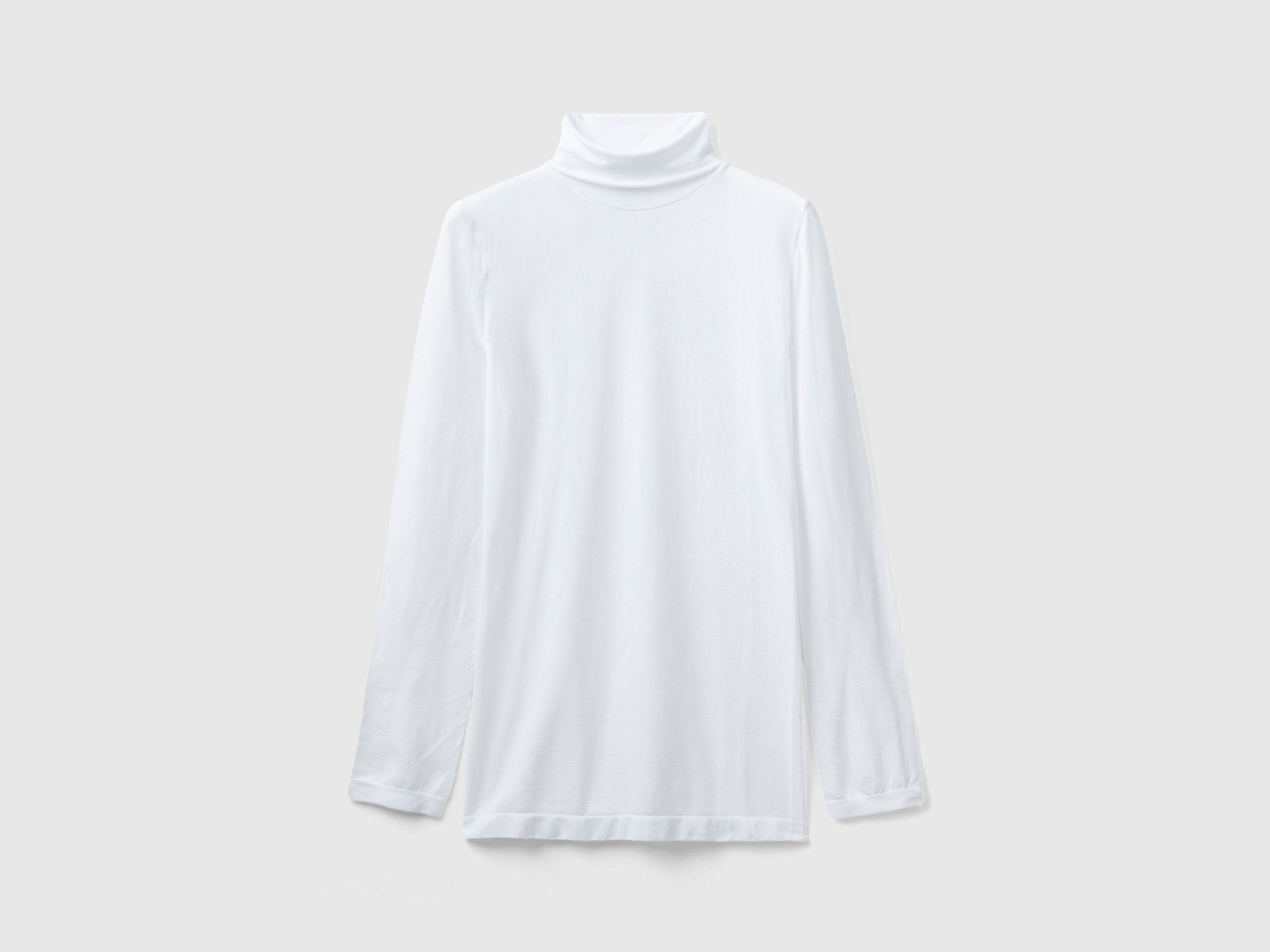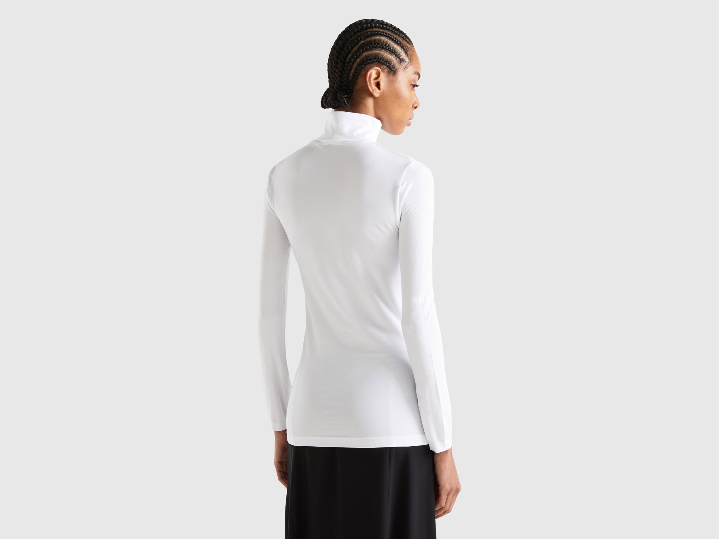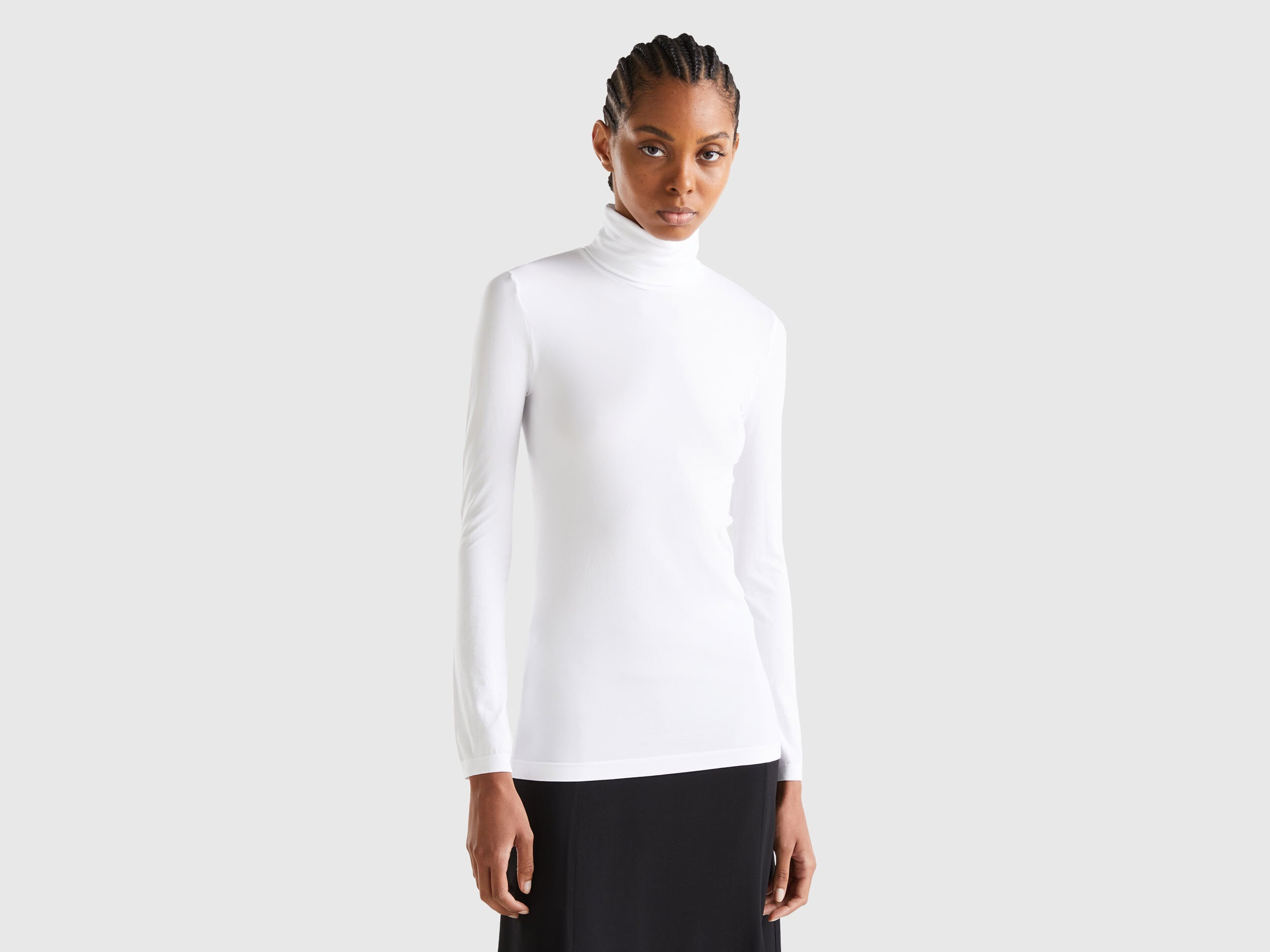 Long sleeve stretch turtleneck. Basic and essential, it can be worn alone, under a jacket or as an extra layer in the colder months.