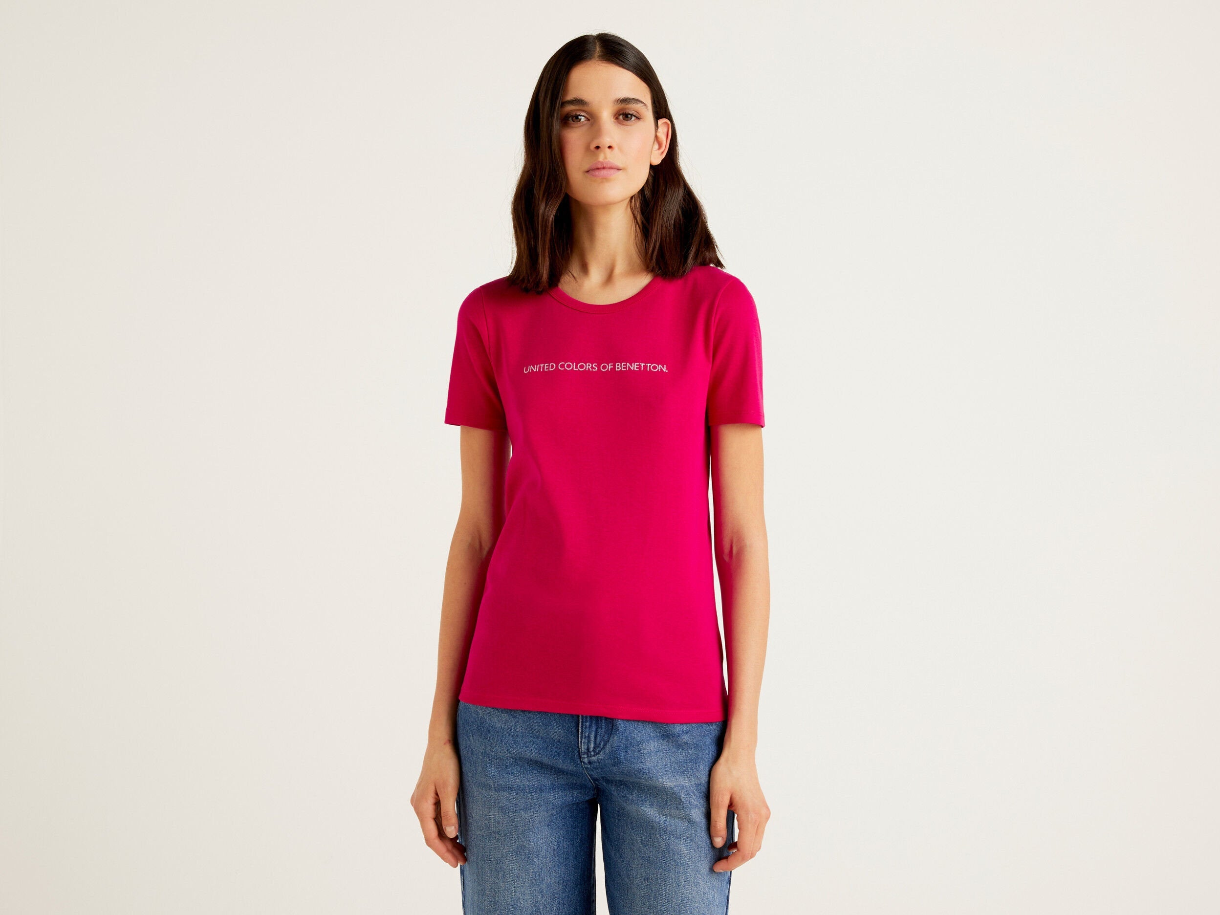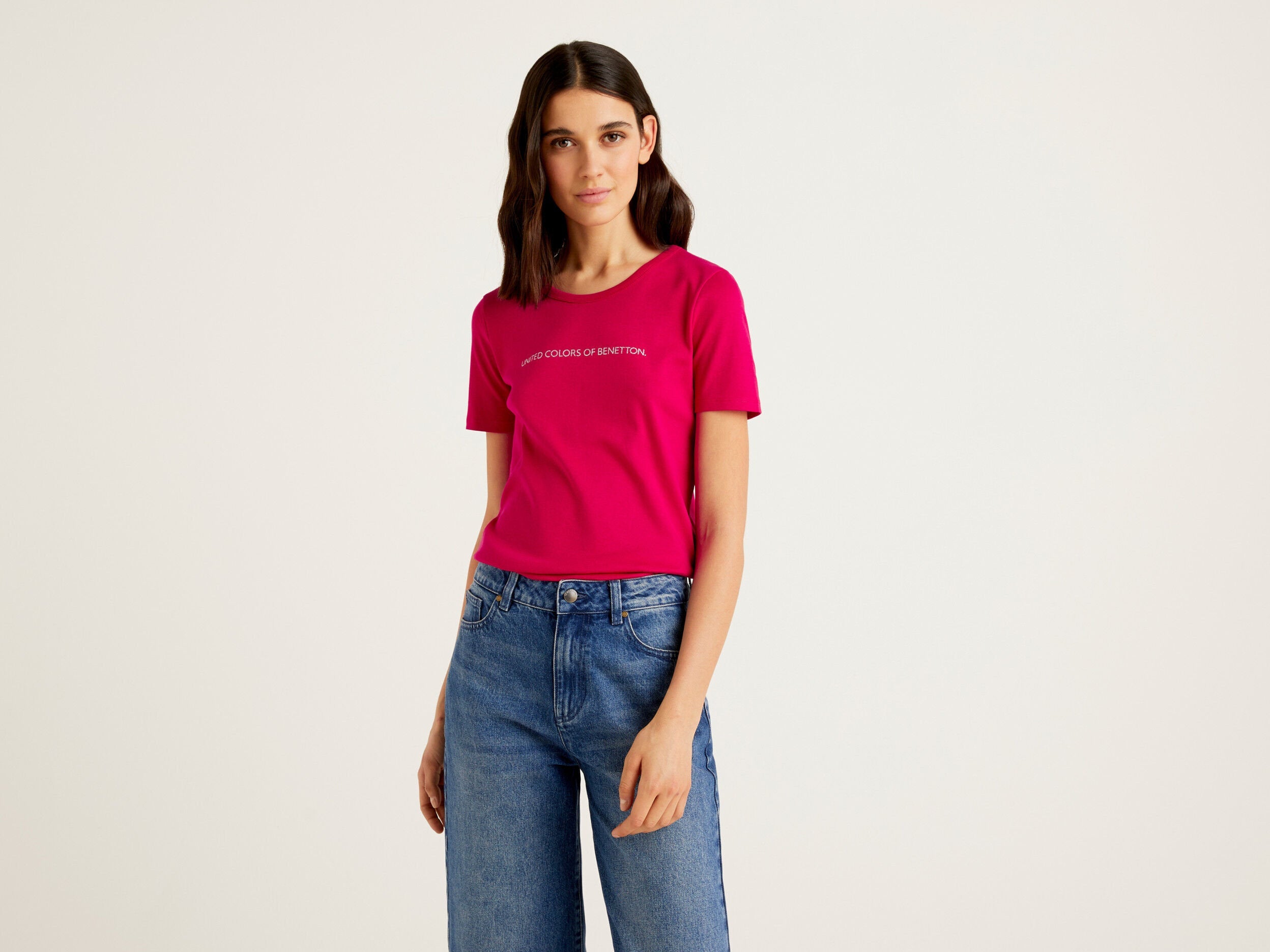 T-Shirt In 100% Cotton With Glitter Print Logo