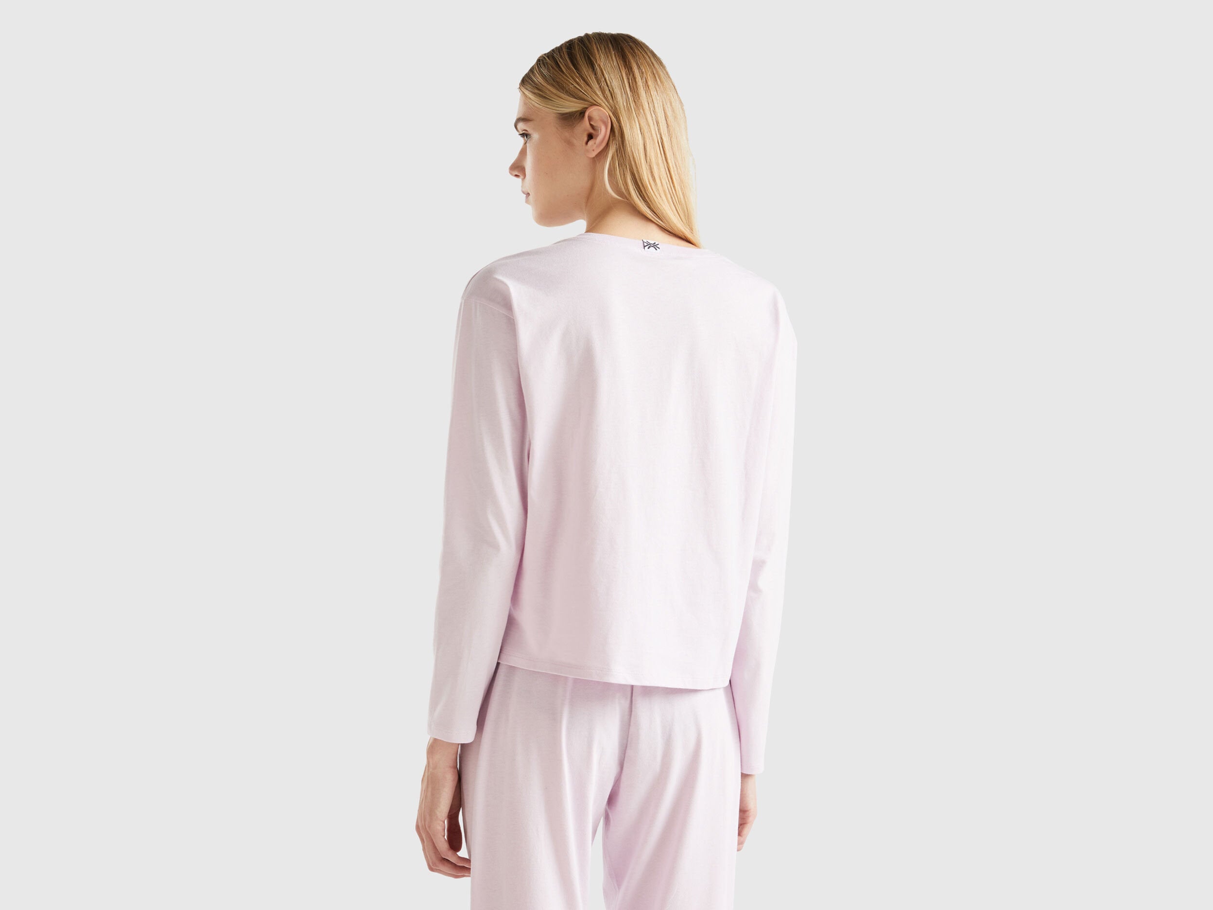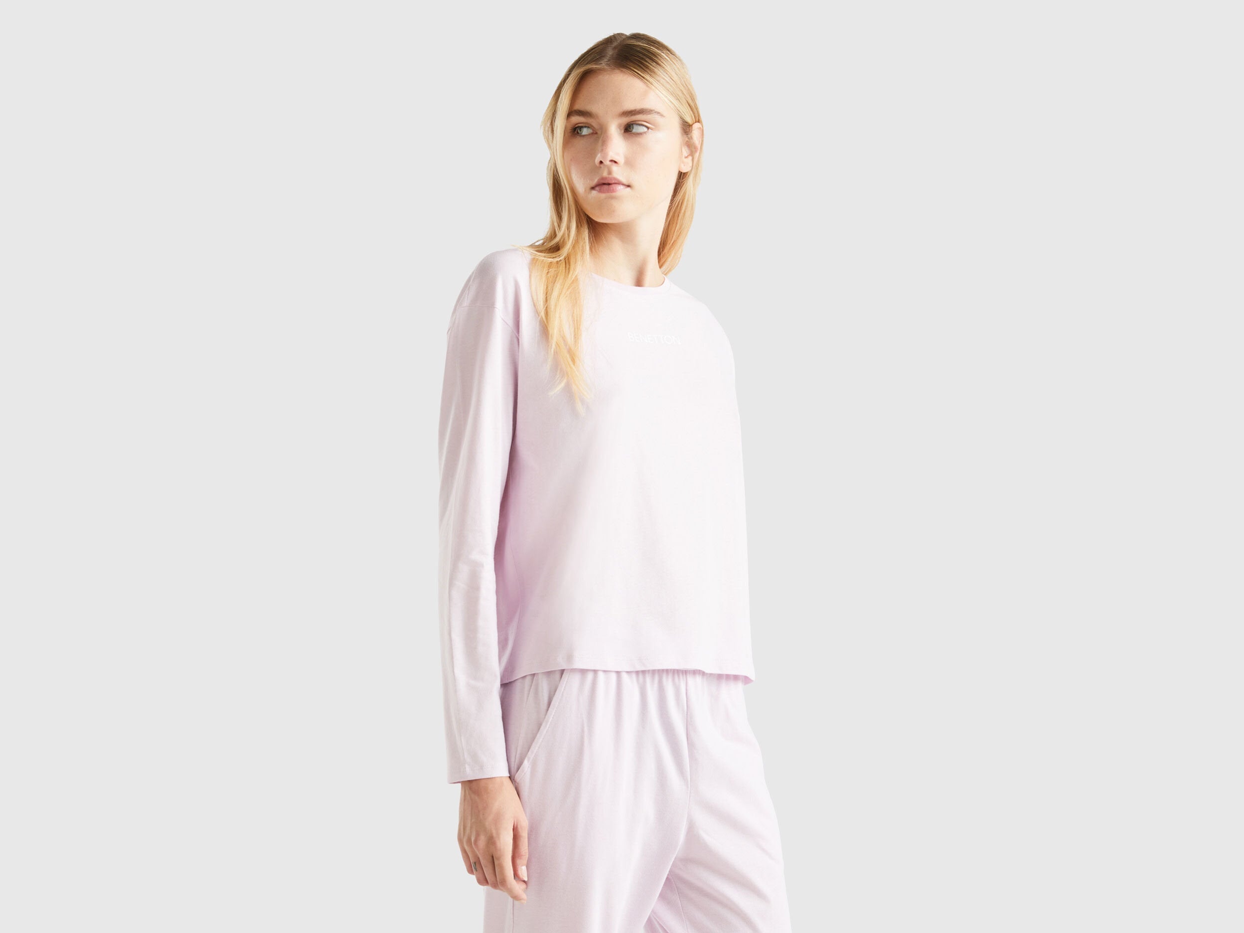 Pyjama top in a soft pure cotton fabric. Round neckline, long sleeves and logo print at center front.