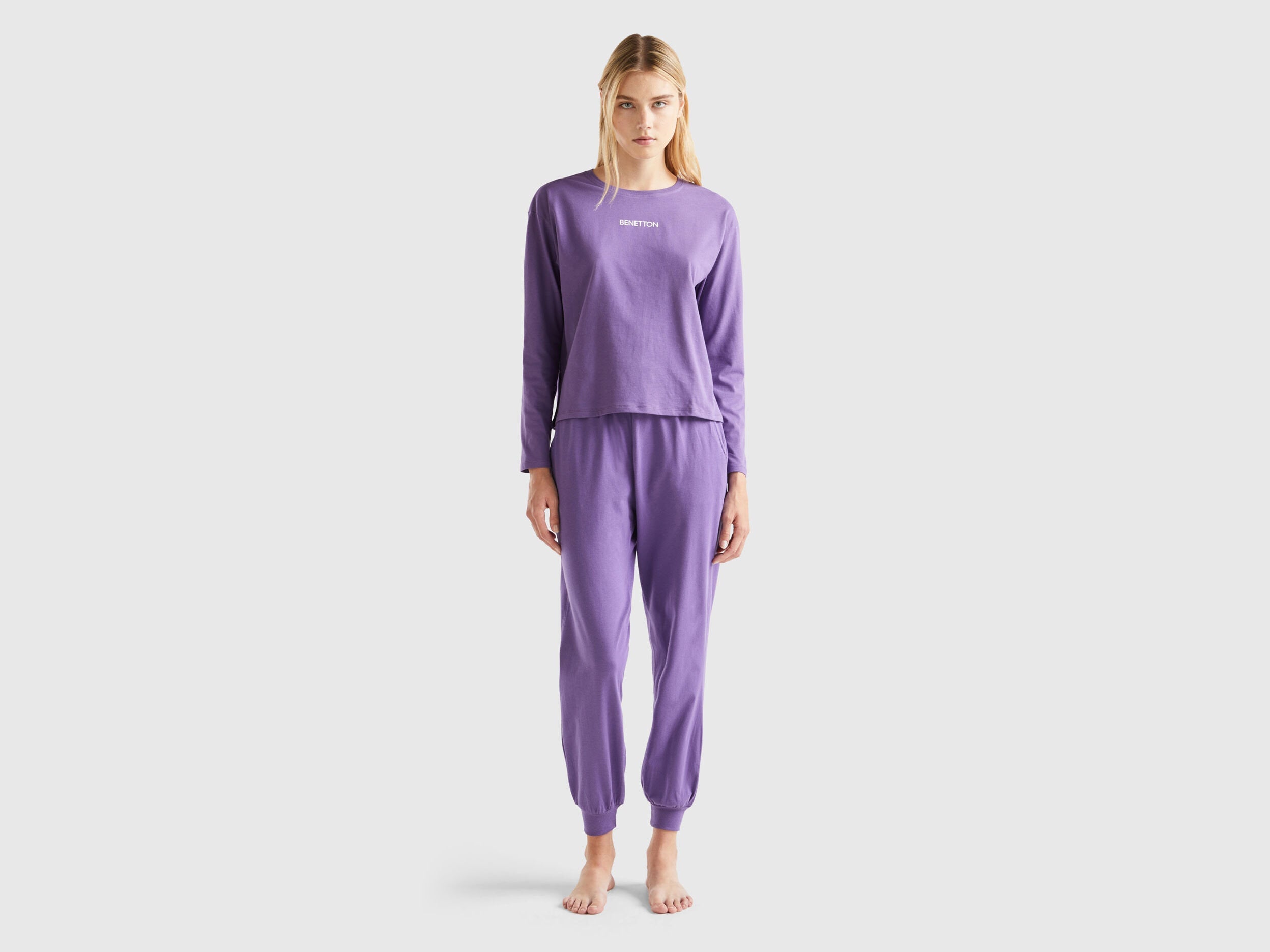 Long pyjama bottoms in a soft pure cotton fabric. Convenient logo elastic waist and diagonal pockets on the front.