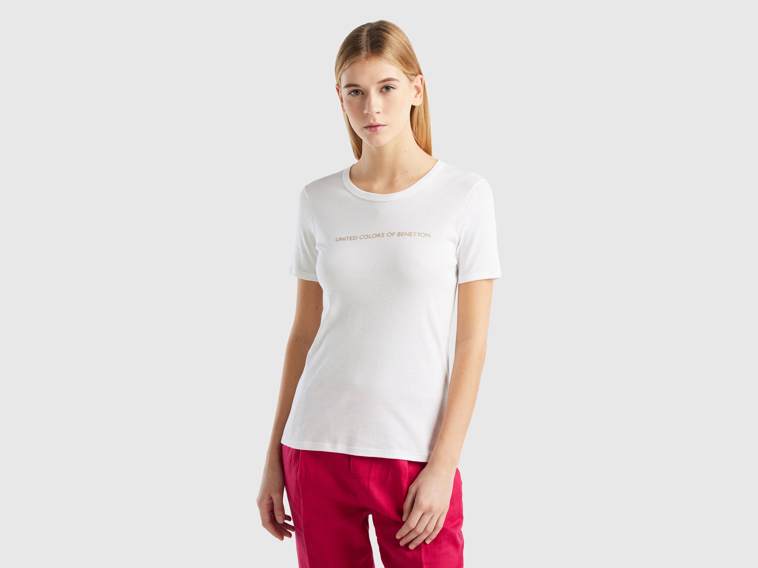 T-Shirt in 100% Cotton with Glitter Print Logo_3GA2E16A2_101_02
