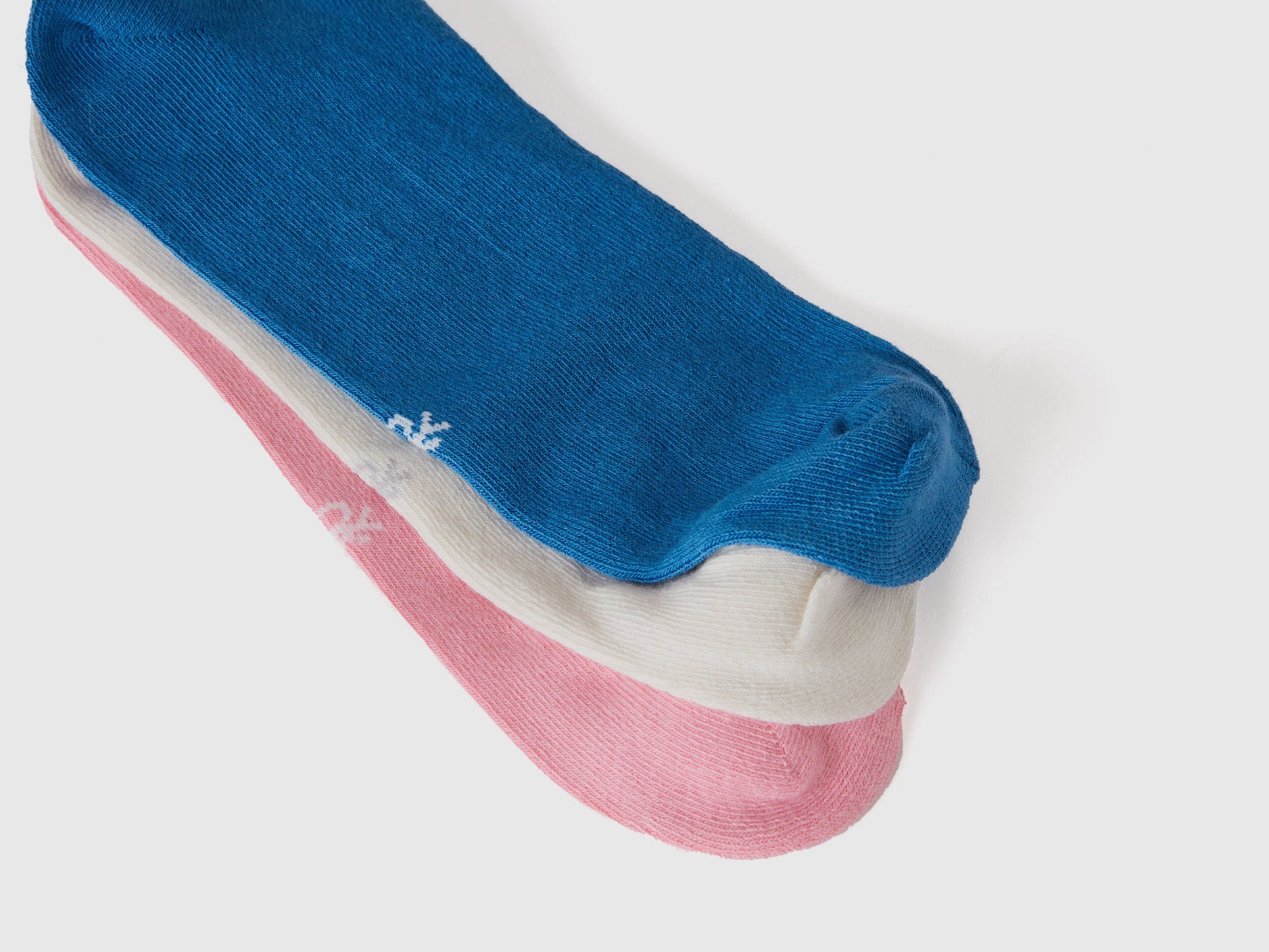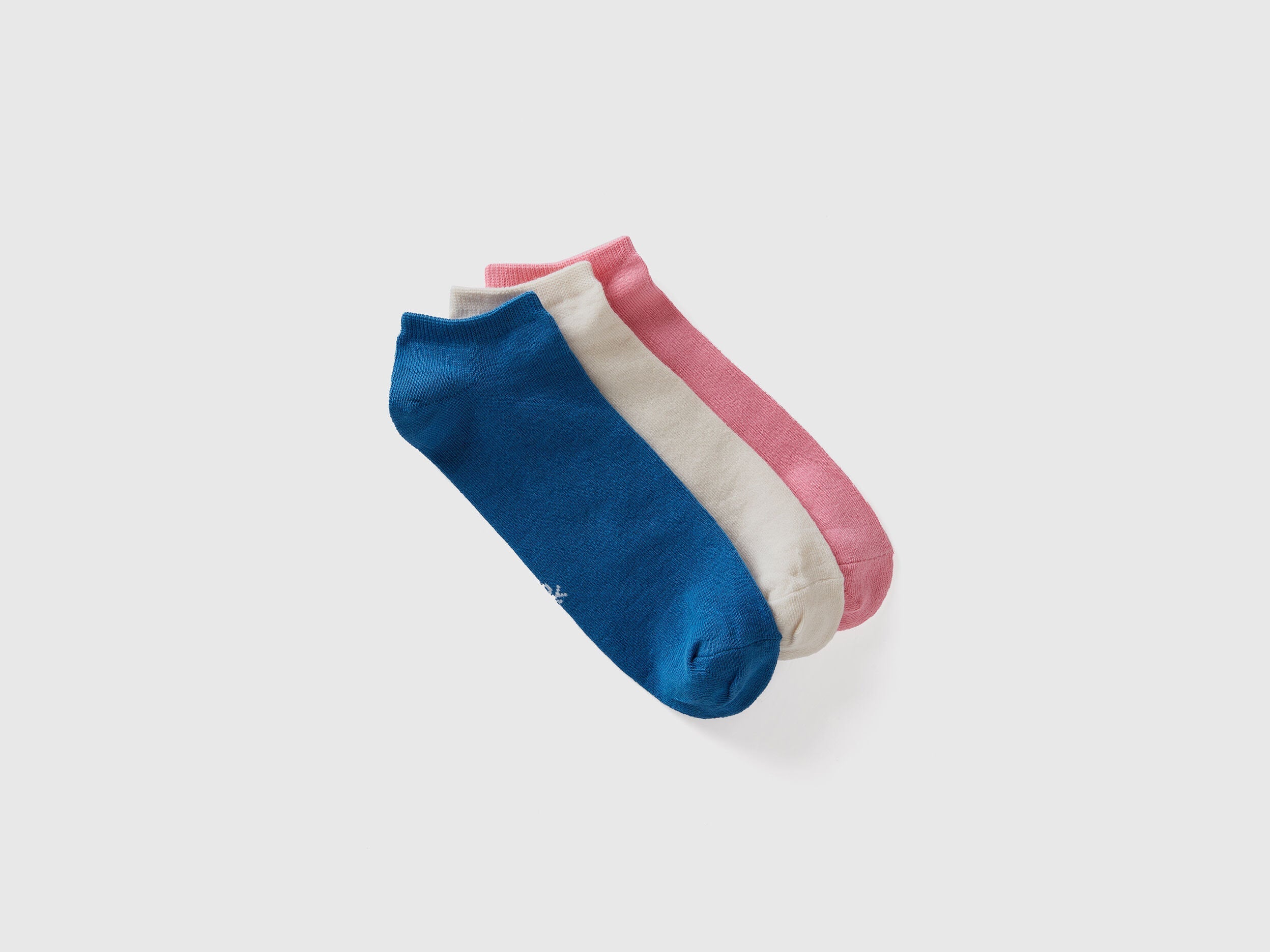 Three pairs of very short solid color socks in a stretch organic cotton blend. Logo embroidered on the insole.