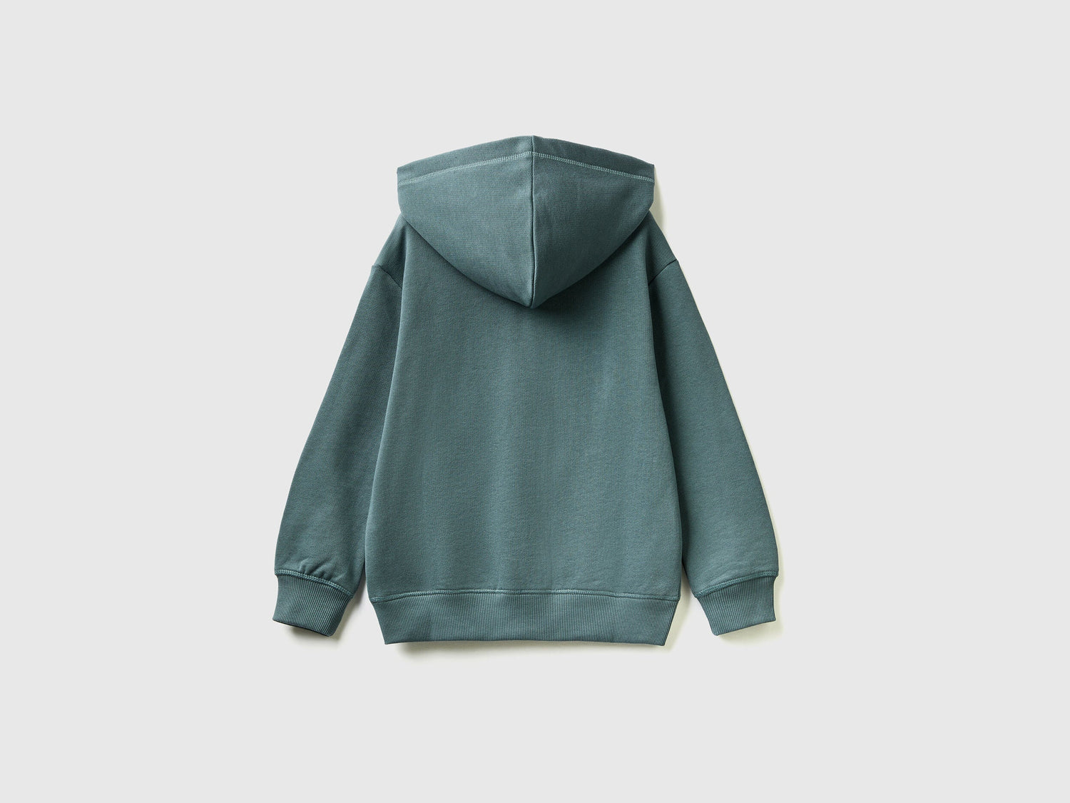 Sweatshirt with hood in pure cotton with consistent yet light feel. Zip opening, front patch pockets and "BE" front print. Loose fit, sporty style and the utmost practicality.
