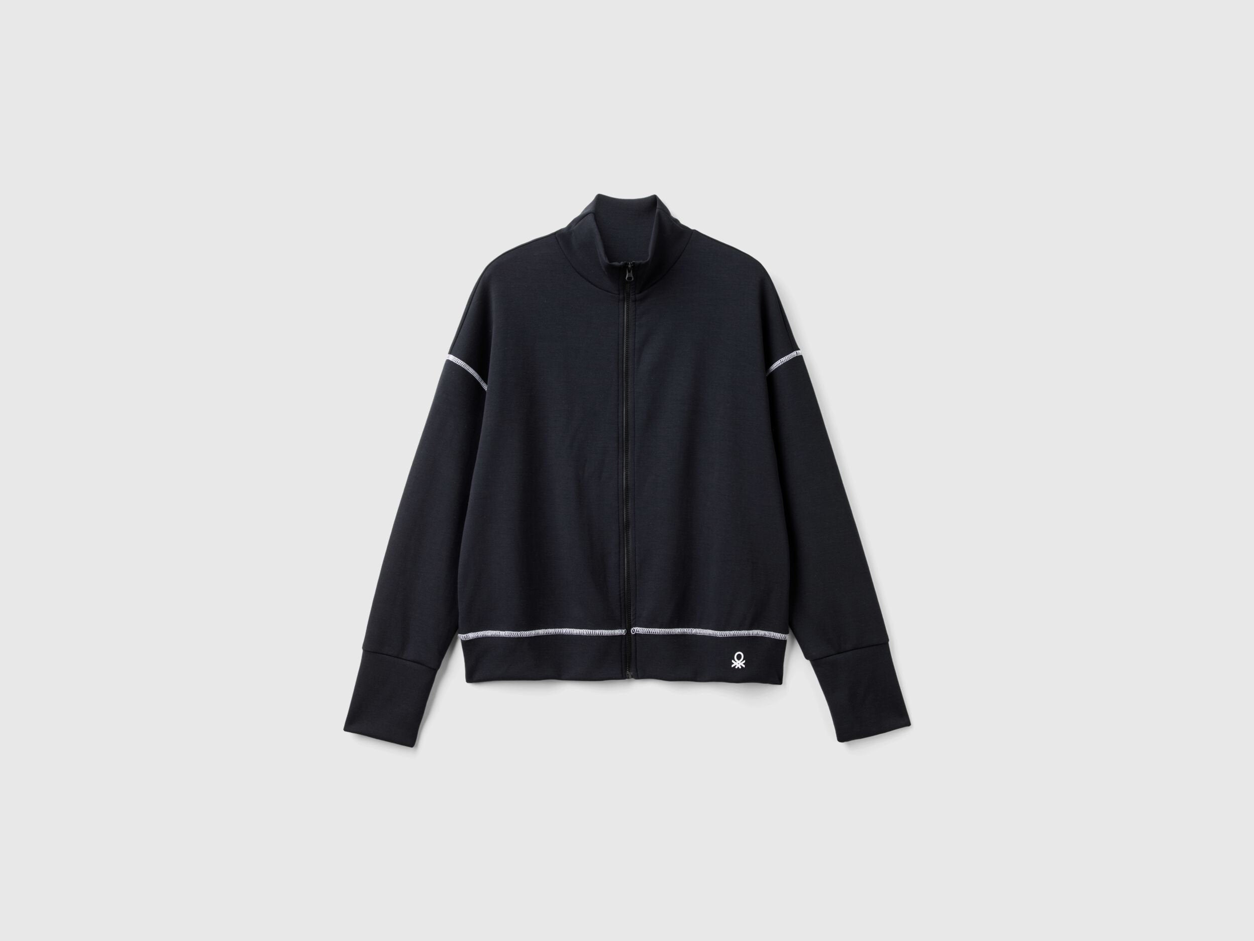 Sweatshirt in soft stretch viscose blend fabric. High neck, practical zip opening and printed logo on left bottom. Long sleeves with high cuff and dropped shoulders. Relaxed fit and utmost practicality, ideal for sport and free time.