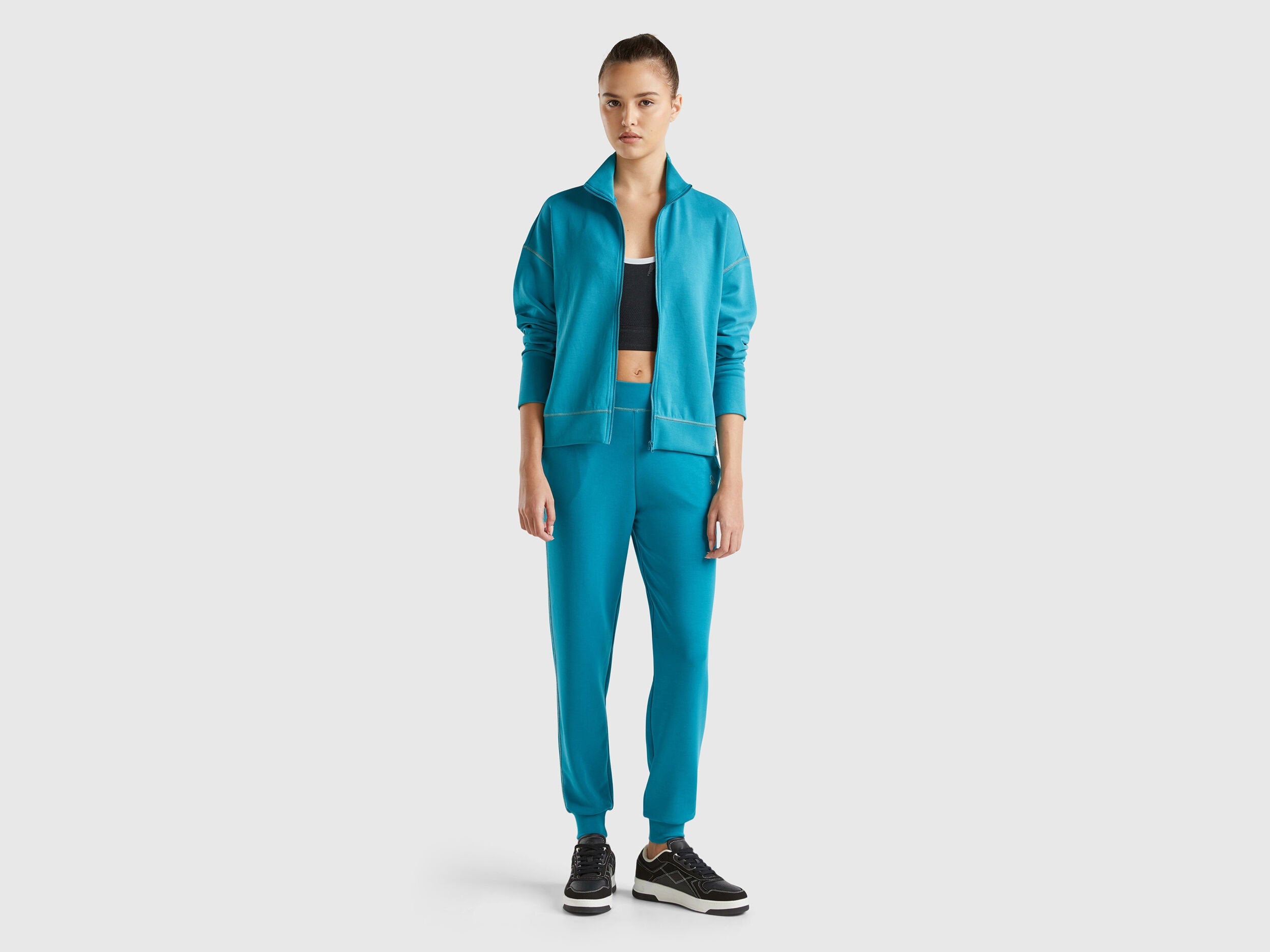 Sweatshirt in soft stretch viscose blend fabric. High neck, practical zip opening and printed logo on left bottom. Long sleeves with high cuff and dropped shoulders. Relaxed fit and utmost practicality, ideal for sport and free time