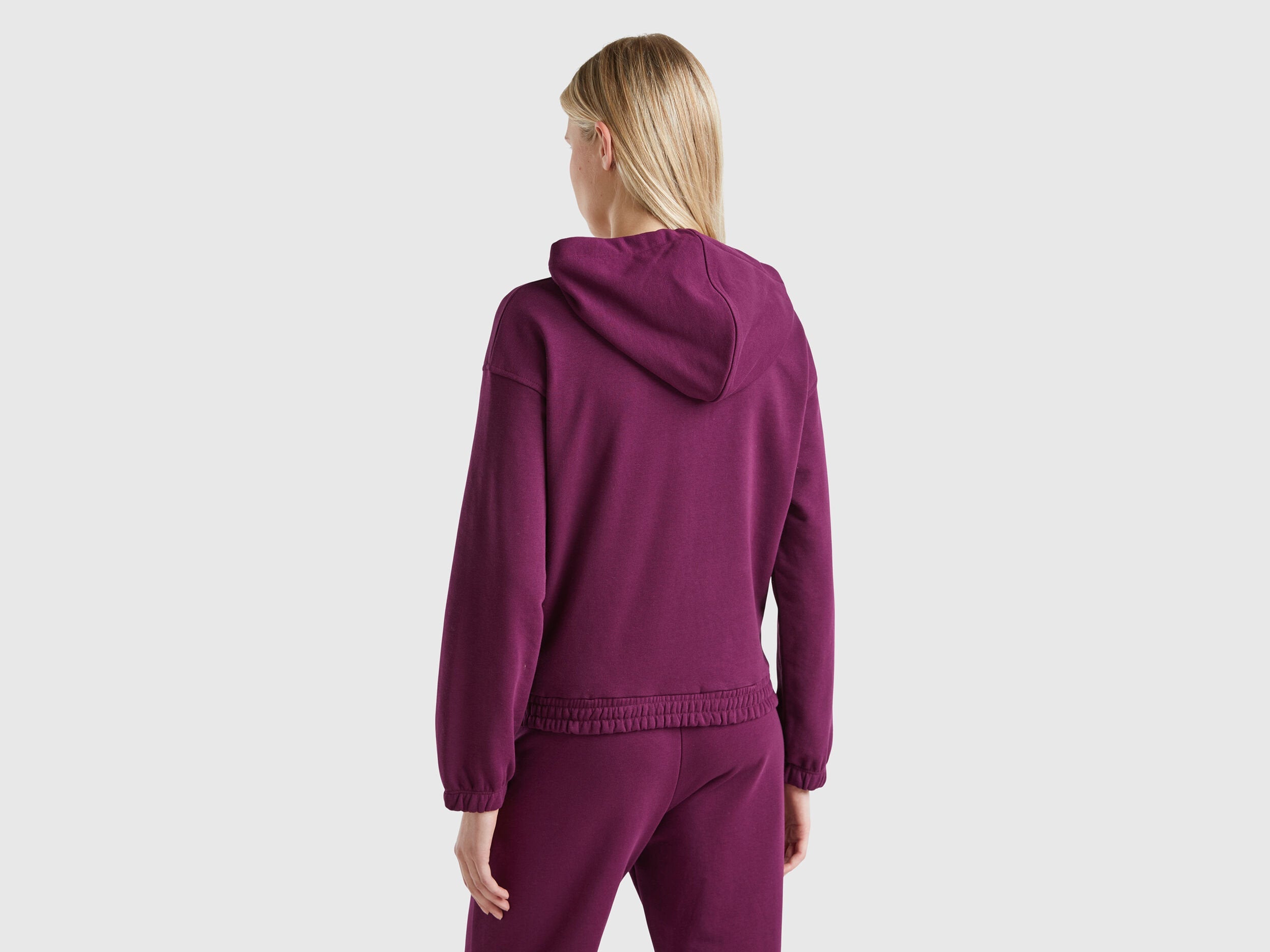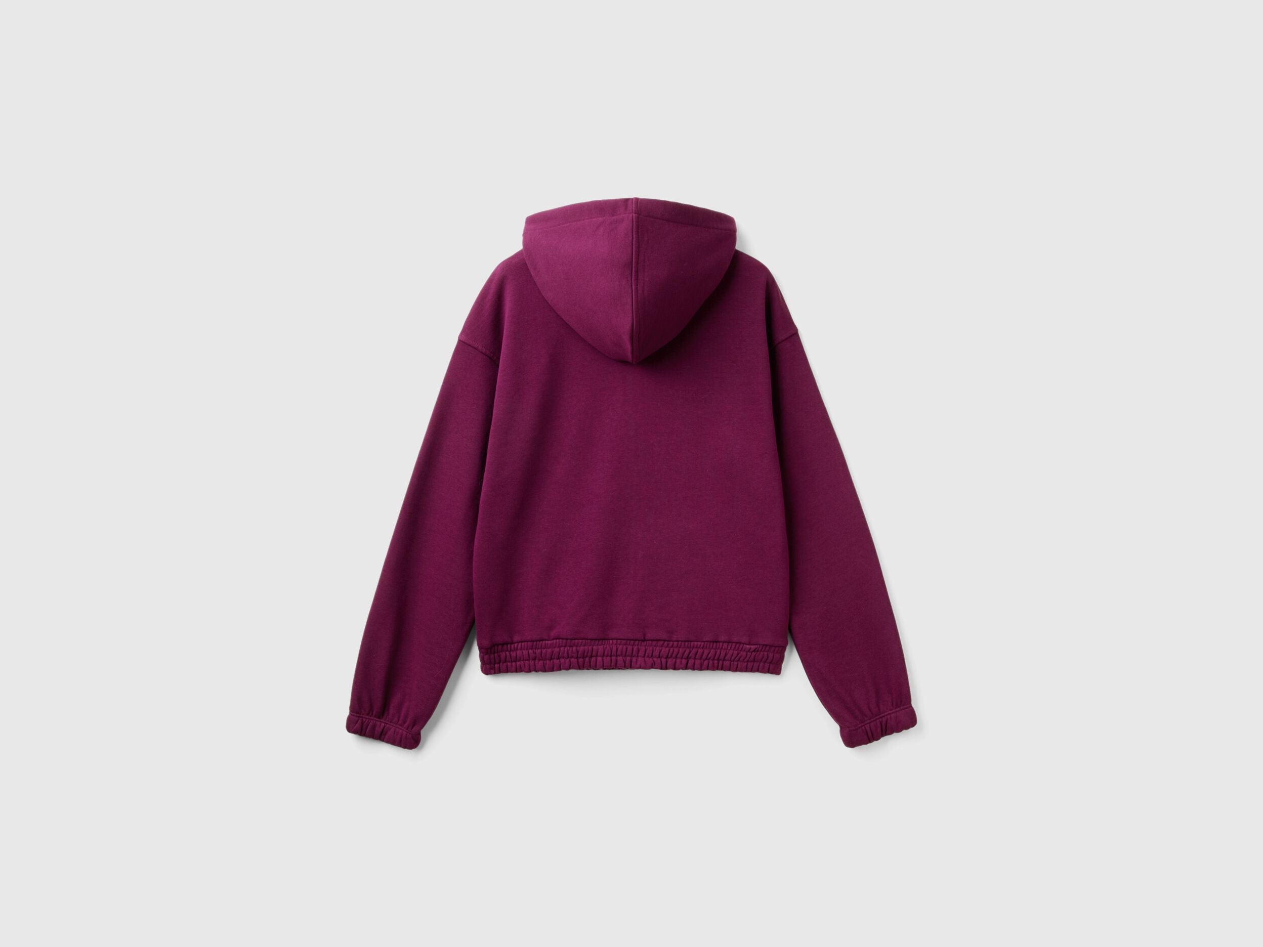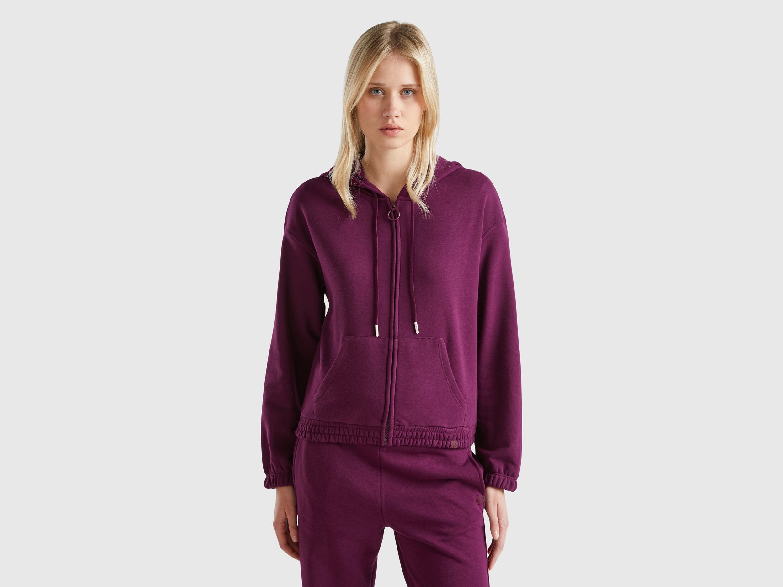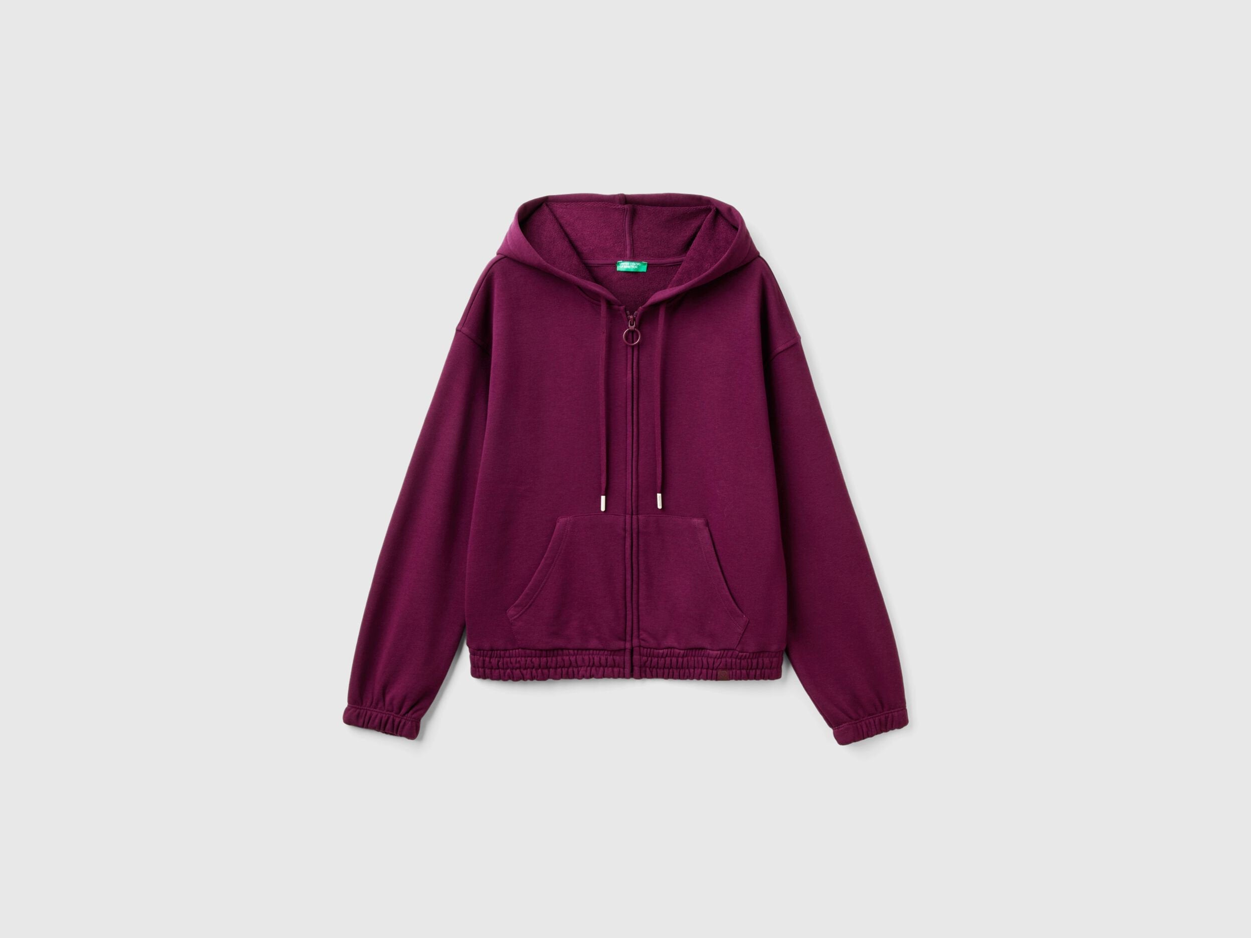 Sweatshirt in soft cotton blend fabric with zip opening. Featuring a practical hood with drawstring, front patch pockets. Relaxed fit and utmost practicality, ideal for sport and free time.