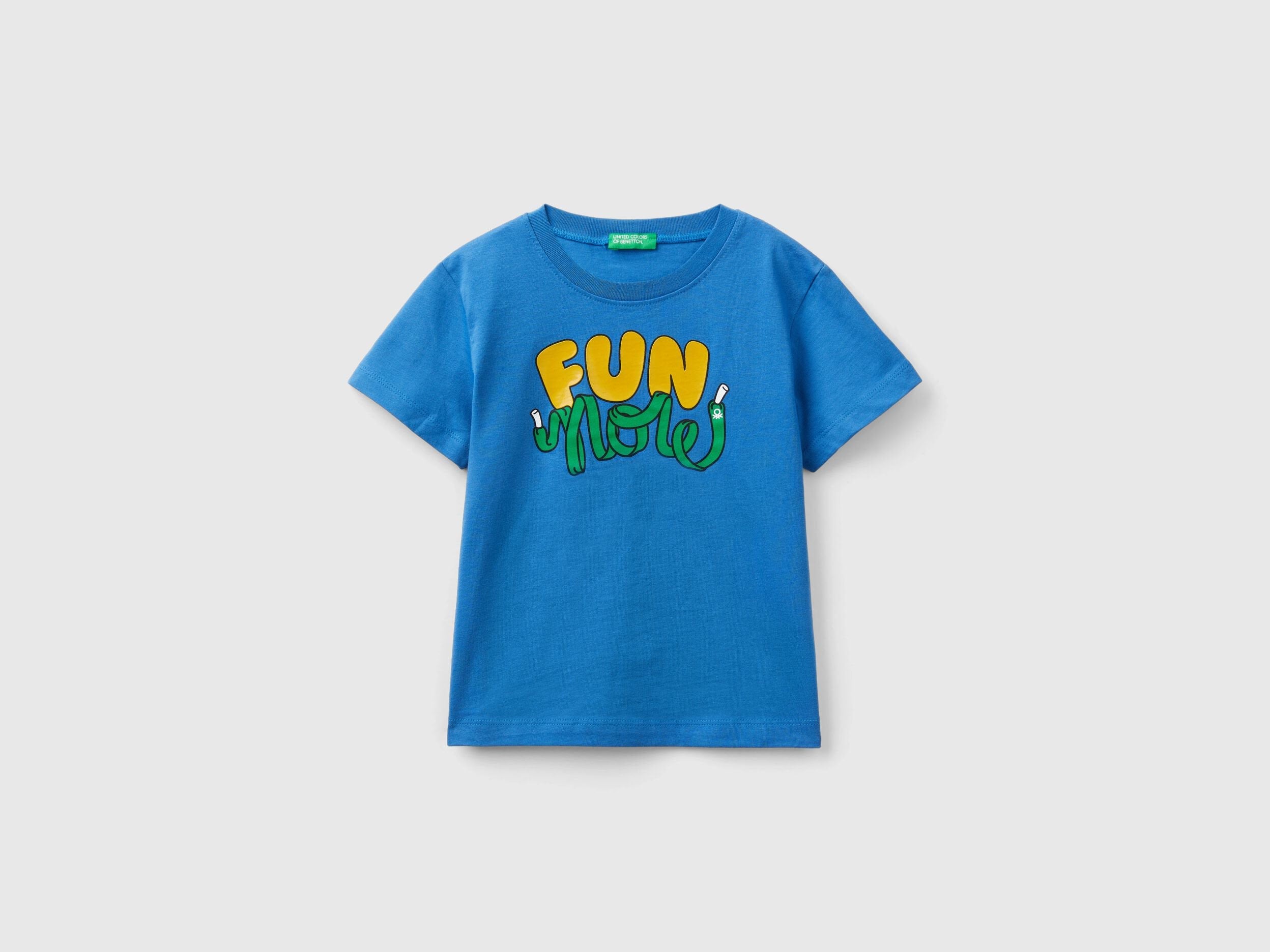 Short sleeve crew neck t-shirt in pure cotton. Embossed glossy print graphics on the front. For everyday and trendy outfits.