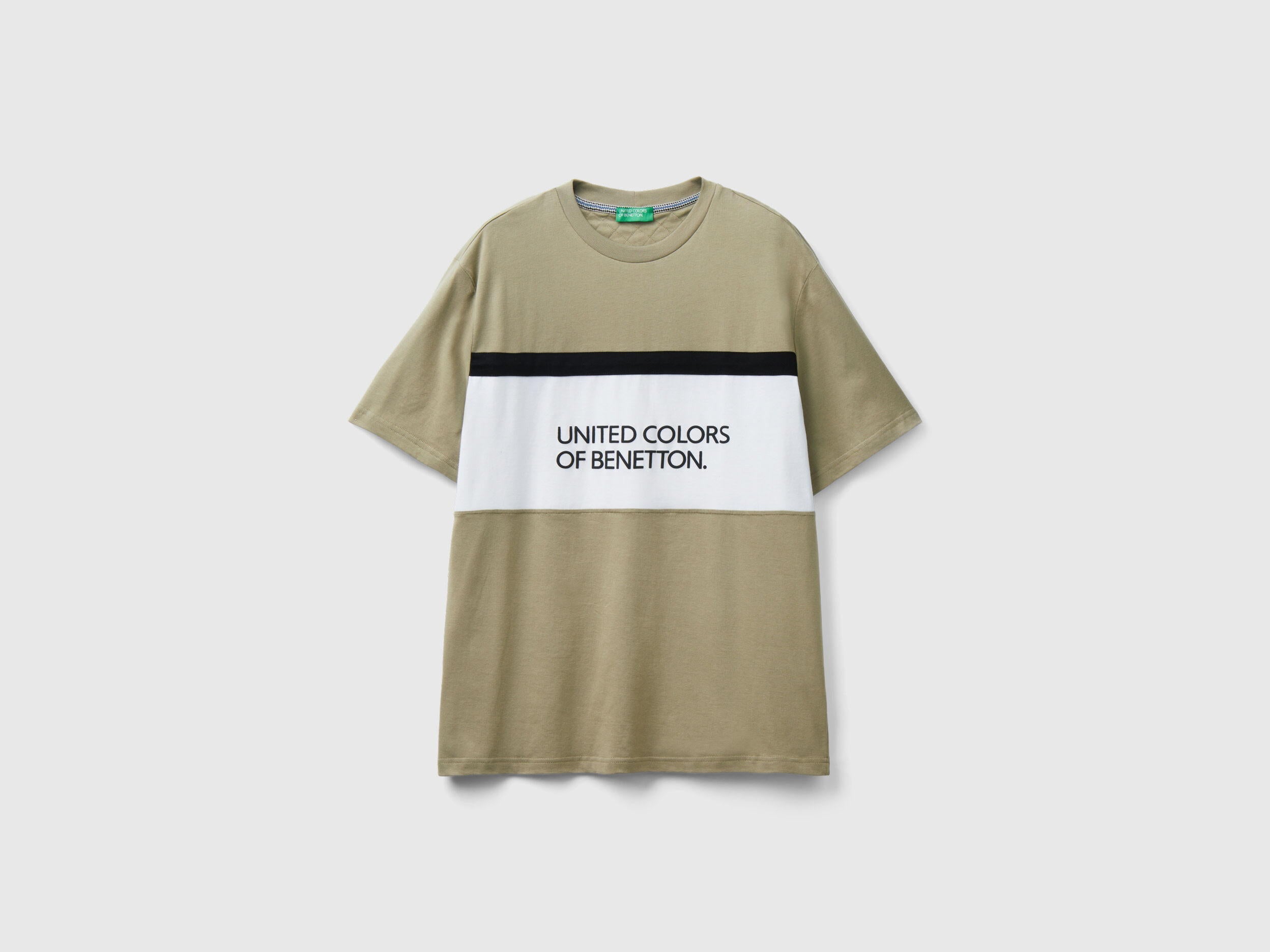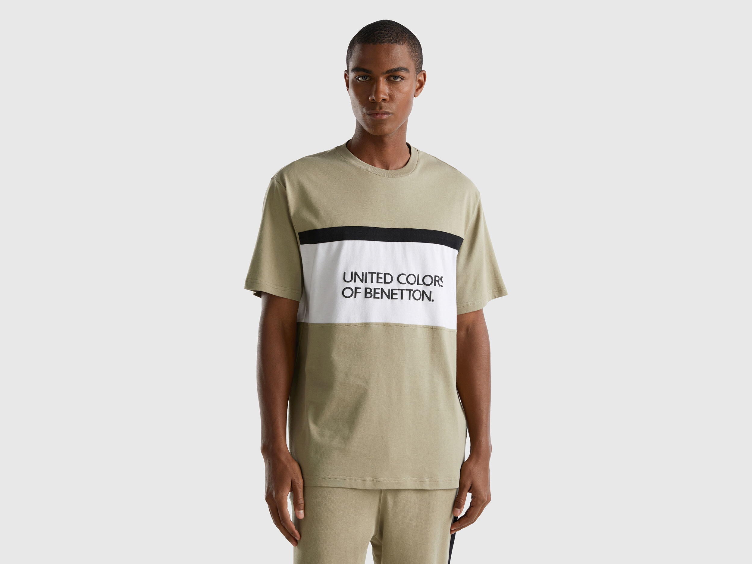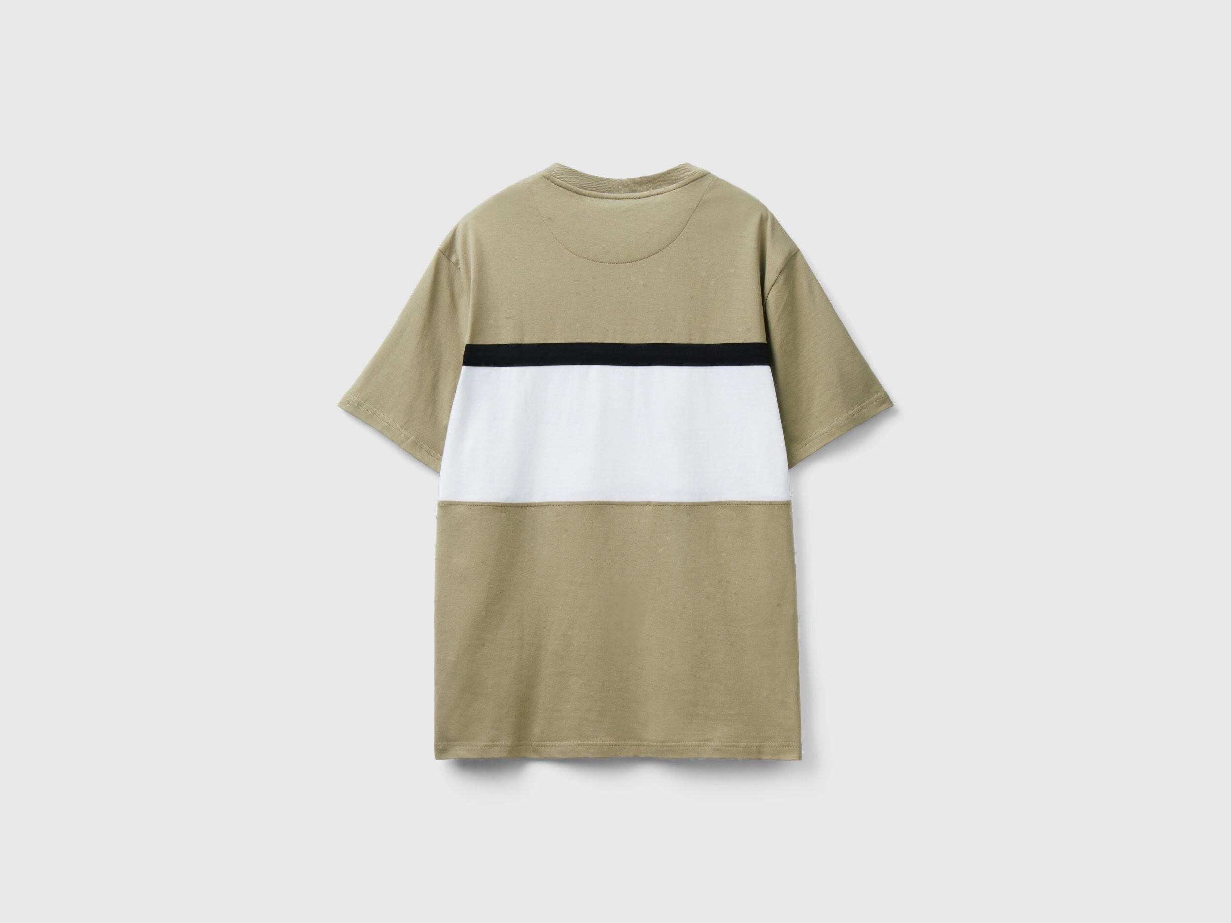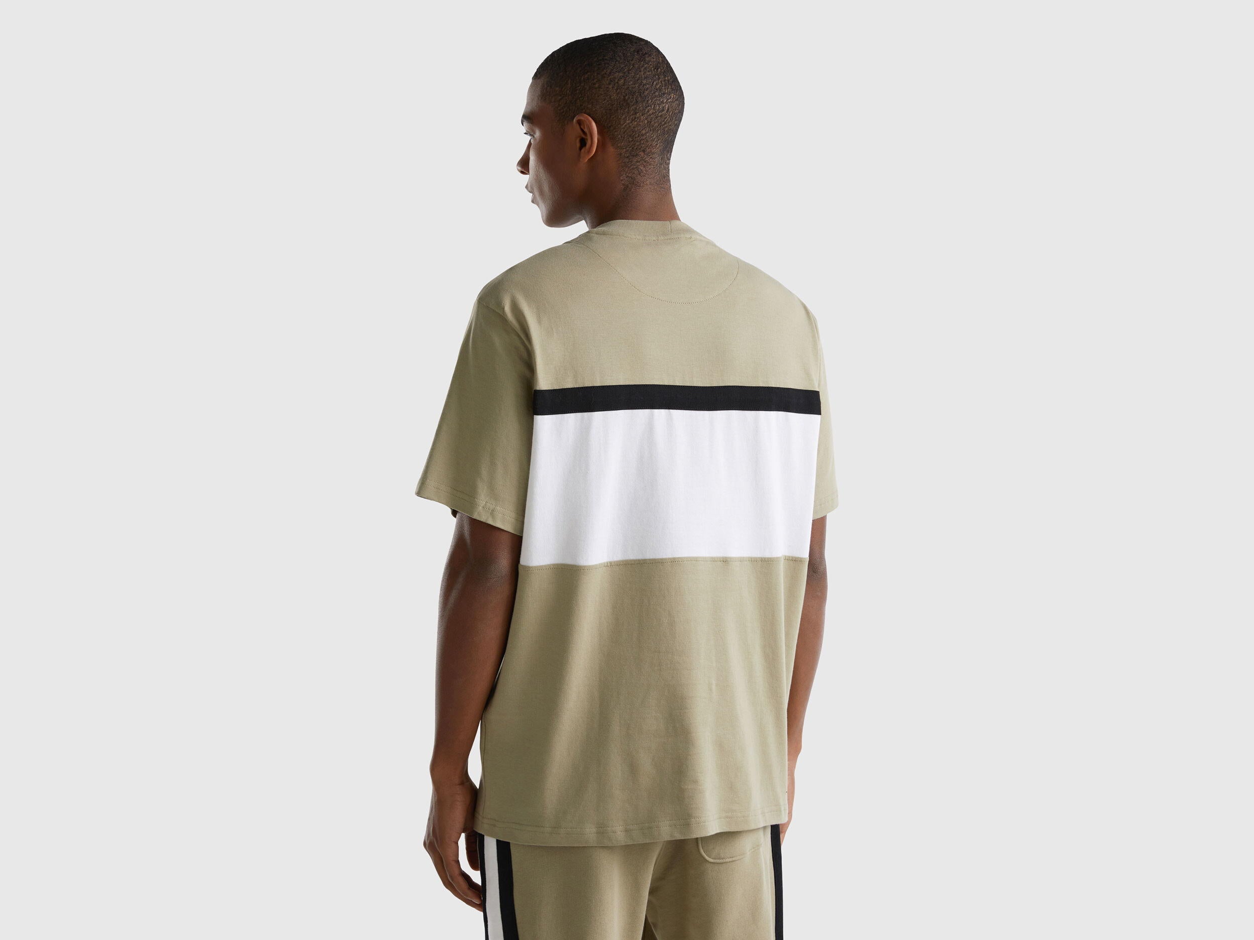 Short sleeve crew neck t-shirt in pure cotton. Color block design with thinner clashing band and central stripe with logo printed on the front. Relaxed fit, iconic style and maximum comfort.