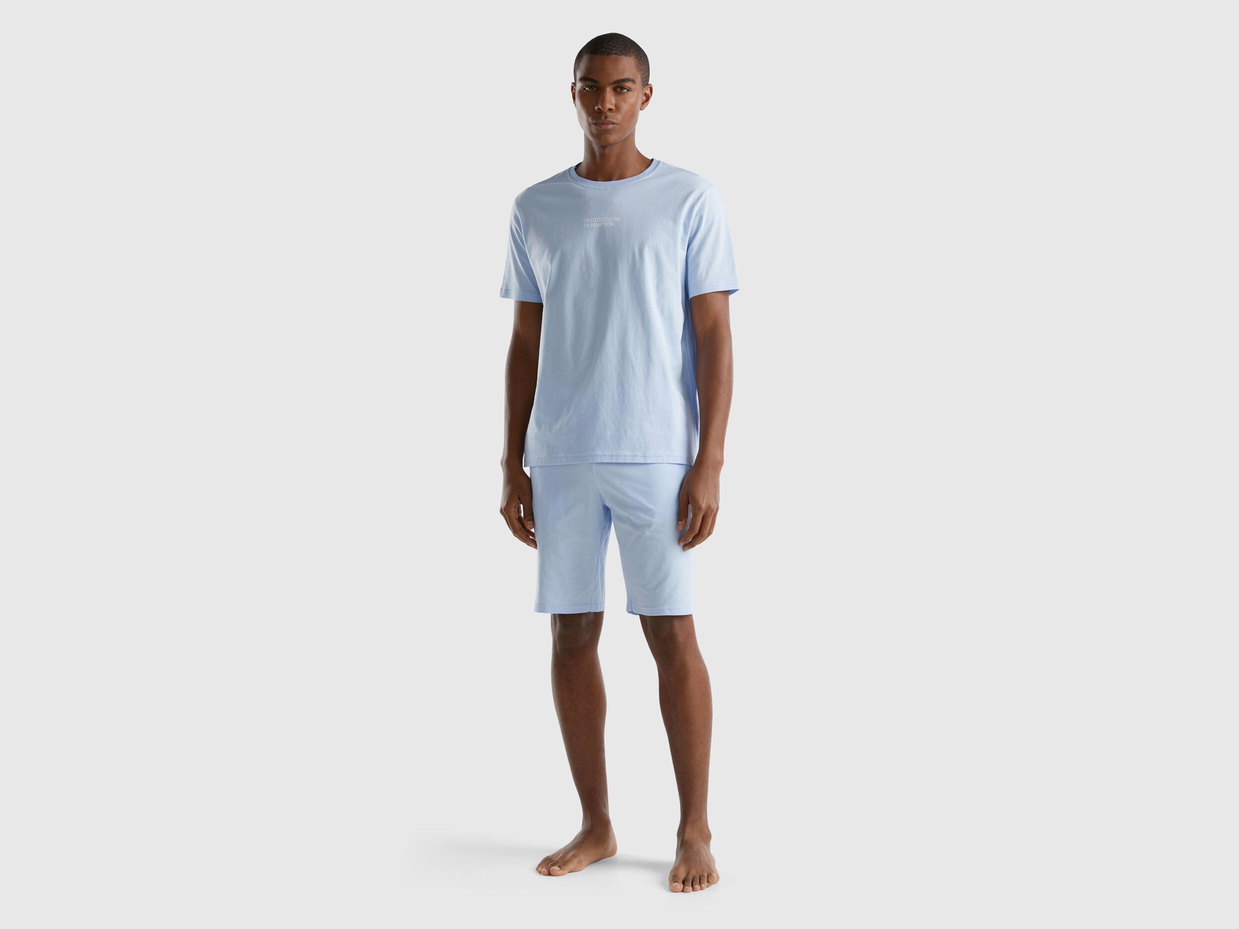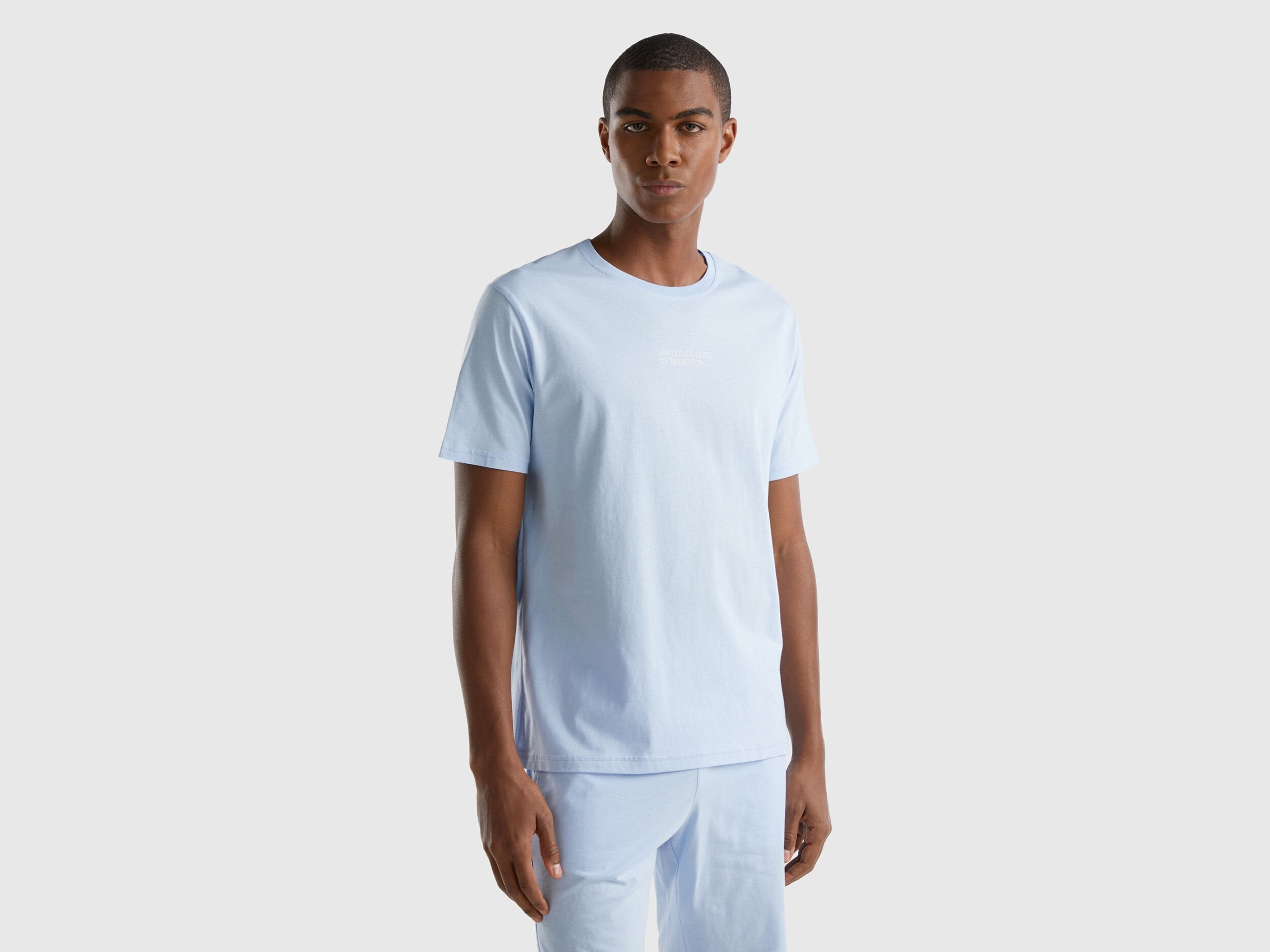 Pure cotton crew neck pyjama t-shirt. Short sleeves and logo print on the front center.
