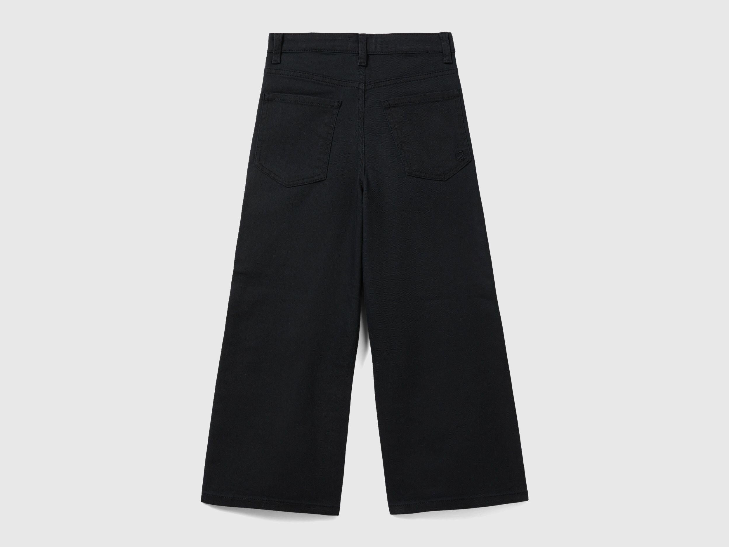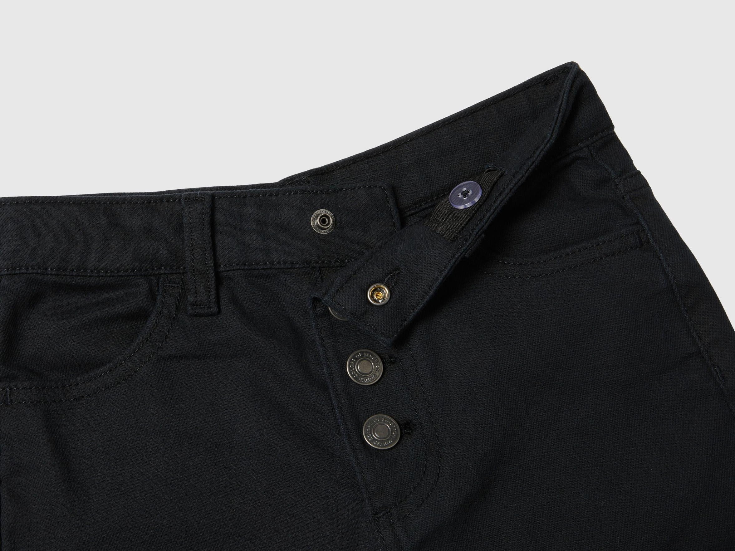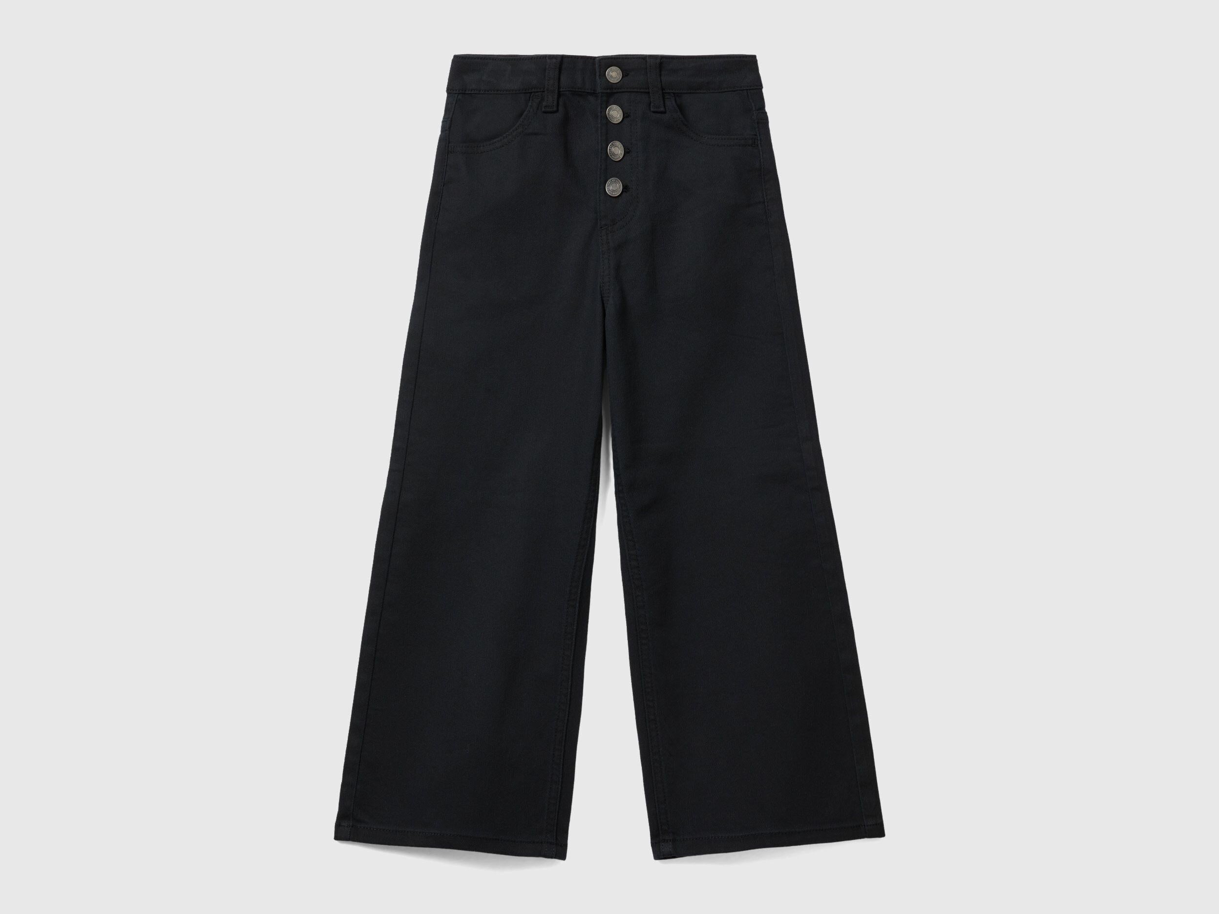 High-waisted four-pocket long trousers in stretch cotton. Wide and soft leg, button opening, adjustable internal elastic waist. Feminine and versatile.