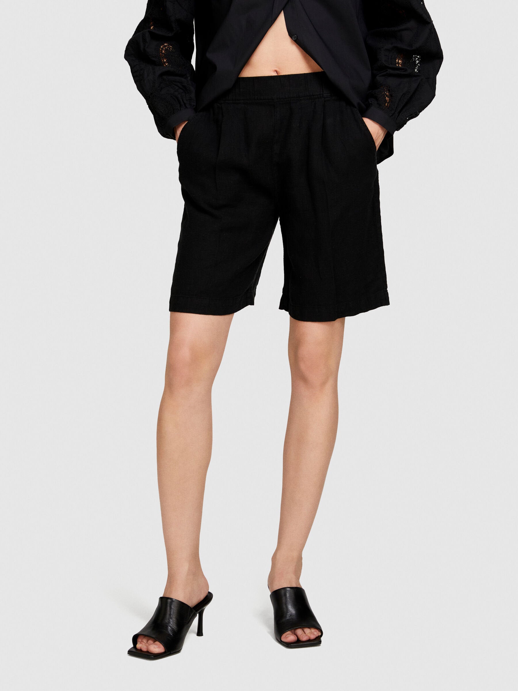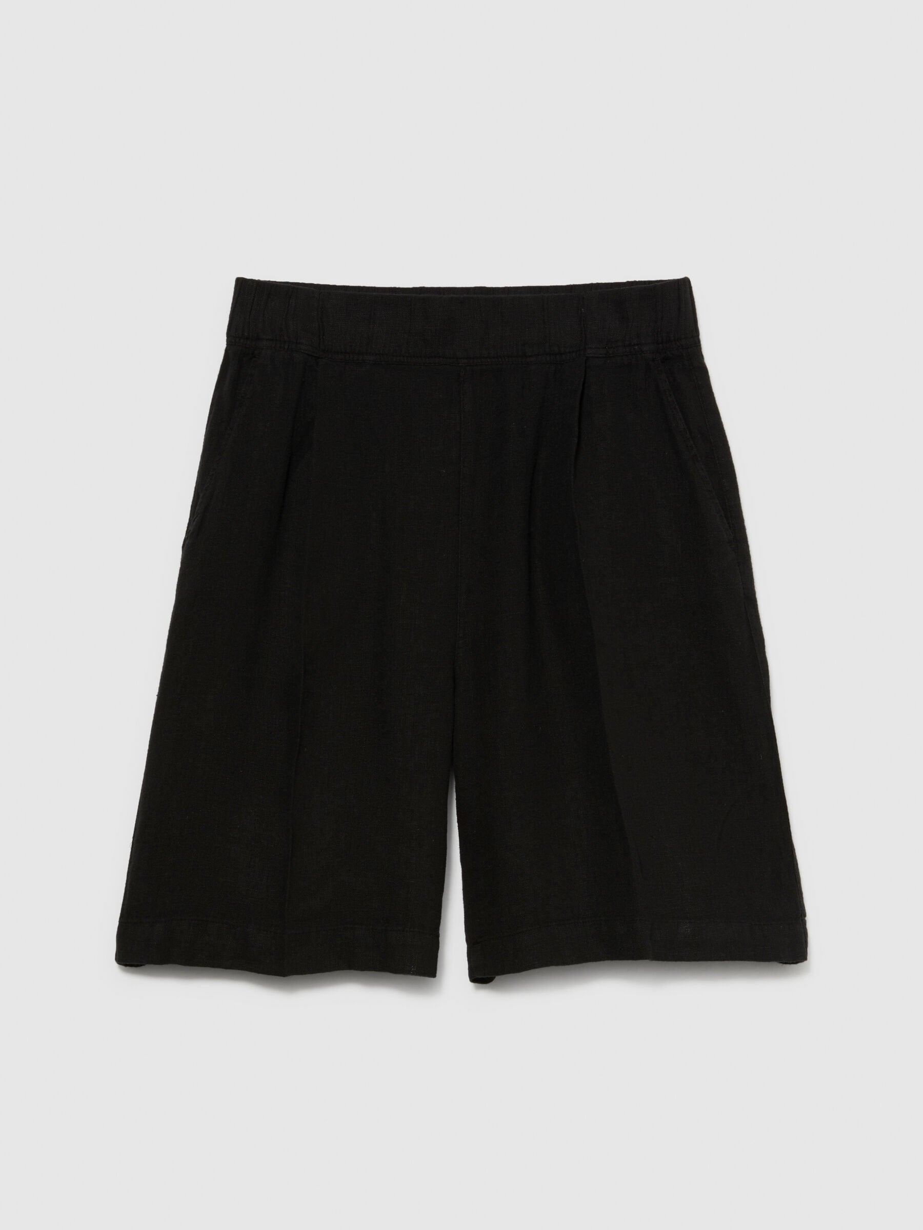 Bermudas in 100% linen, with ironed crease along the leg, elastic waist and two pockets at the sides.