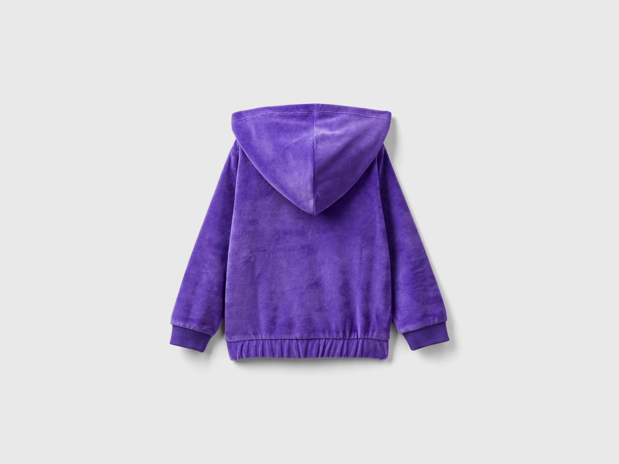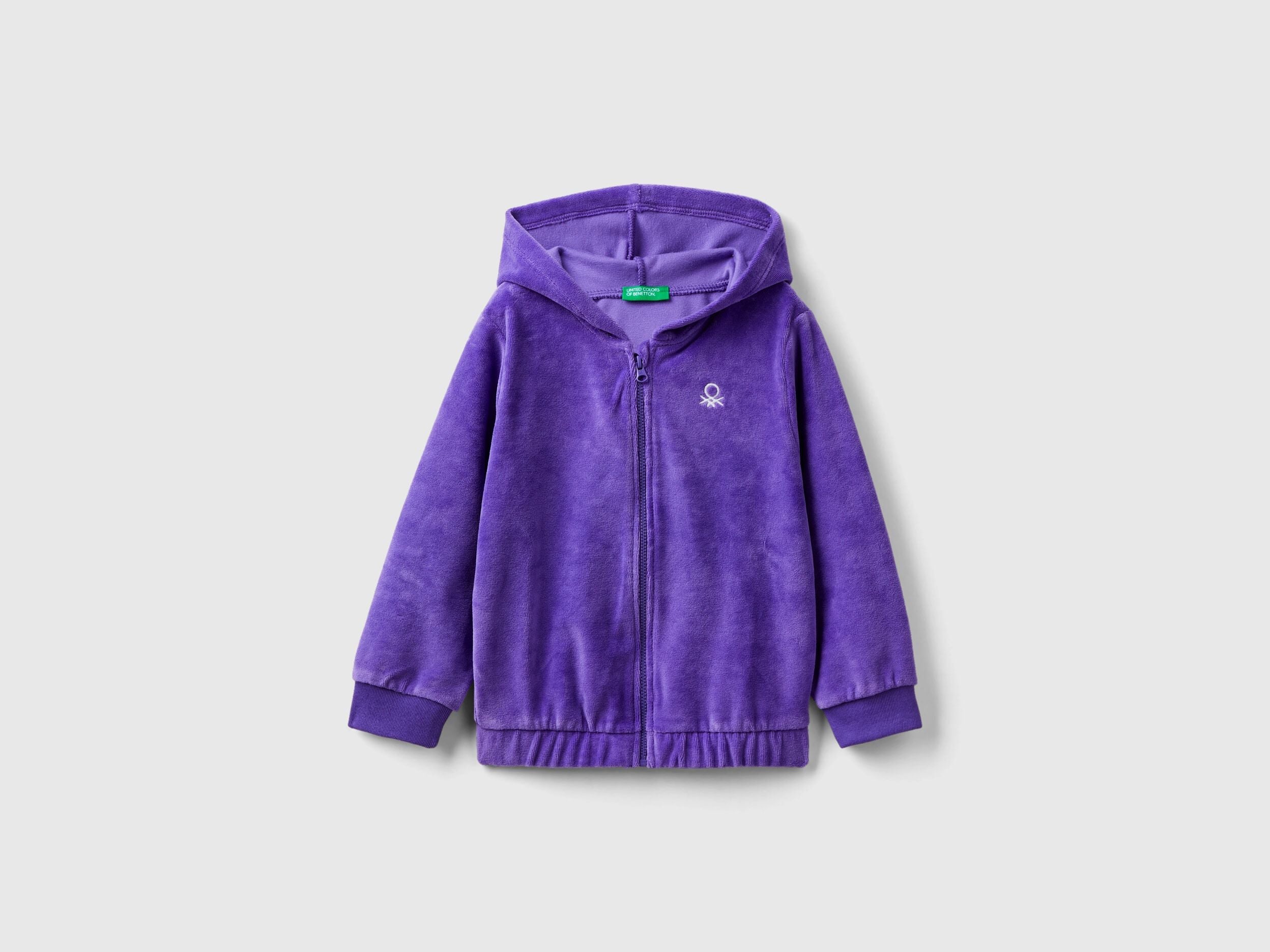 Sweatshirt with hood in soft cotton blend chenille. Long sleeves, opening with zip and clashing logo embroidered at left breast. Regular fit and stretch bottom. Convenient and comfortable, for a contemporary sporty look.