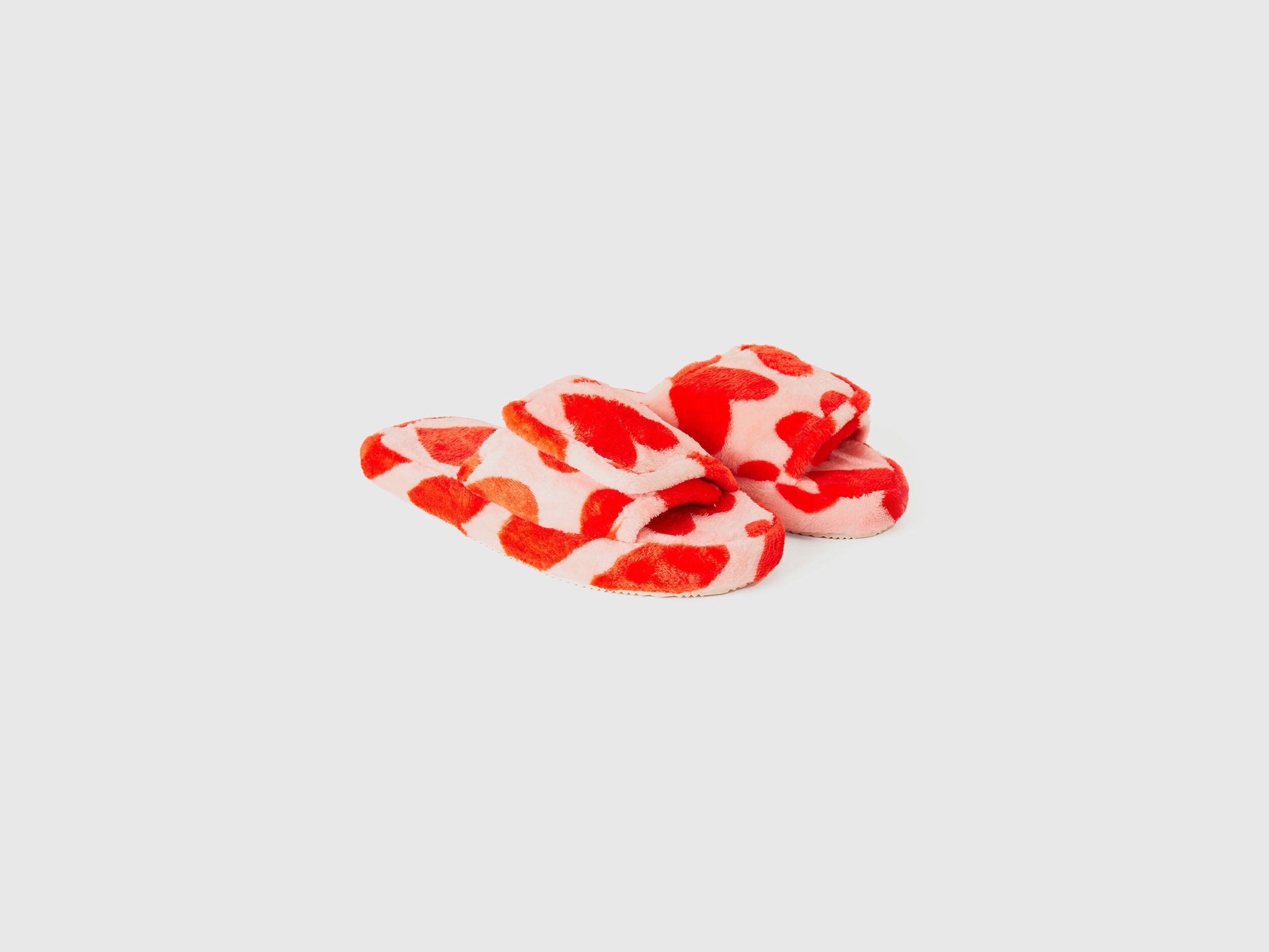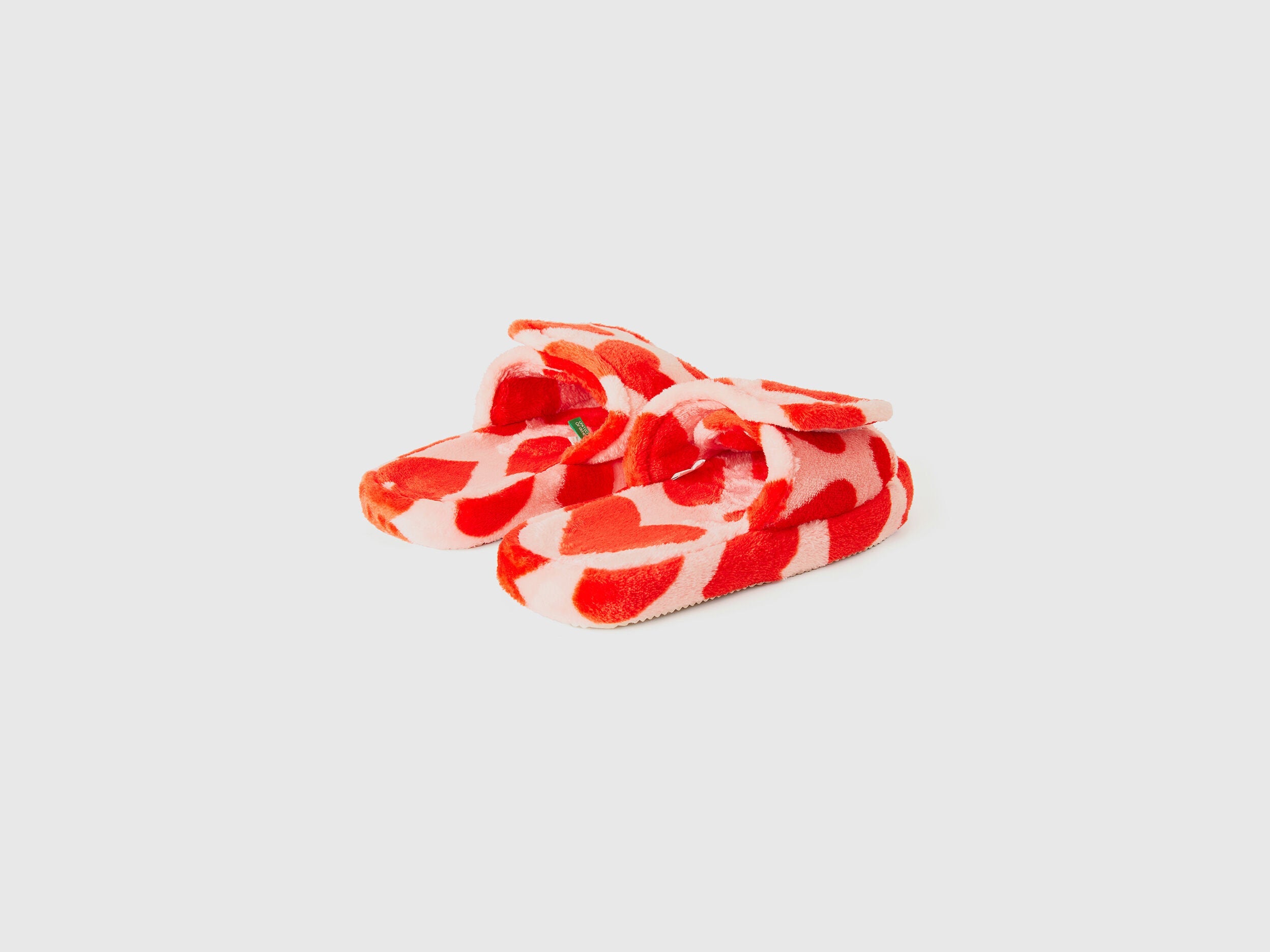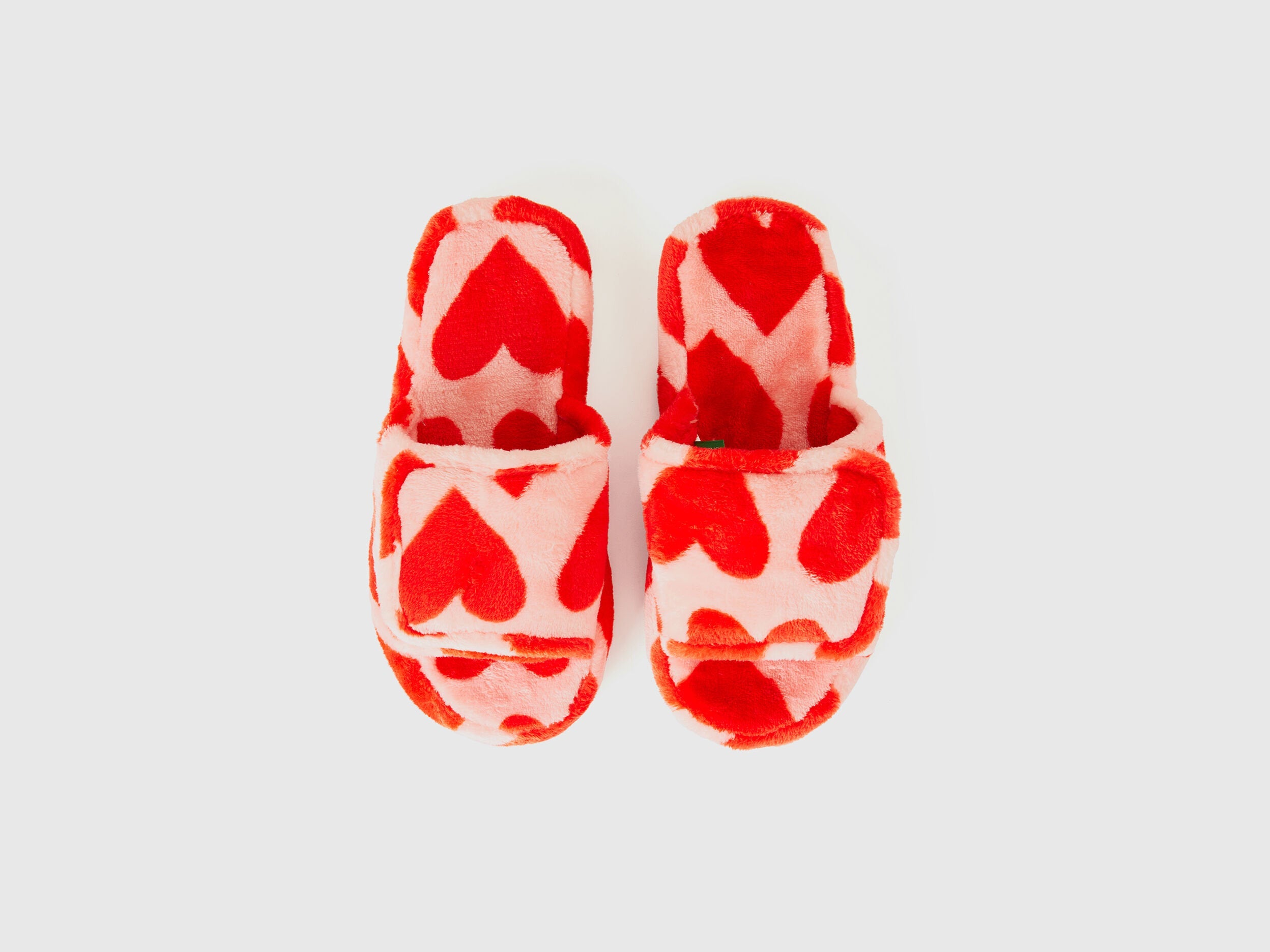 Soft open-toe slippers in faux fur with a tartan pattern. Adjustable upper with band in Velcro.