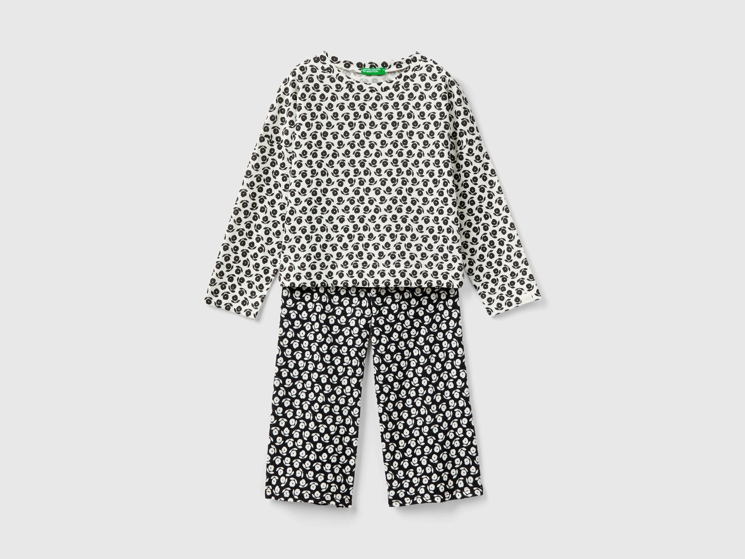 Pure cotton pyjamas with a warm feel and floral pattern all over. Boxy fit long sleeve crew neck top. Long bottoms with practical elastic waistband and patch pockets on the sides.