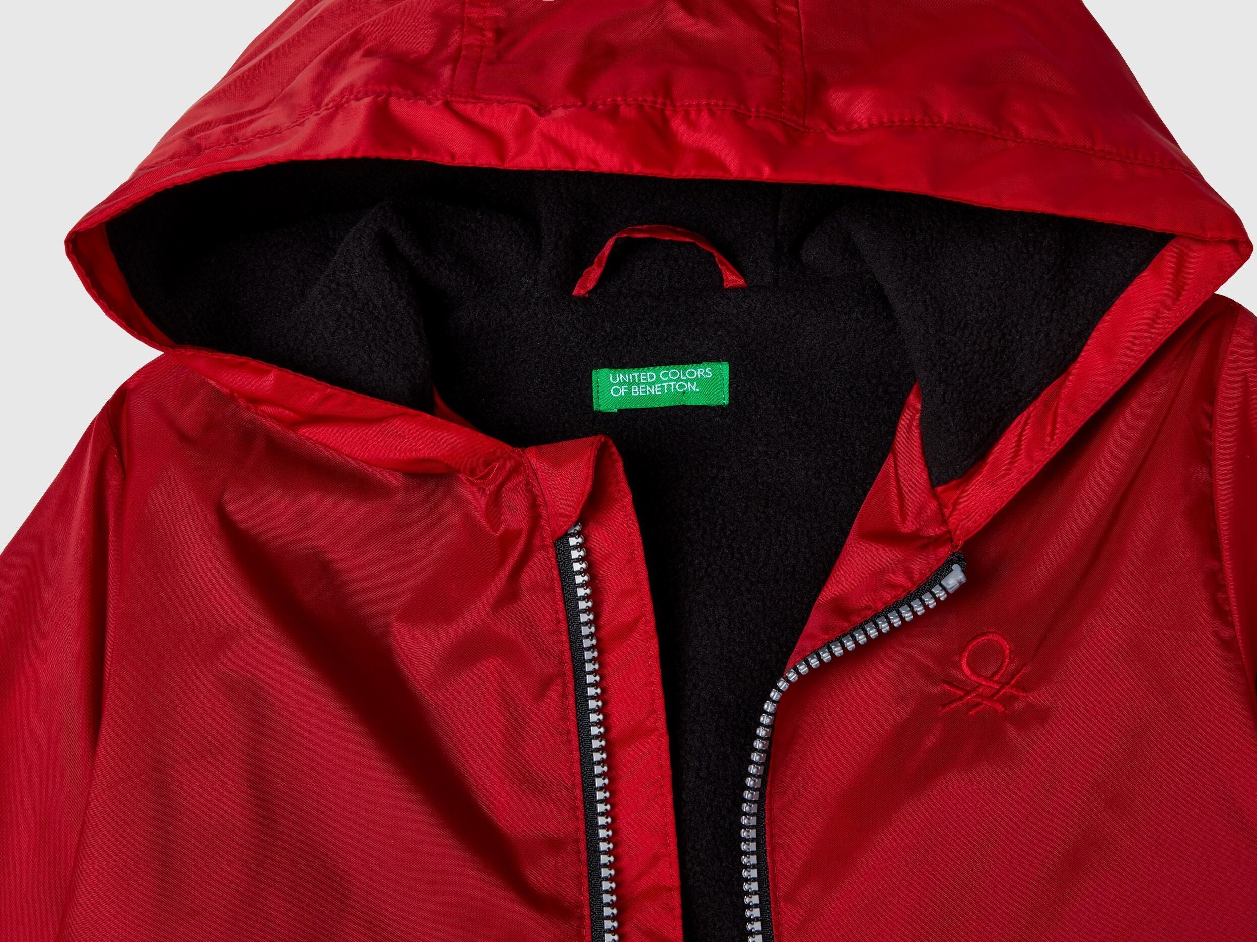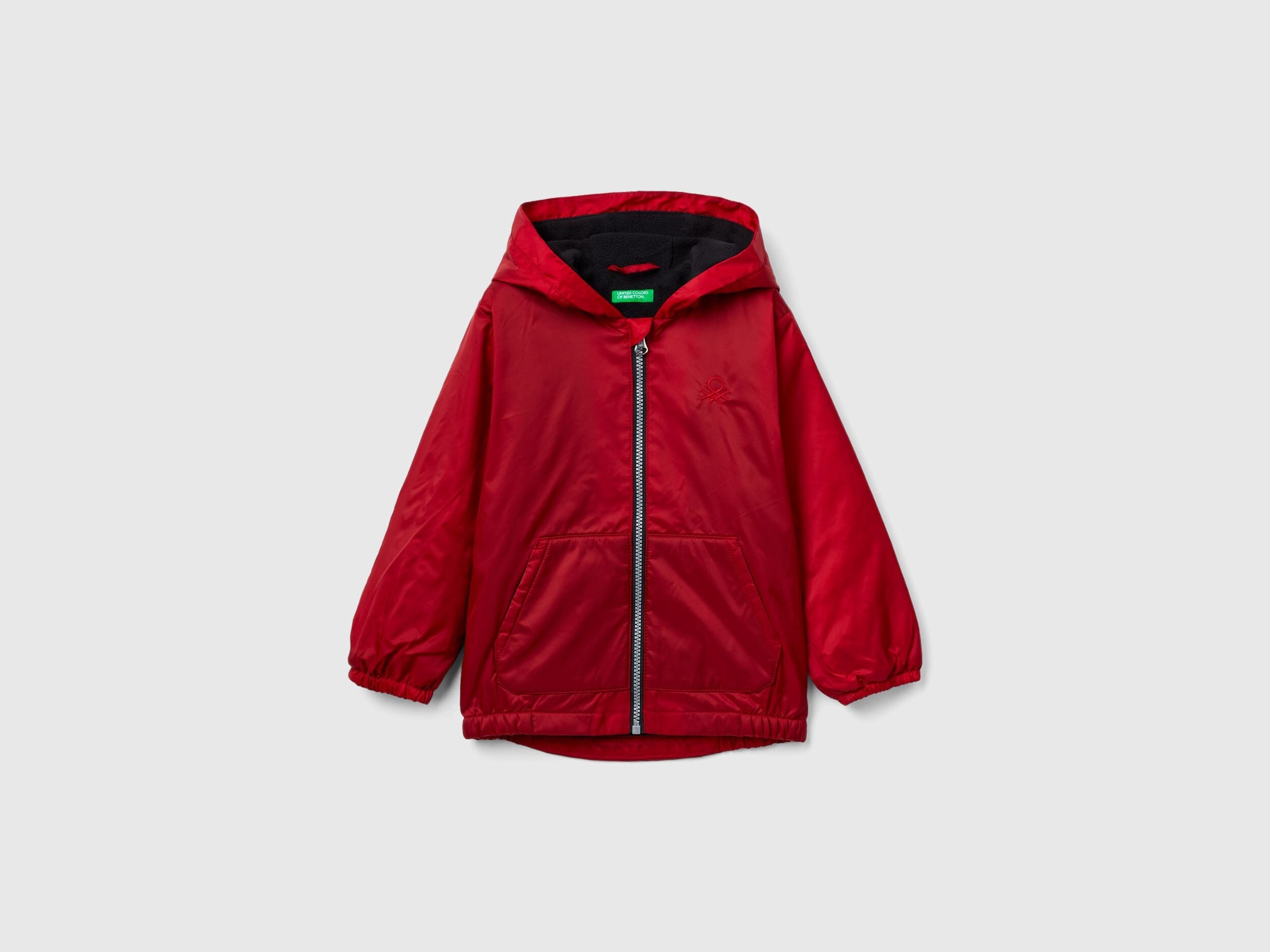 Jacket in "Rain Defender" nylon with light padding, hood and body lined in soft fleece. Opening with zip and safety zip guard, front patch pockets, small embroidered logo at the left breast. Maximum comfort thanks to the oversized fit.