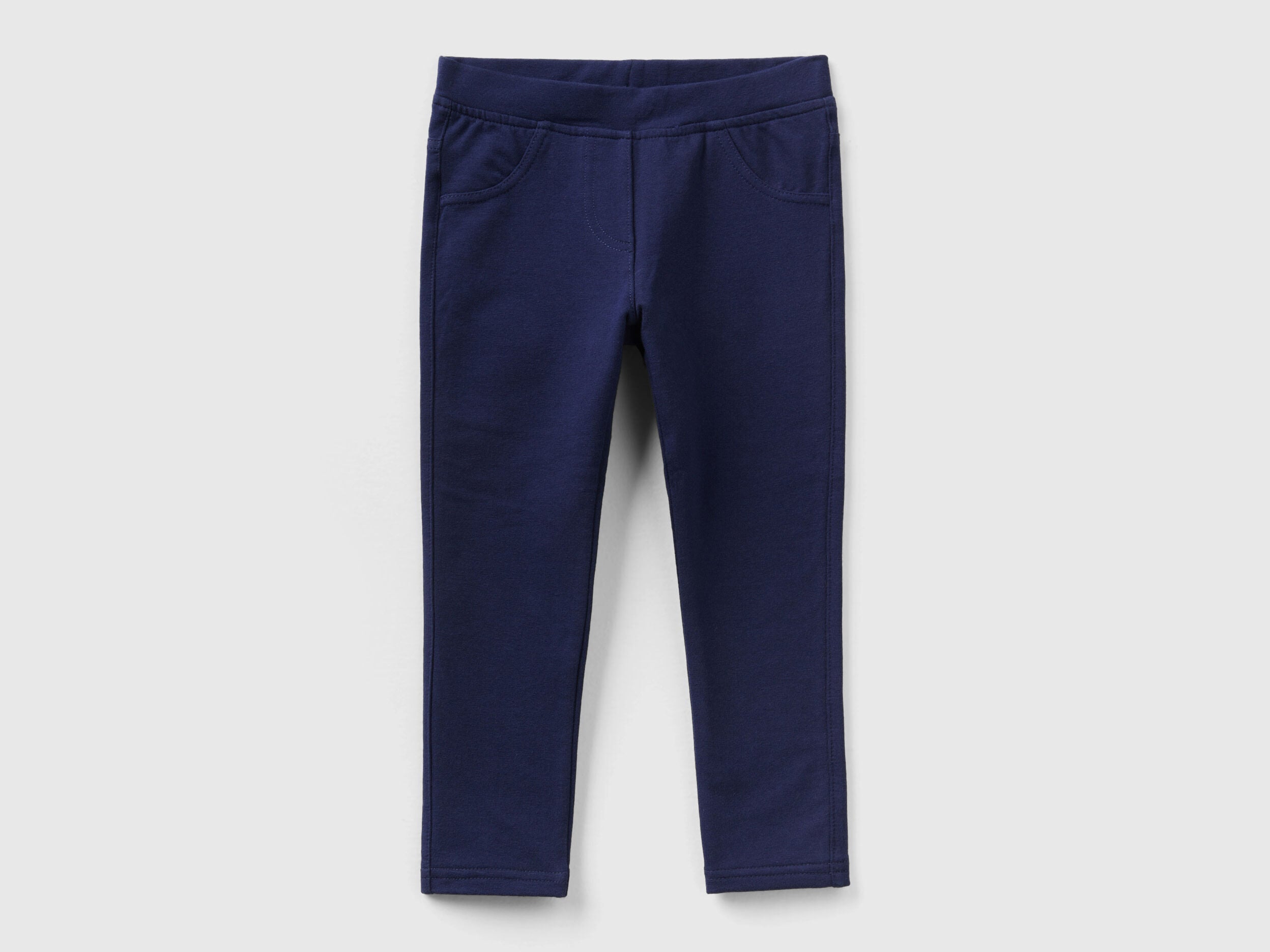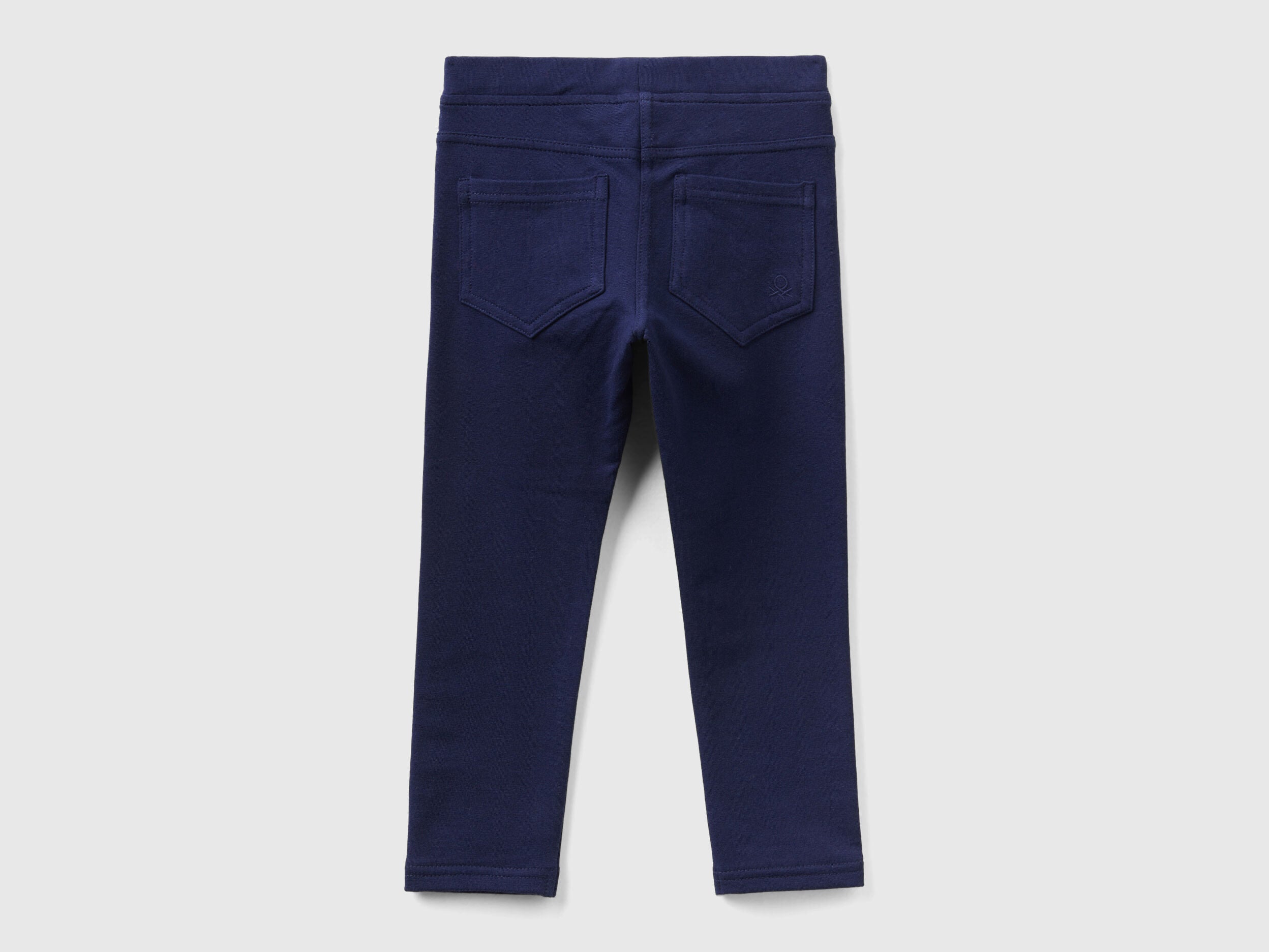Long jegging-fit trousers in stretch organic cotton sweat. Mock flap and mock pockets on front. Logo applied on a small back pocket. Easy to put on thanks to the inner elastic waistband.