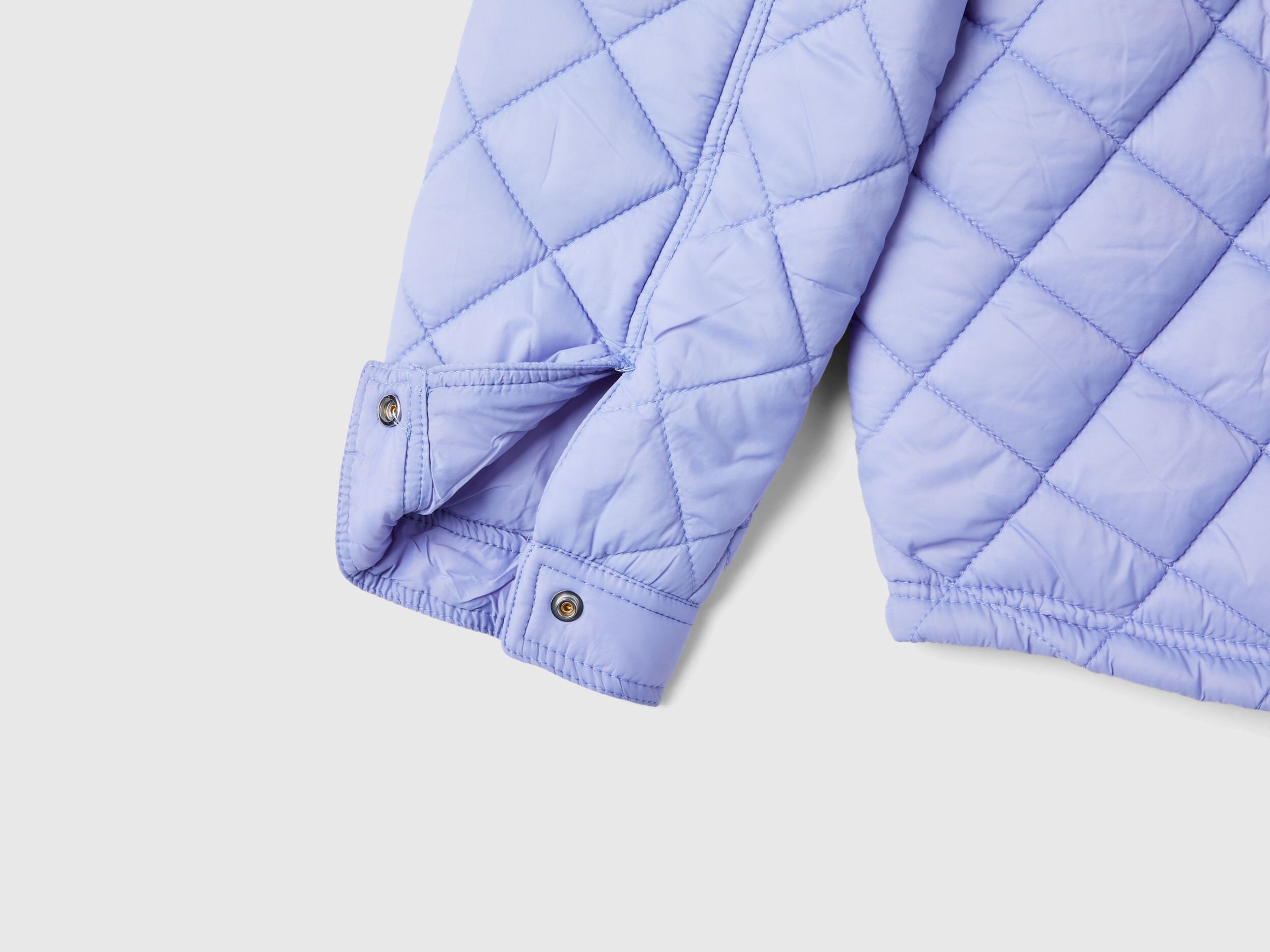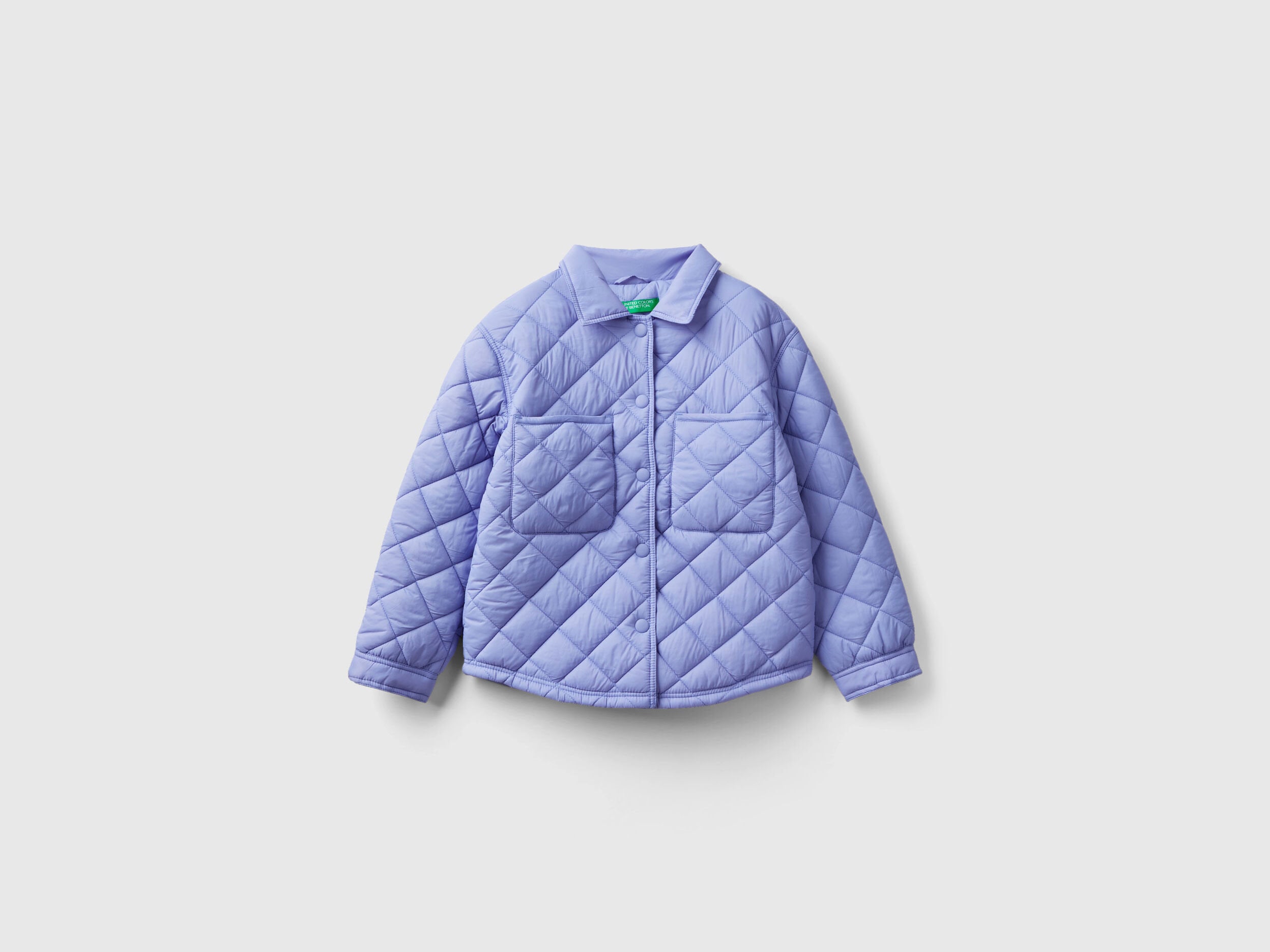 Nylon jacket with diamond quilting and light padding. Shirt collar, front opening with snap buttons. Patch pockets at breast and embroidered logo on one sleeve. Ideal for mid-season.