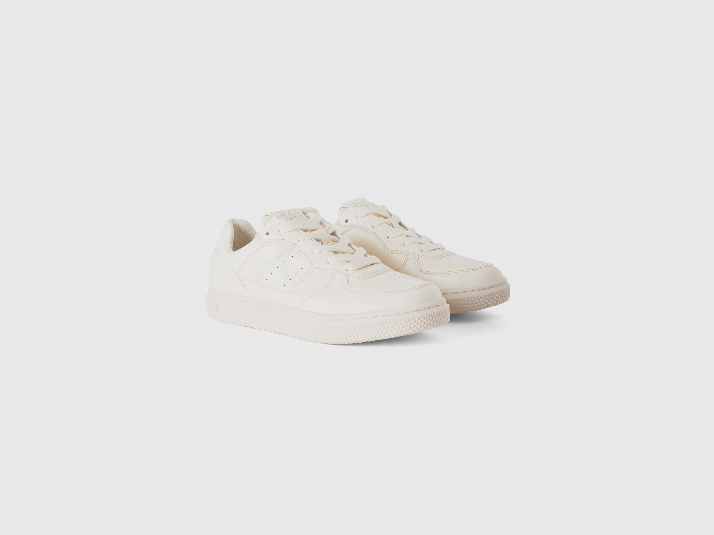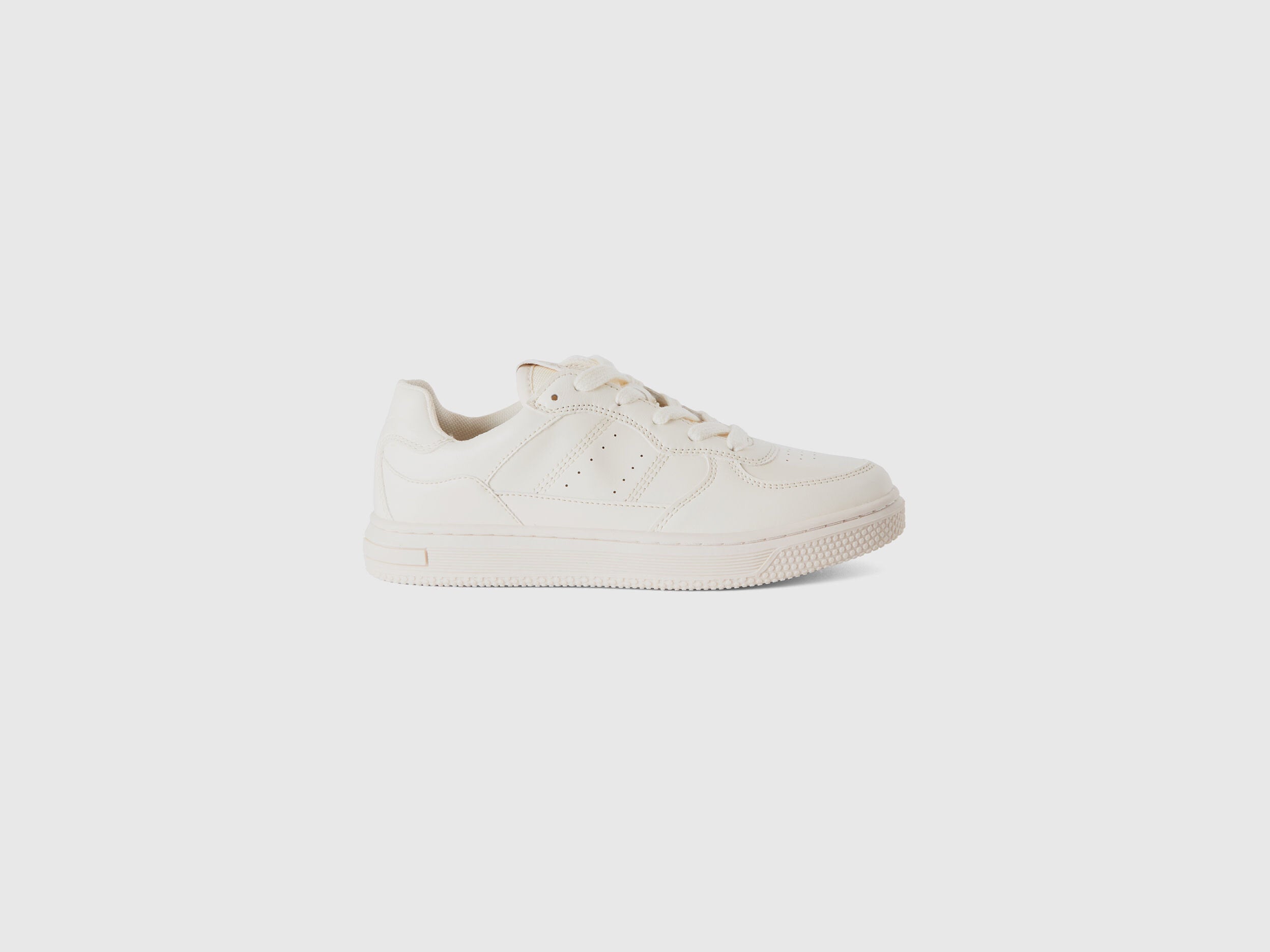 Low-top sports shoes with uppers in imitation leather with decorative holes. Model with laces, soft and flexible sole. Logo embroidered on the heel and tongue. Casual and dynamic style, always trendy.
