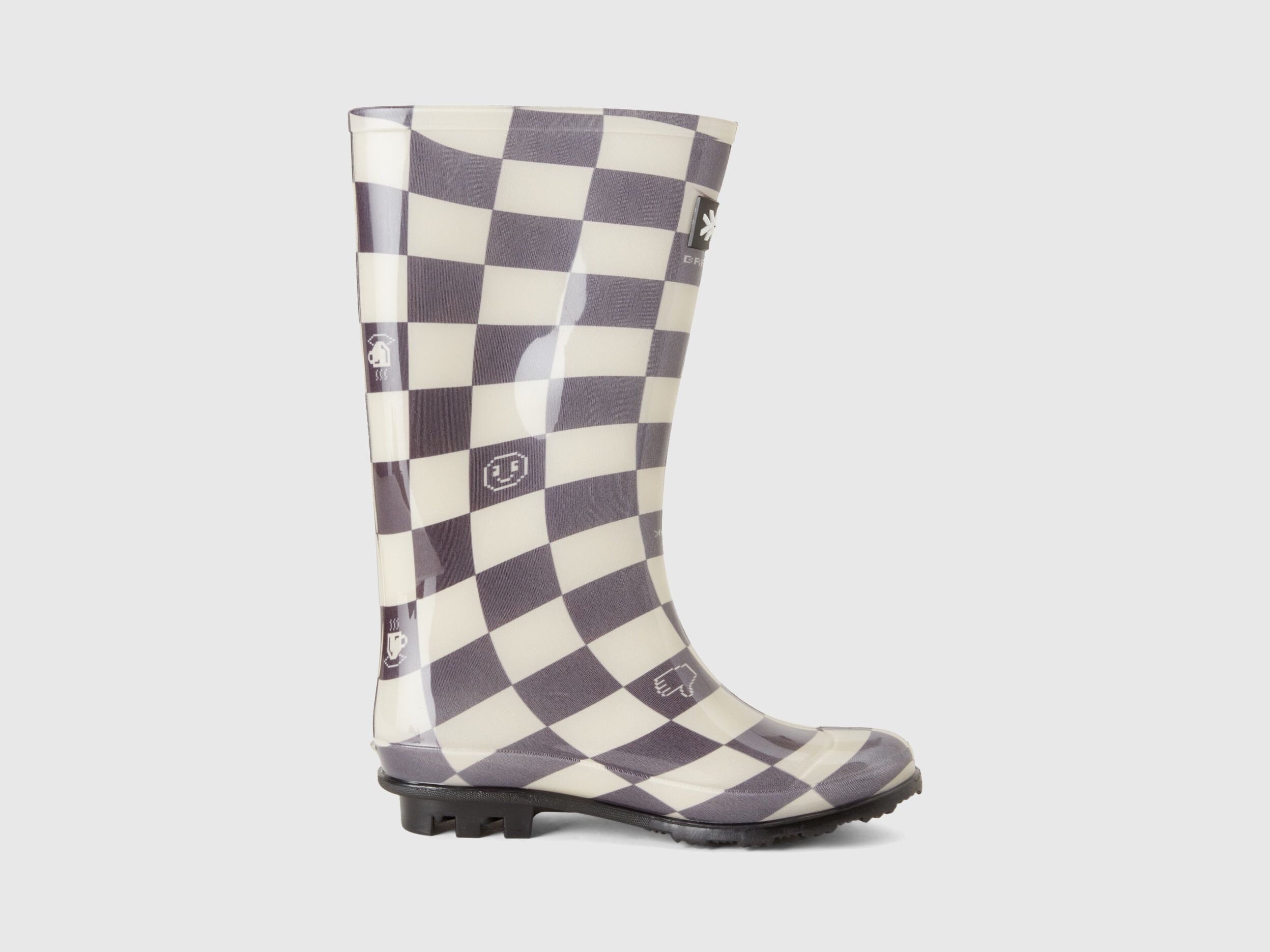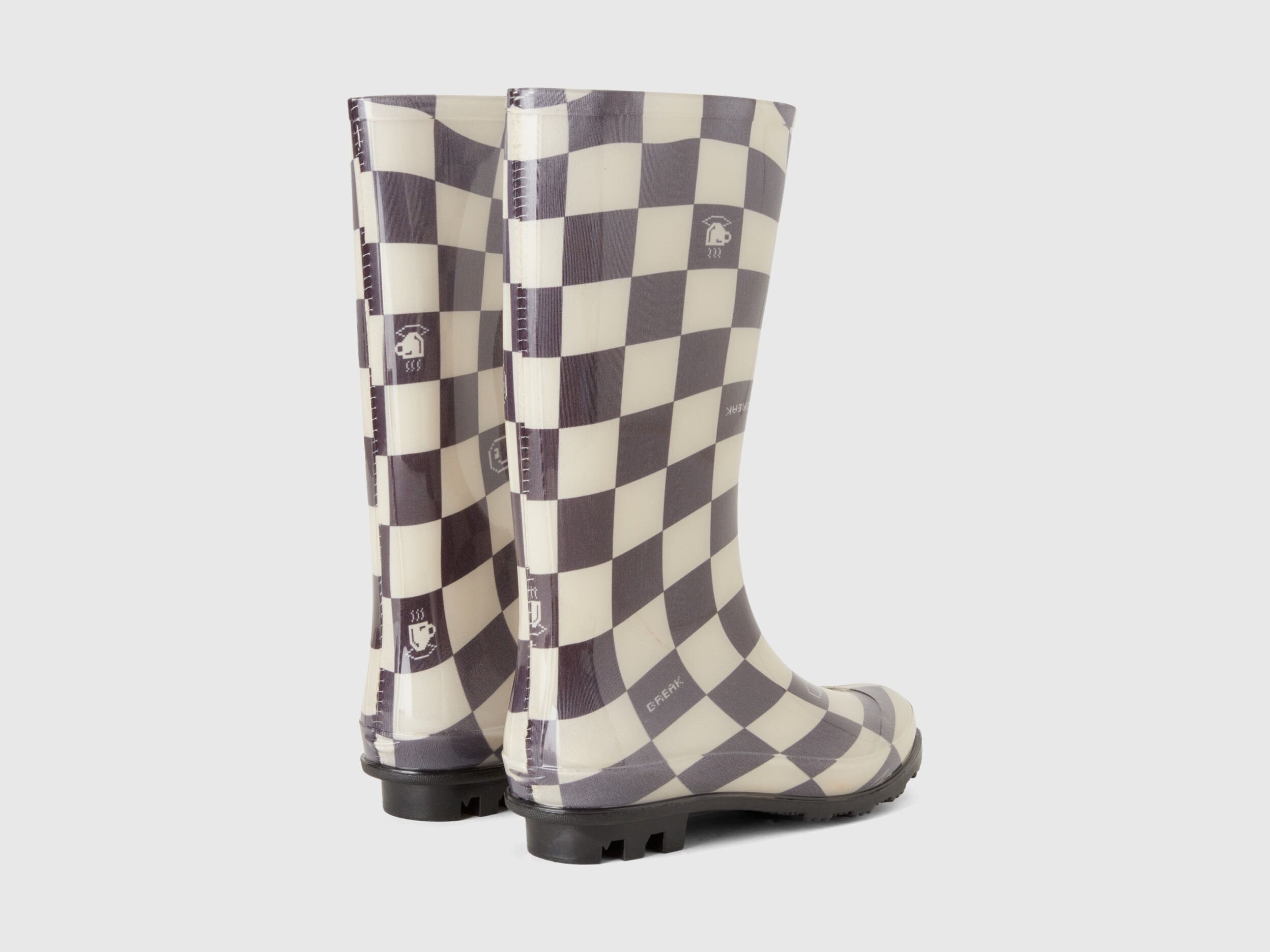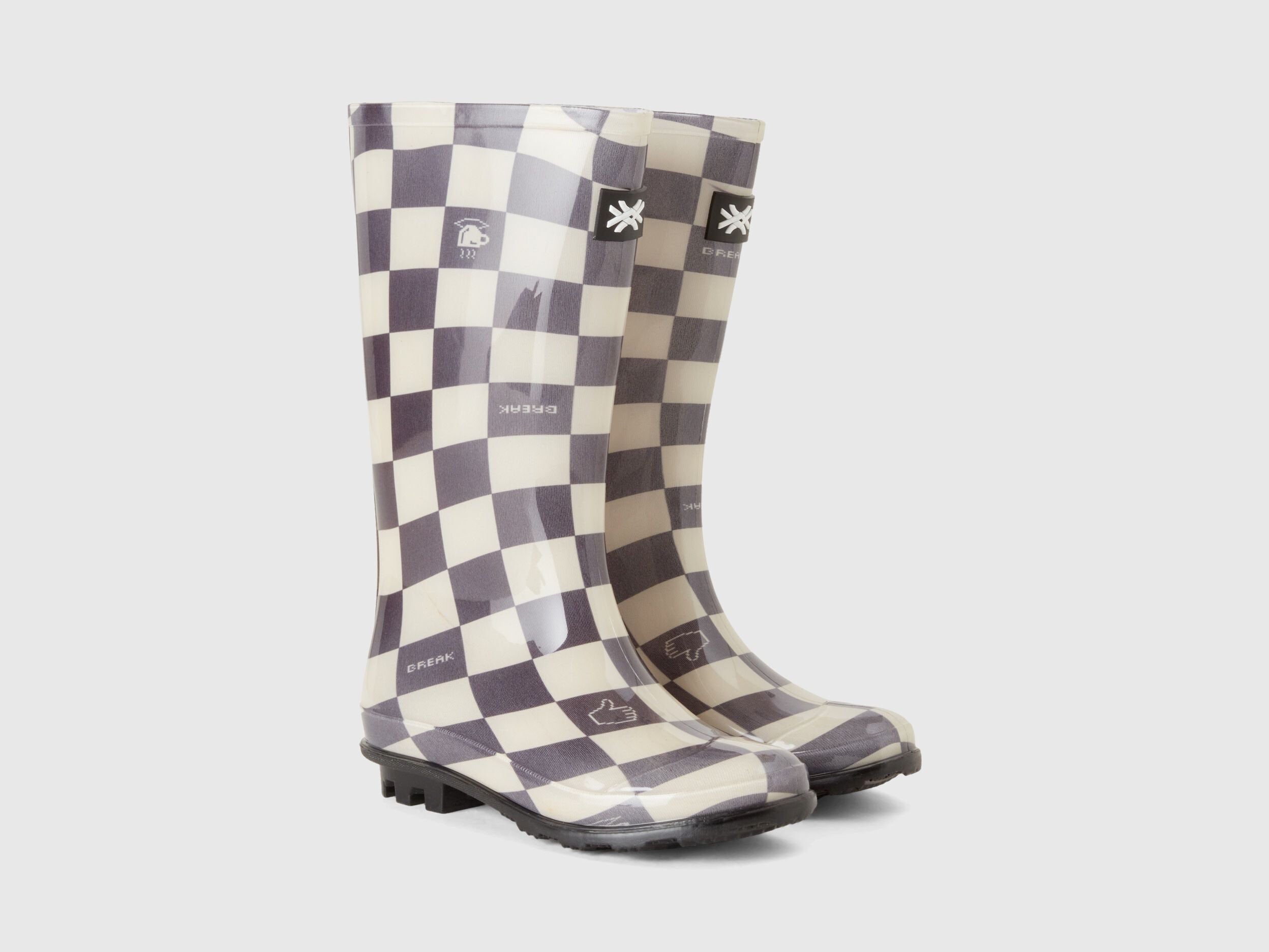 PVC rainboots, flexible, resistant and rain-repellent material. Equipped with comfy inner lining with patterned print and front logo applique. For even making rainy days fun.