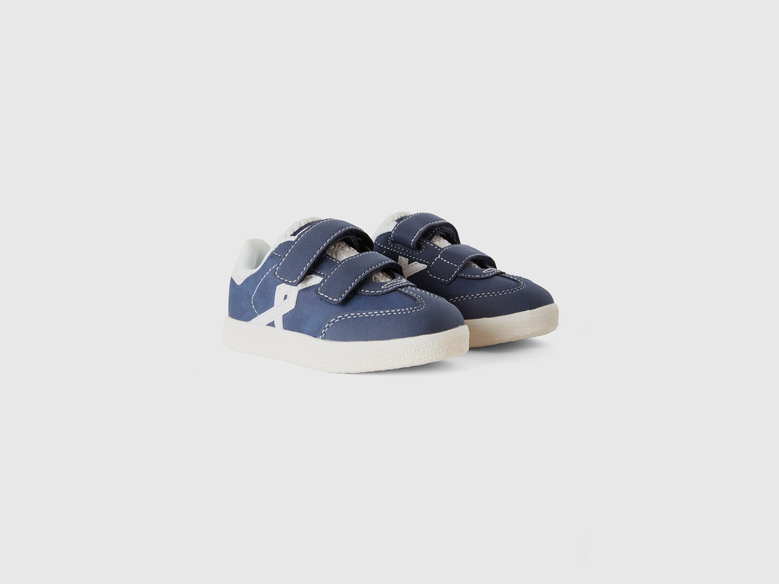 Low-top sneakers with suede-effect imitation leather uppers. Convenient four-strap closure with velcro, logo patch applied on the side and logo on the heel. Perfect for running and playing.
