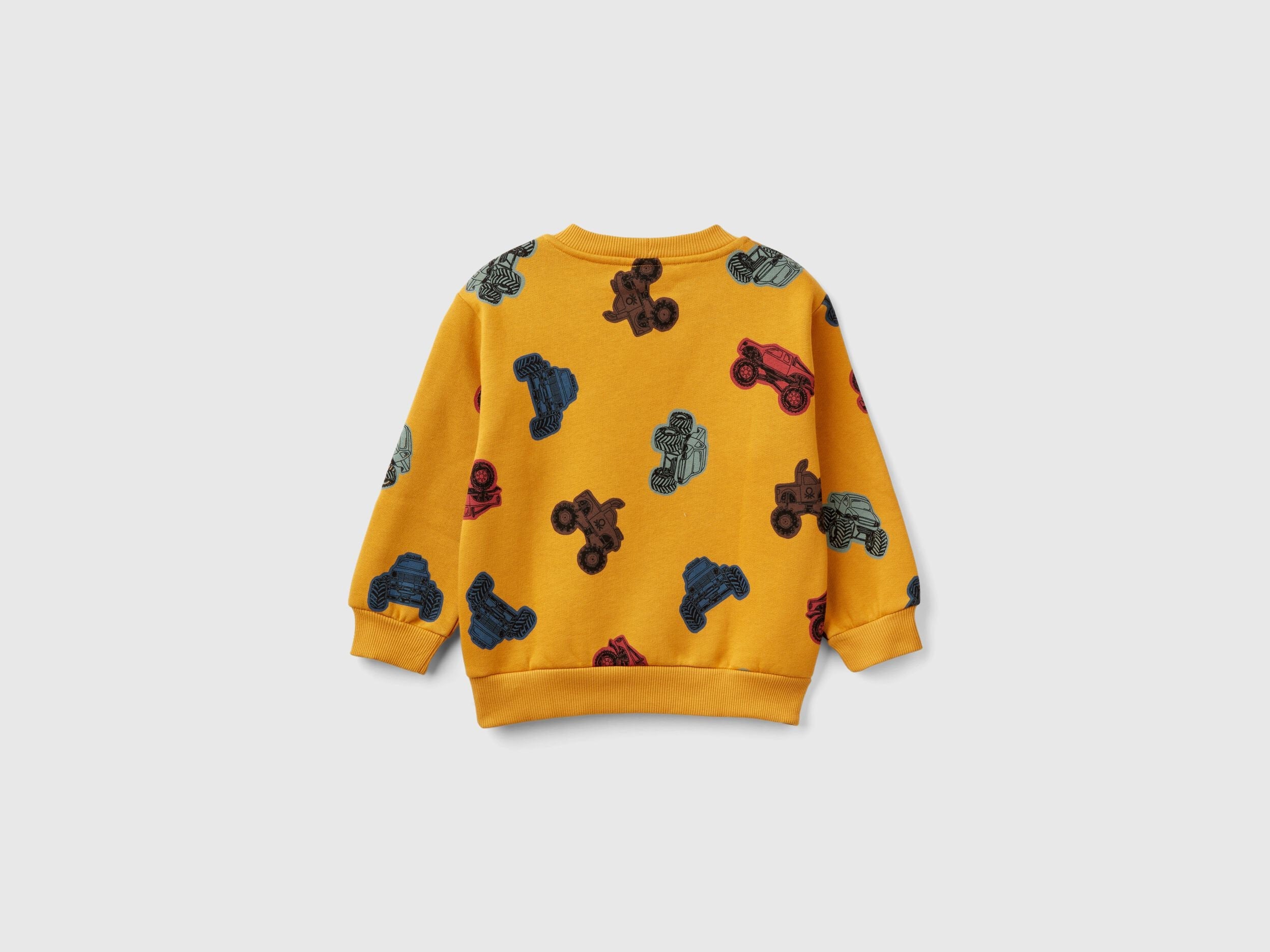 Sweatshirt in cotton blend with a warm feel. Round neck and long sleeves. Colorful tractor print all over the garment, for fun and comfortable outfits.