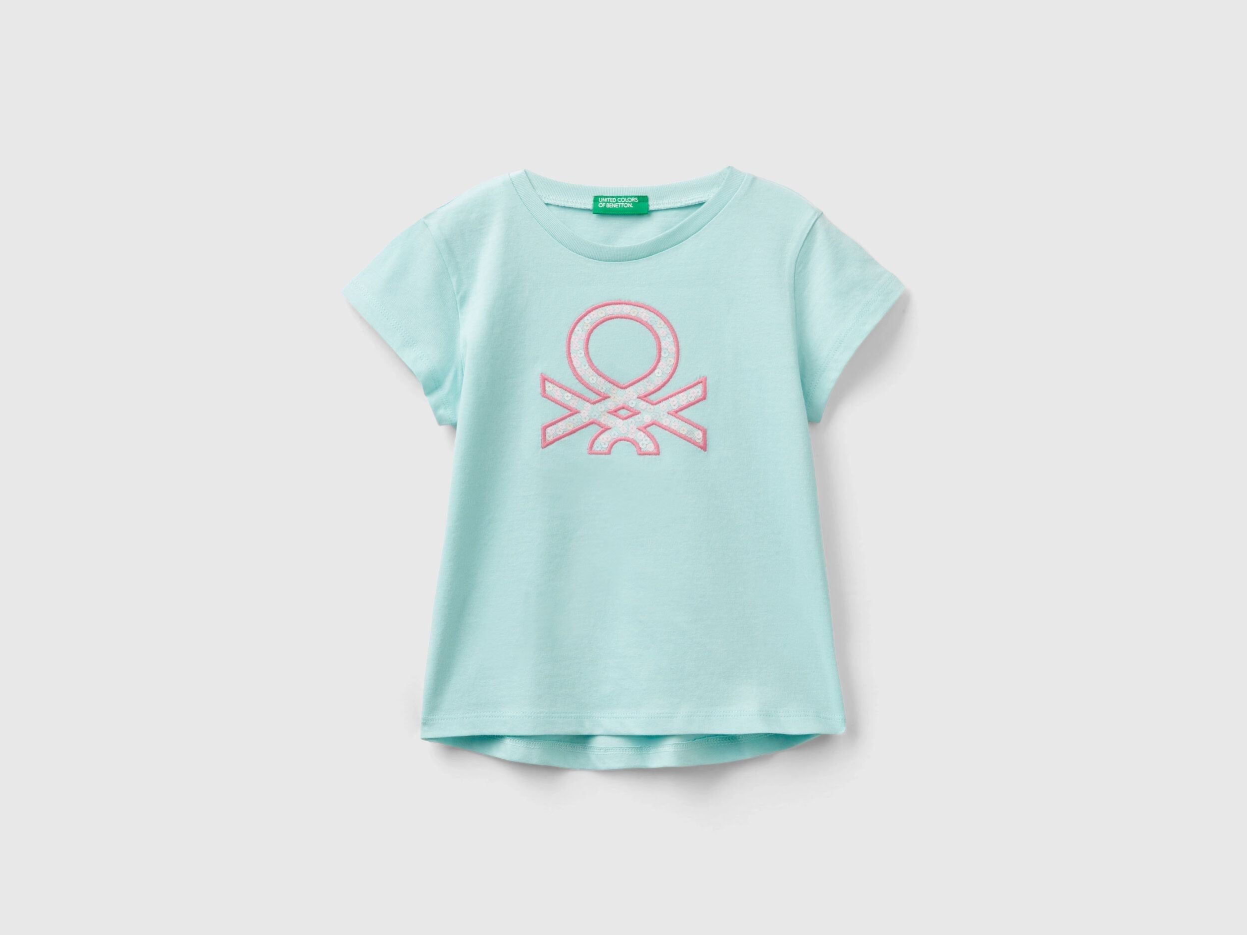 Crew neck short sleeve t-shirt in pure organic cotton. Regular fit, logo graphic embroidered on the front with sequins and tulle. Simple yet sparkling cut.