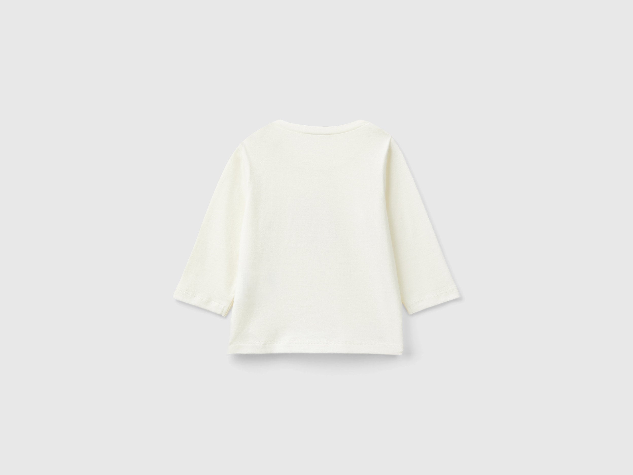 Long sleeve t-shirt in pure warm organic cotton. Round neck, opening with hidden snap buttons on the left shoulder. Print and animal patch on the front. Fun and easy to wear.