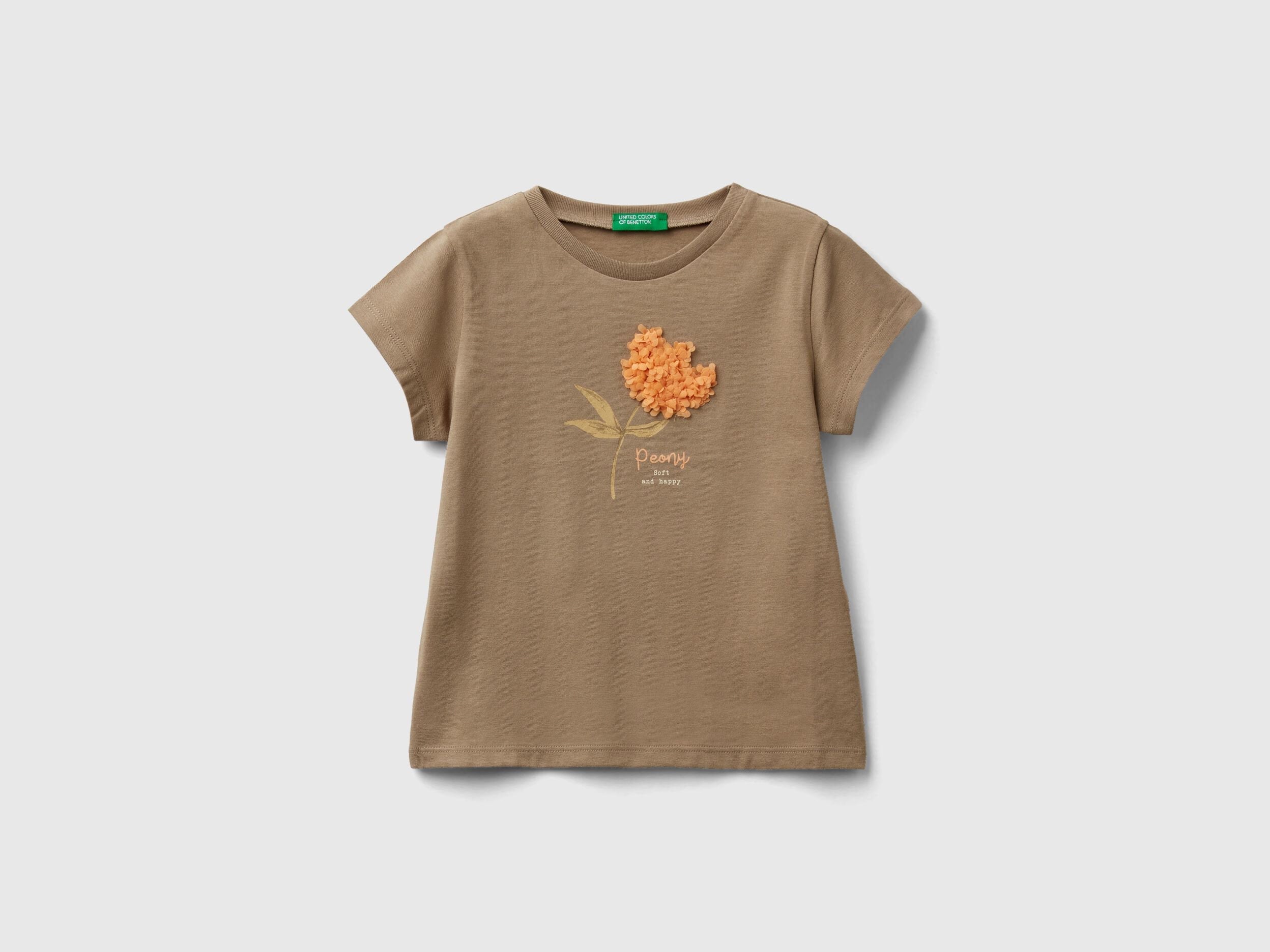 Crew neck short sleeve t-shirt in pure organic cotton. Regular fit, print enriched with a special petal look applique. Feminine and fun.