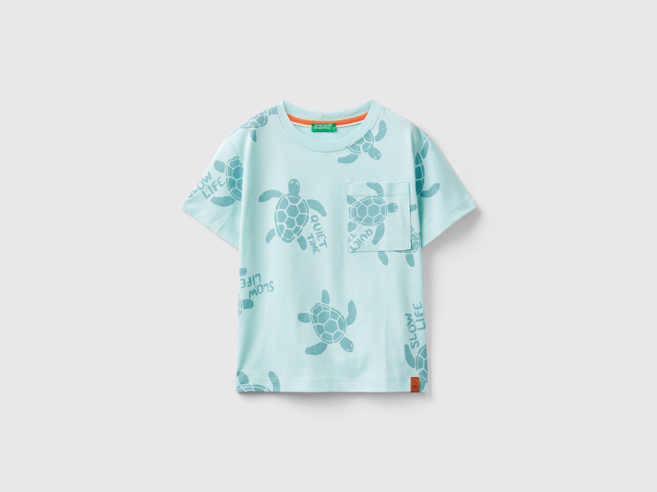 Short sleeve crew neck t-shirt in soft pure cotton fabric. Turtle print all over and patch pocket at the left breast. Perfect summer mood.